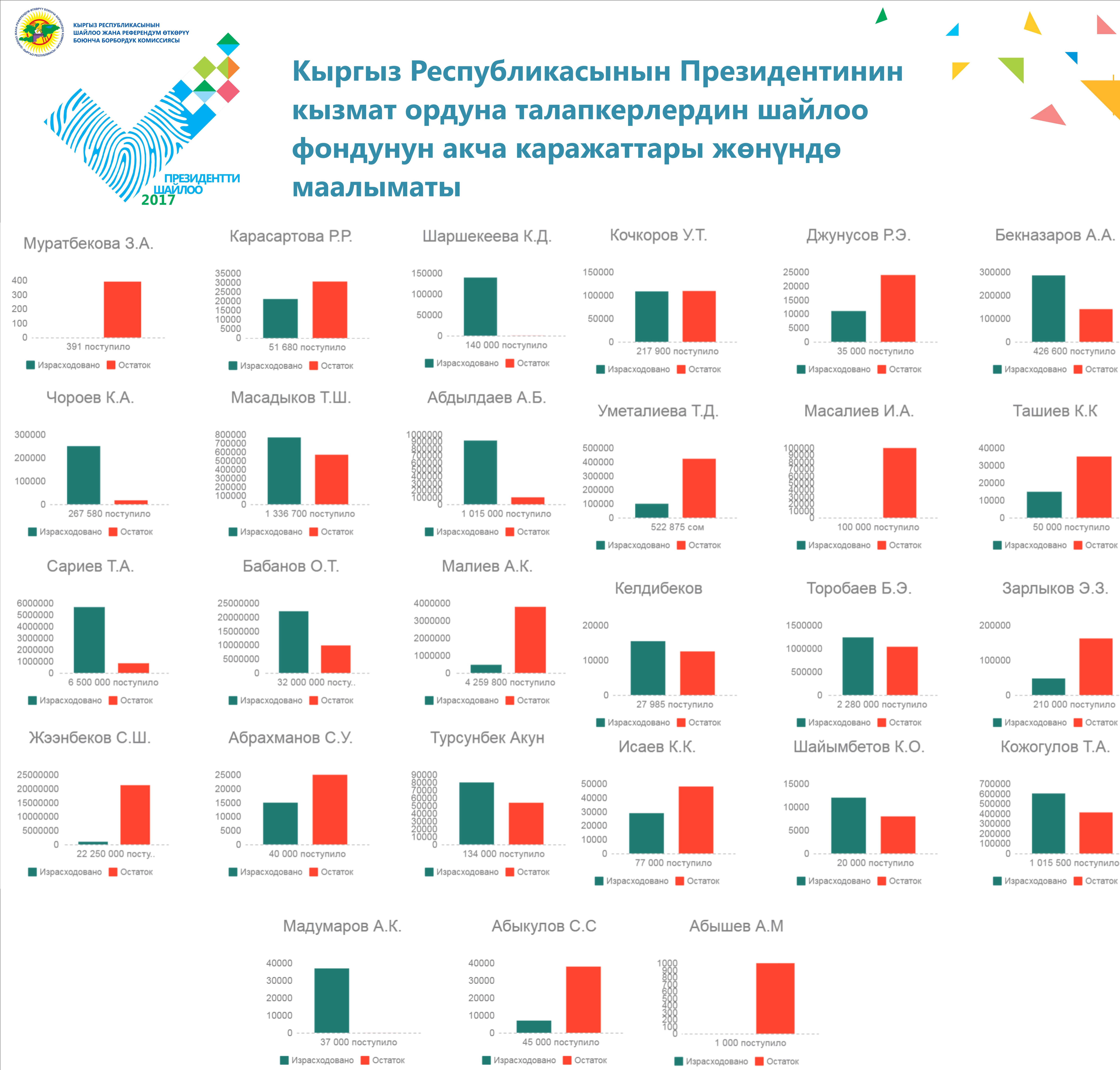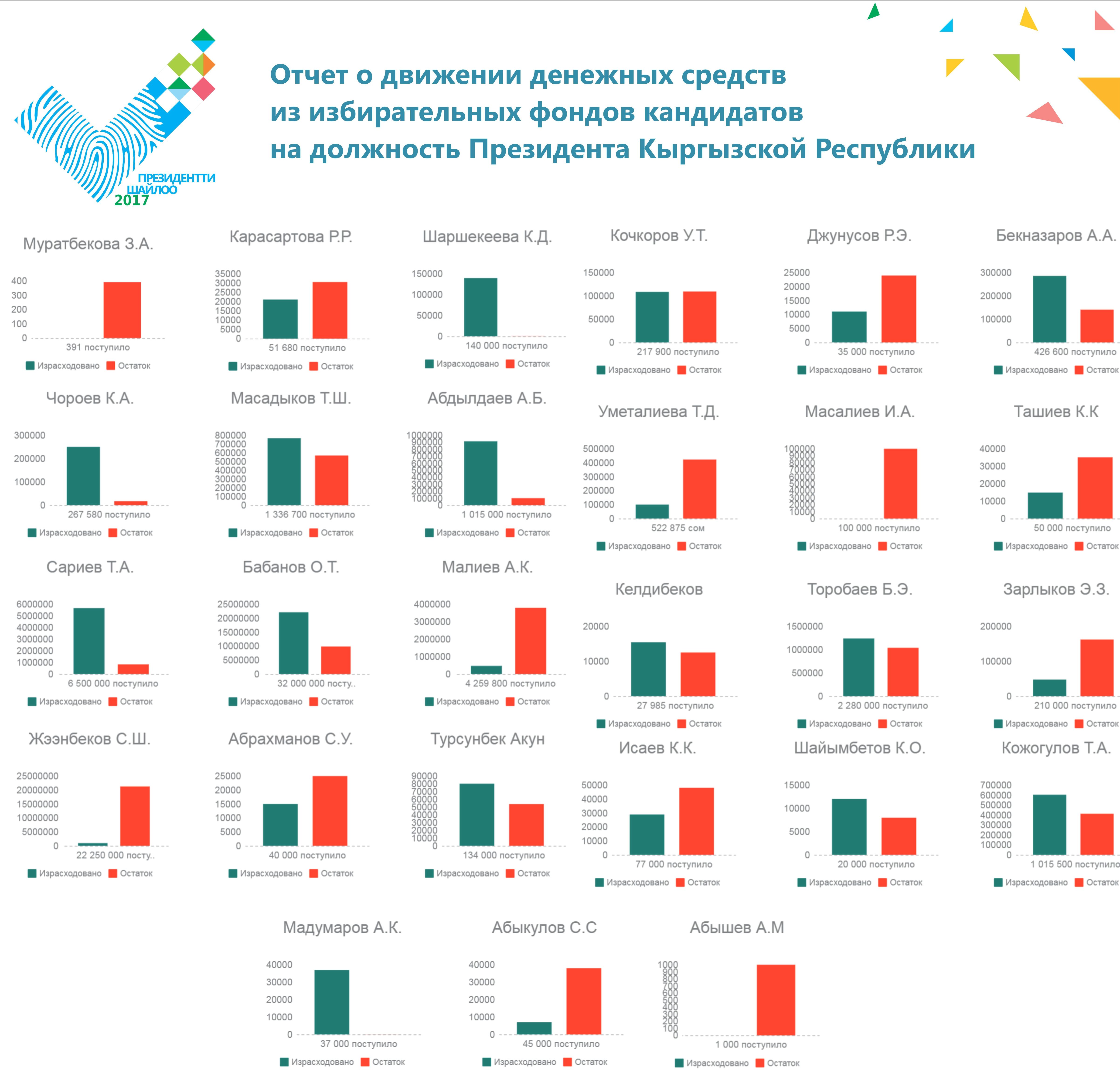 Кыргыз Республикасынын Шайлоо жана референдум өткөрүү боюнча борбордук комиссиясынын алдындагы көзөмөлдөө-текшерүү тобу Кыргыз Республикасынын Президентинин кызмат ордуна талапкерлердин шайлоо фондусунан акча каржаттарынын жүгүртүлүшү жөнүндө 2017-жылдын 14-августуна карата маалыматы
