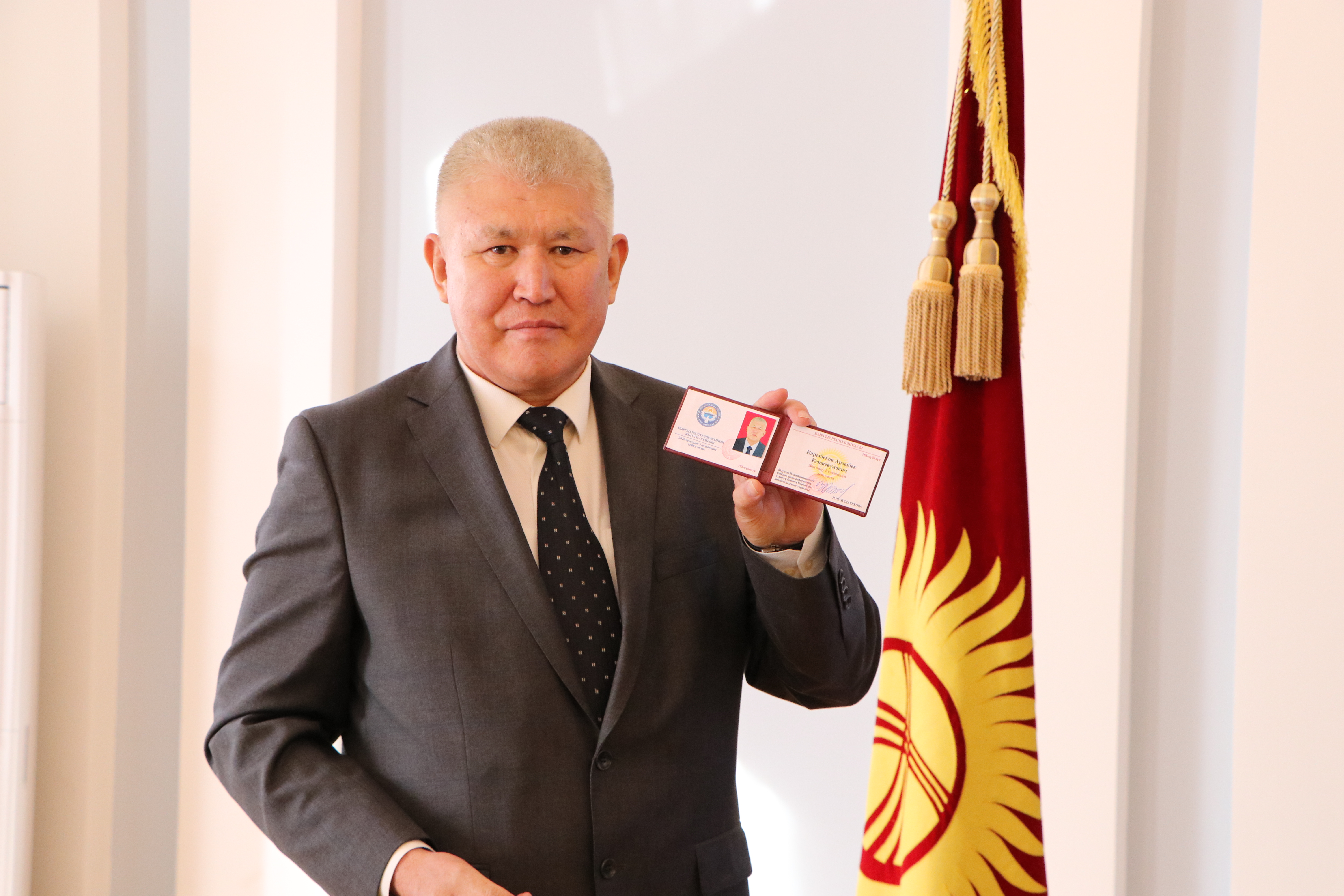 БШК токтому менен Карыбеков Арзыбек Кенжекулович КР Жогорку Кеңешинин депутаты болуп катталып, ага күбөлүк жана төш белги берилди.