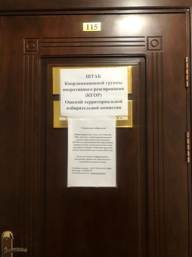Ош АШКнын ЫЧКТ штабынын дареги: Ош ш., Ленин көчөсү, №321, мэрия, №115-бөлмө.