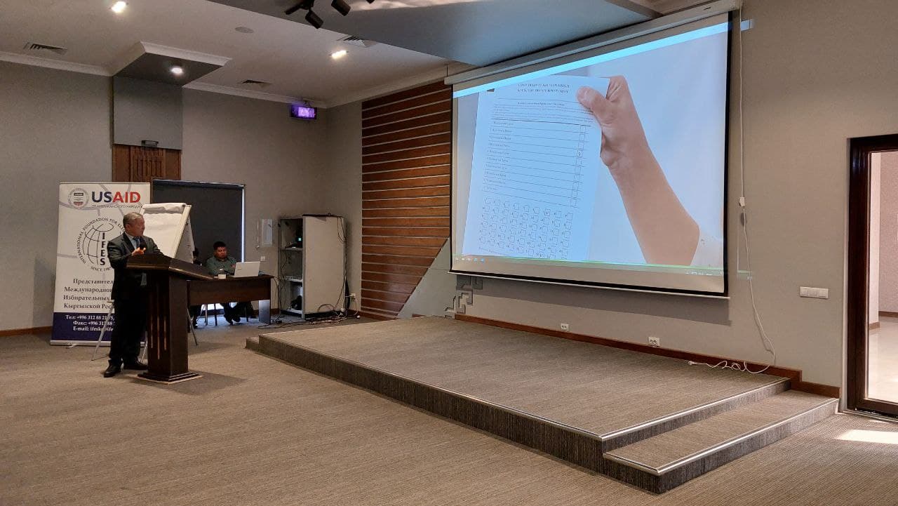 - Тренингдин жүрүшүндө округдук жана участкалык шайлоо комиссияларынын ишмердүүлүгү, түзүү тартиби, негизги ыйгарым укуктары жана иштөө принциптери боюнча түшүндүрмөлөр берилди. Катышуучуларга добуш берүү жайларын кантип даярдоо керектиги, муктаждыктар карталарын жана шайлоочулардын тизмесин түзүү, үгүт жүргүзүү жана шайлоочулар менен жолугушуу үчүн талапкерлердин укуктарын кантип камсыз кылуу керектиги түшүндүрүлдү, добуш берүү күнү саат 08.00дөн 20.00гө чейин шайлоо комиссияларынын иши этап сайын каралып чыкты.