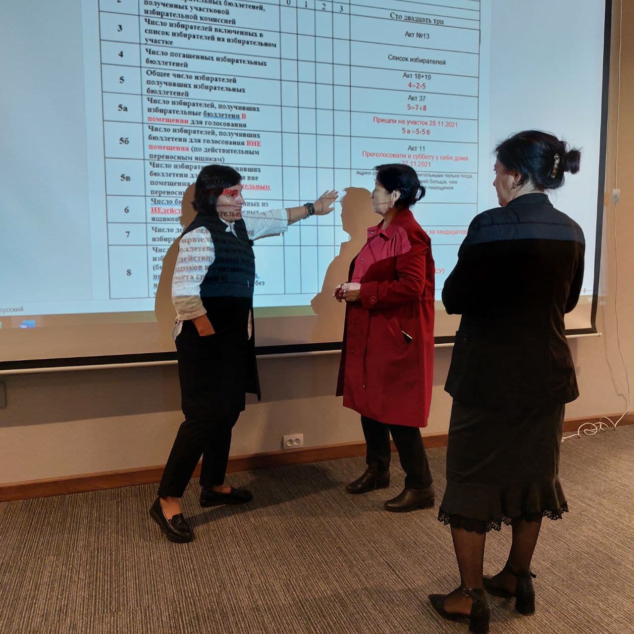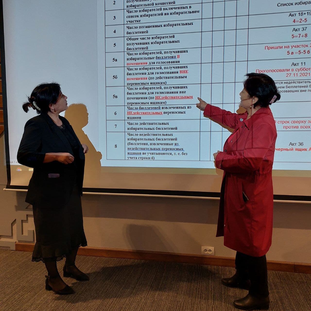 Шайлоо комиссияларынын тренерлери добуш берүүнүн жыйынтыктарын аныктоо тартиби, добуштарды кол менен эсептөө процедурасы, жараксыз бюллетендер менен иштөө, жалпысынан добуш берүүнүн протоколун толтуруу боюнча бардык иштер боюнча окутулду. УШКнын документтерин АШК, БШКга берүүнүн процедурасы түшүндүрүлдү (протоколду АЭУ аркылуу сканерлөө).