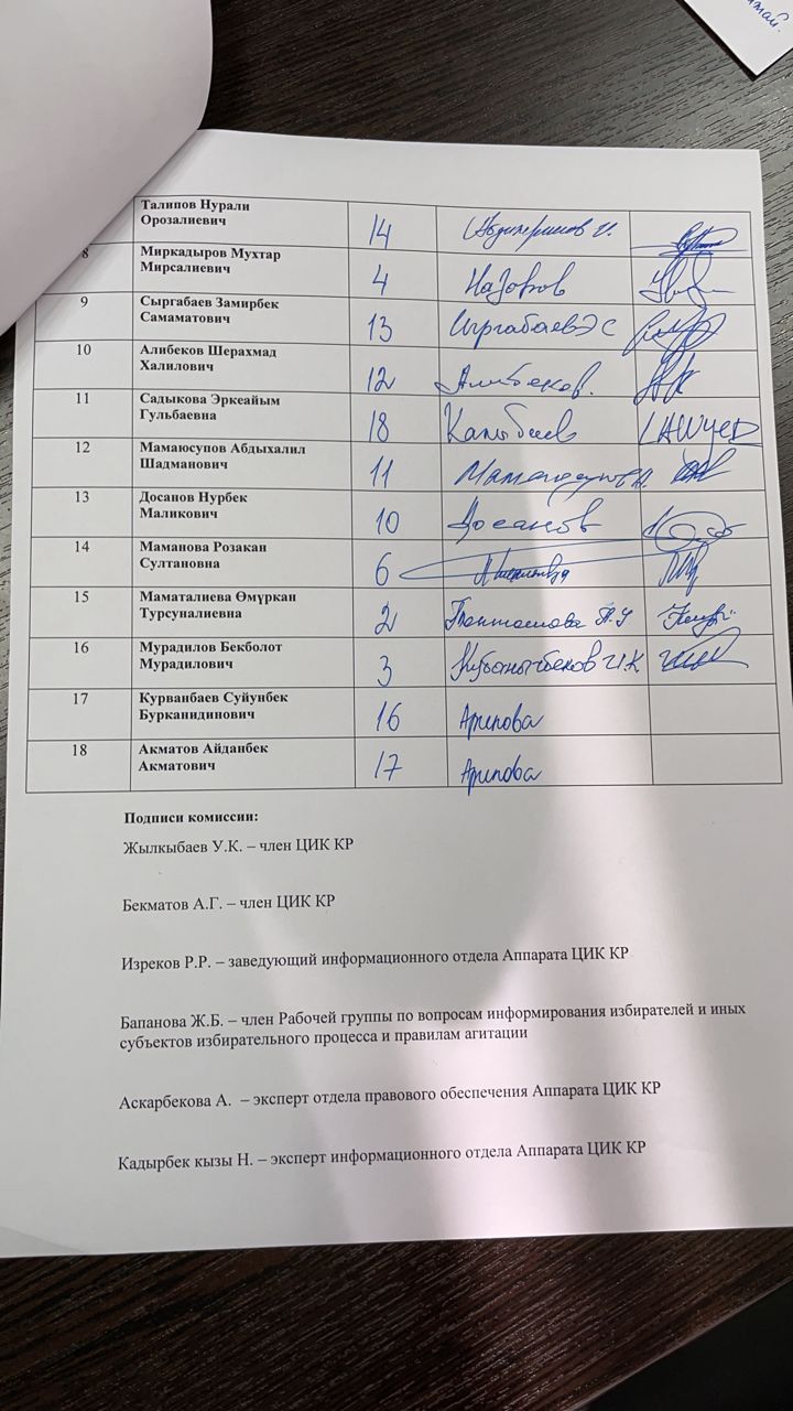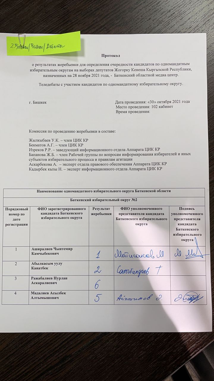 Анын жыйынтыгы боюнча дебаттарга жана жеке сөз сүйлөөгө катышуу үчүн позициялар төмөндөгүдөй аныкталды: