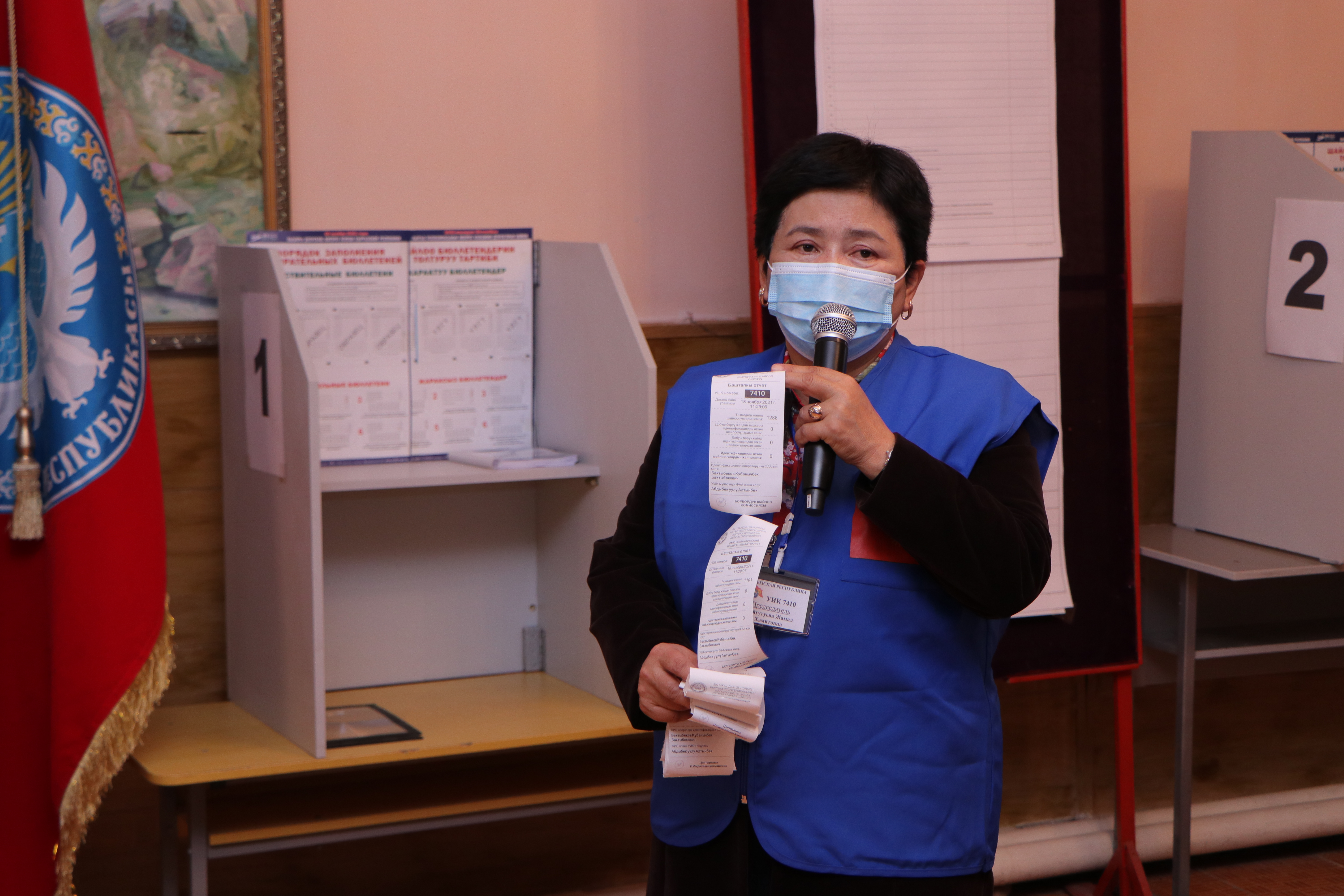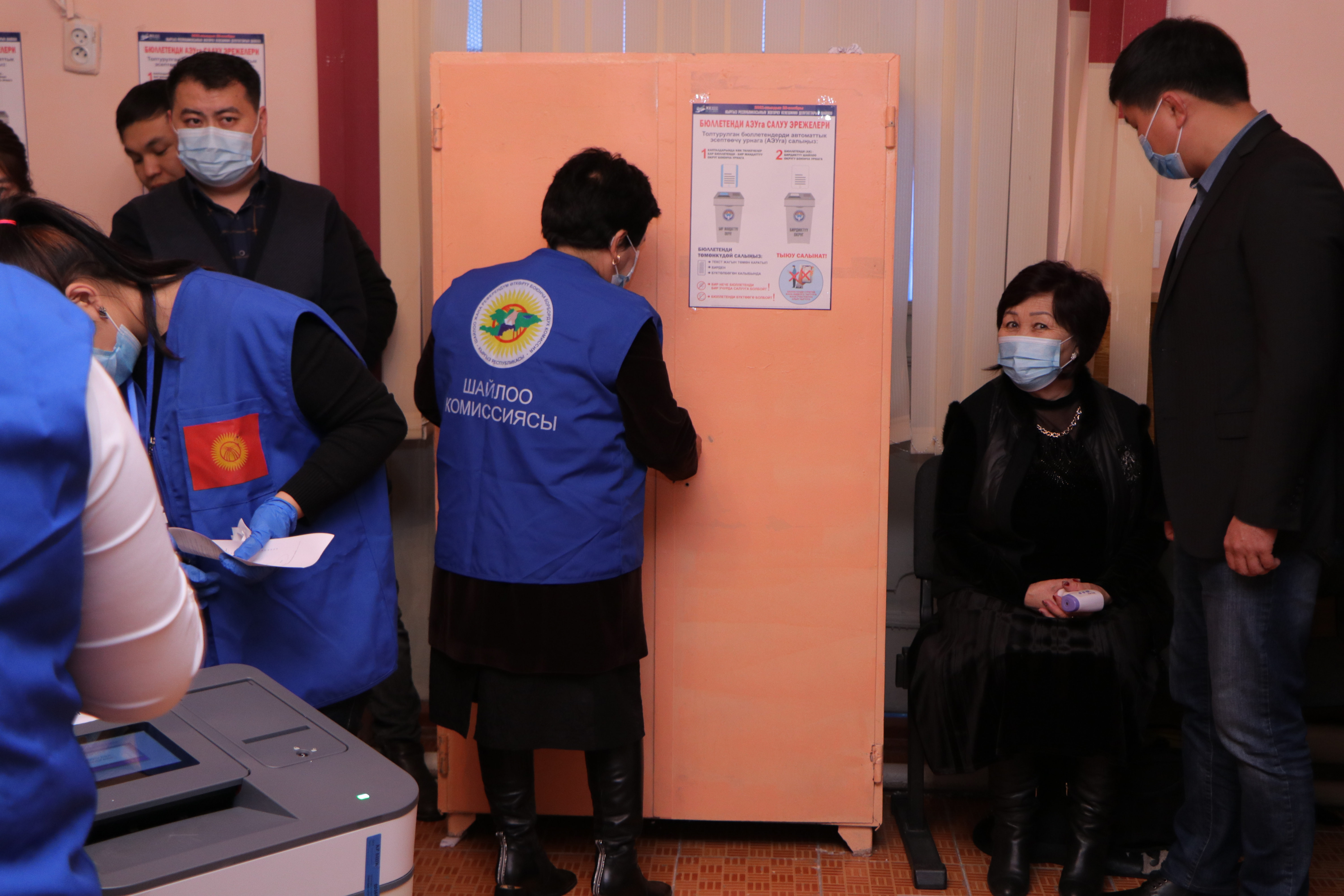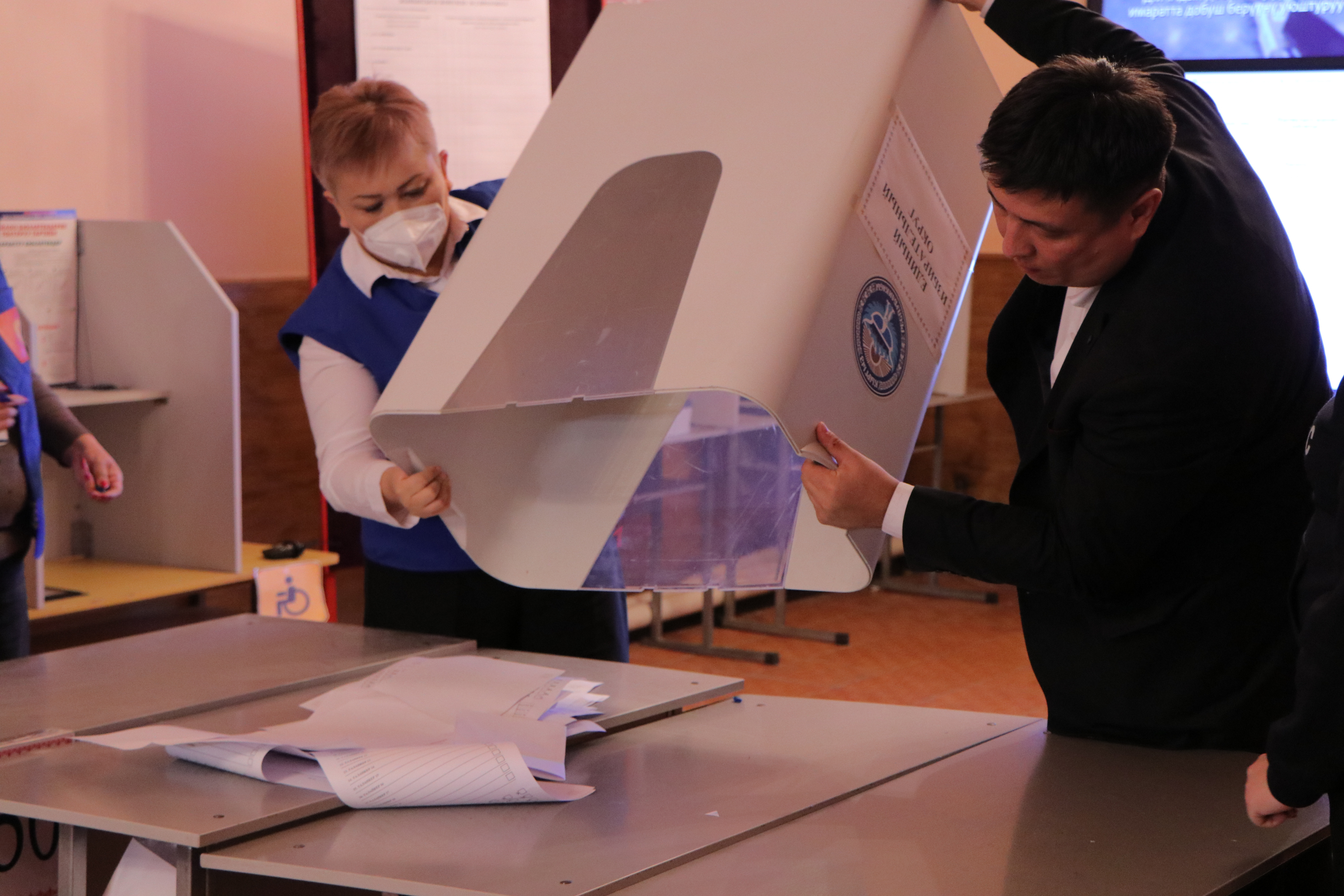 Мындан соӊ аталган участоктогу шайлоочулардын тизмеси, шайлоо бюллетендери, участкалык шайлоо комиссиясынын мөөрү, добуш берүүчү жайдан тышкары добуш берүүнүн жыйынтыгы боюнча документтер жана шайлоочулардын электрондук тизмеси түшүрүлгөн жабдуу салынган УШКнын мөөрү басылып чапталган сейфи ачылды. УШК төрагасы аталган участок боюнча шайлоочулардын тизмесине кирген шайлоочулардын санын жарыялады.