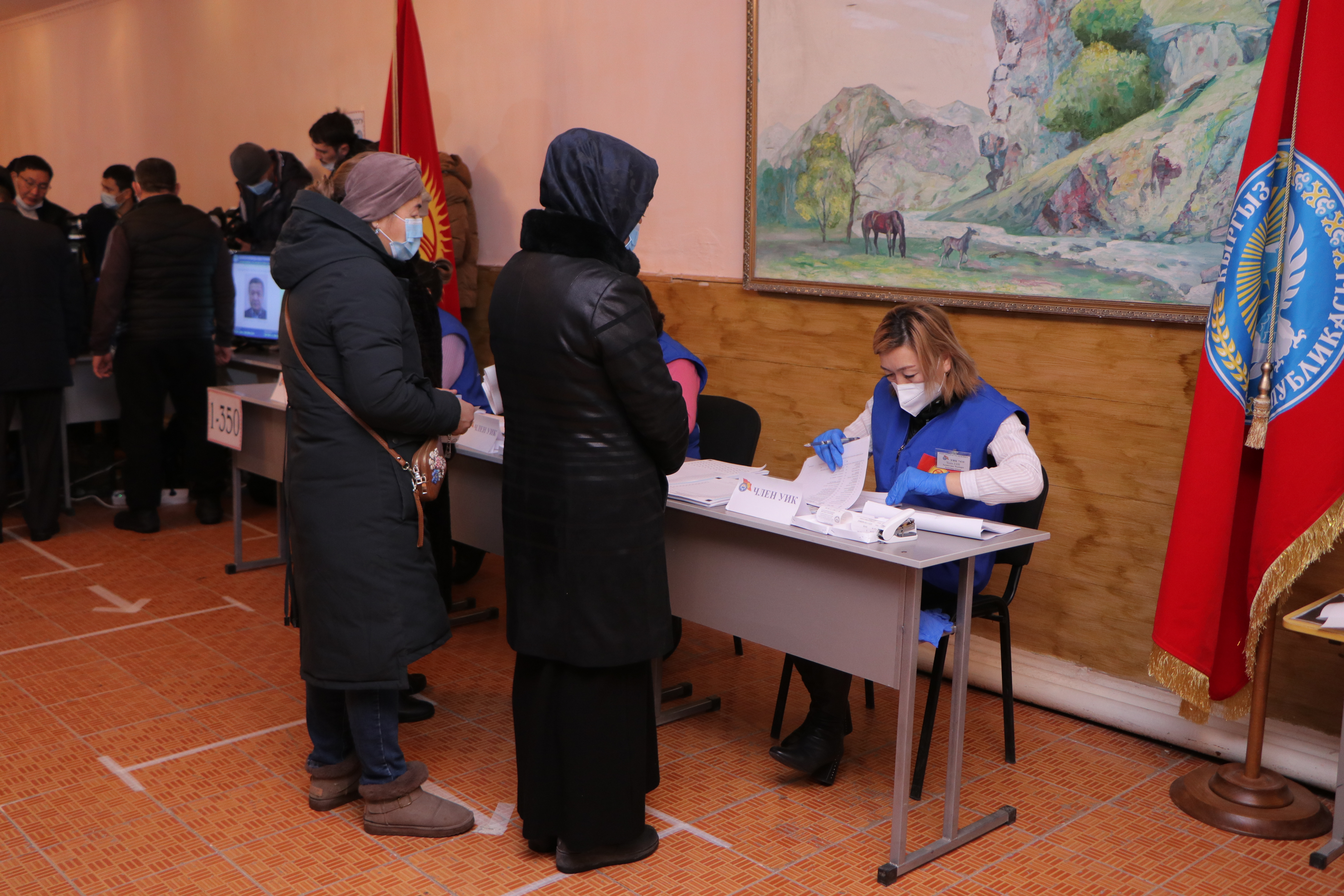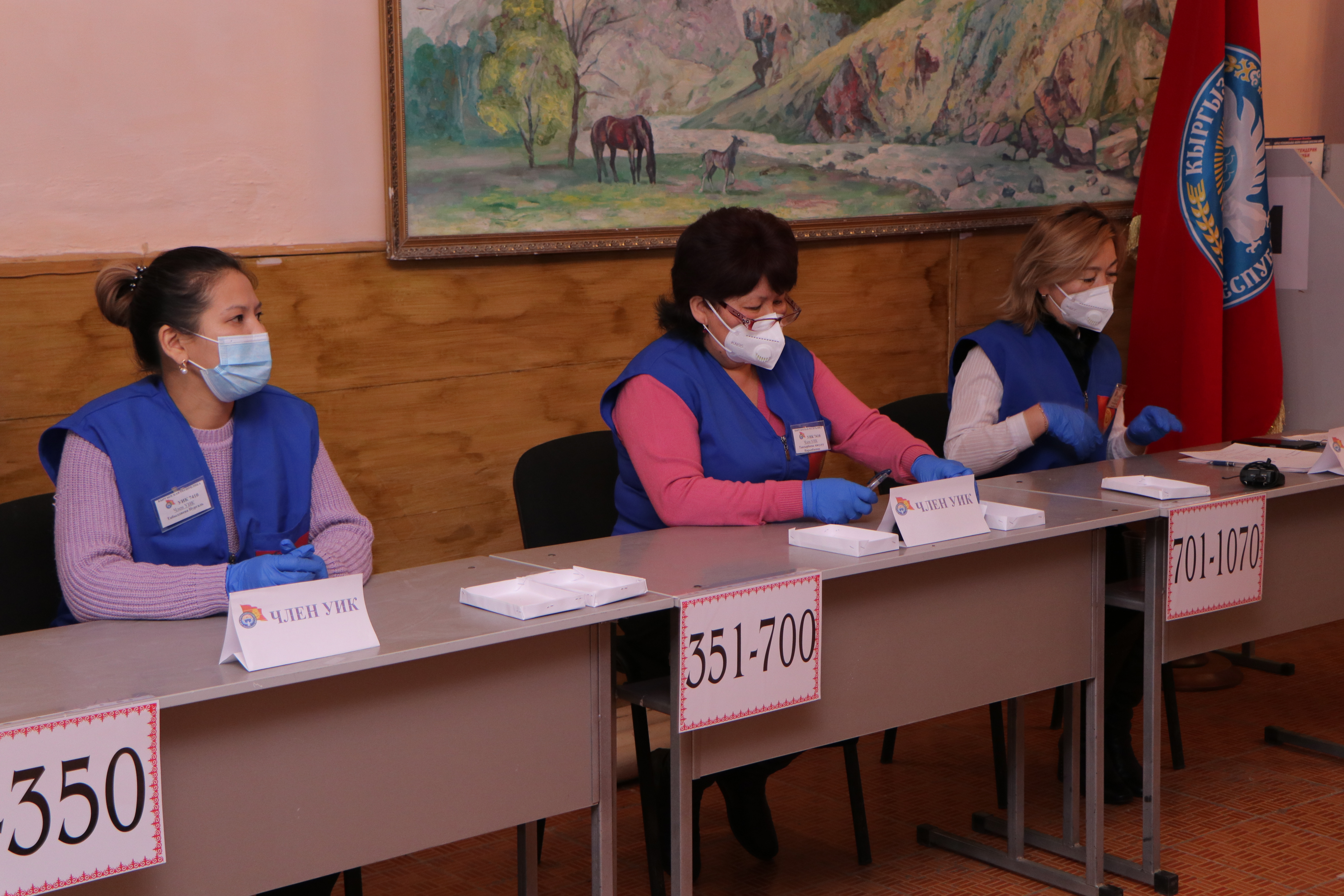 Бардык карап тургандарга добуш берүү үчүн бош үкөктөр (АЭУ) көрсөтүлдү, алар КР БШК мөөрү басылып пломбаланган. Ошондой эле текшерүүчү барактар да даярдалды, мында участоктун номери, бюллетень салган убактысы, УШК мүчөлөрүнүн аты-жөнү, катышкан талапкерлер, талапкерлердин жана партиялардын өкүлдөрү көрсөтүлгөн. Аталган адамдар текшерүүчү барактарга кол коюп, барактар УШК мөөрү менен тастыкталып, АЭУга салынат.
