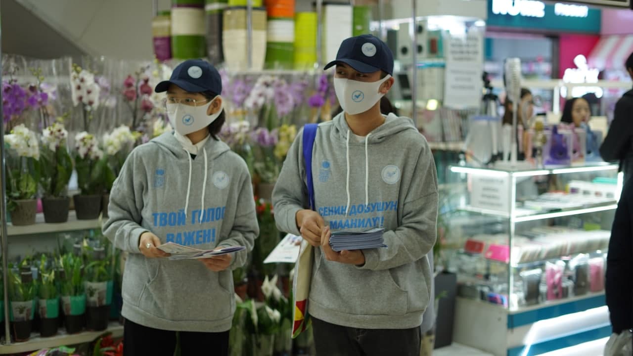 Кыргыз Республикасынын Шайлоо жана референдум өткөрүү боюнча борбордук комиссиясы ыктыярчылар менен биргеликте алдыда күтүлүүчү парламенттик шайлоонун өзгөчөлүктөрү тууралуу шайлоочуларга маалымат берүүнү уюштурду.