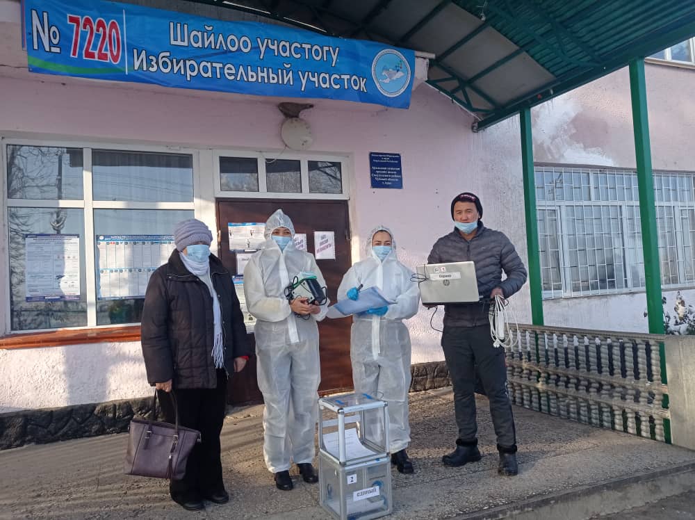 Добуш берүүчү жайдан тышкары добуш берүү бардык санитардык-эпидемиологиялык талаптарды сактоо менен өткөрүлүүдө.