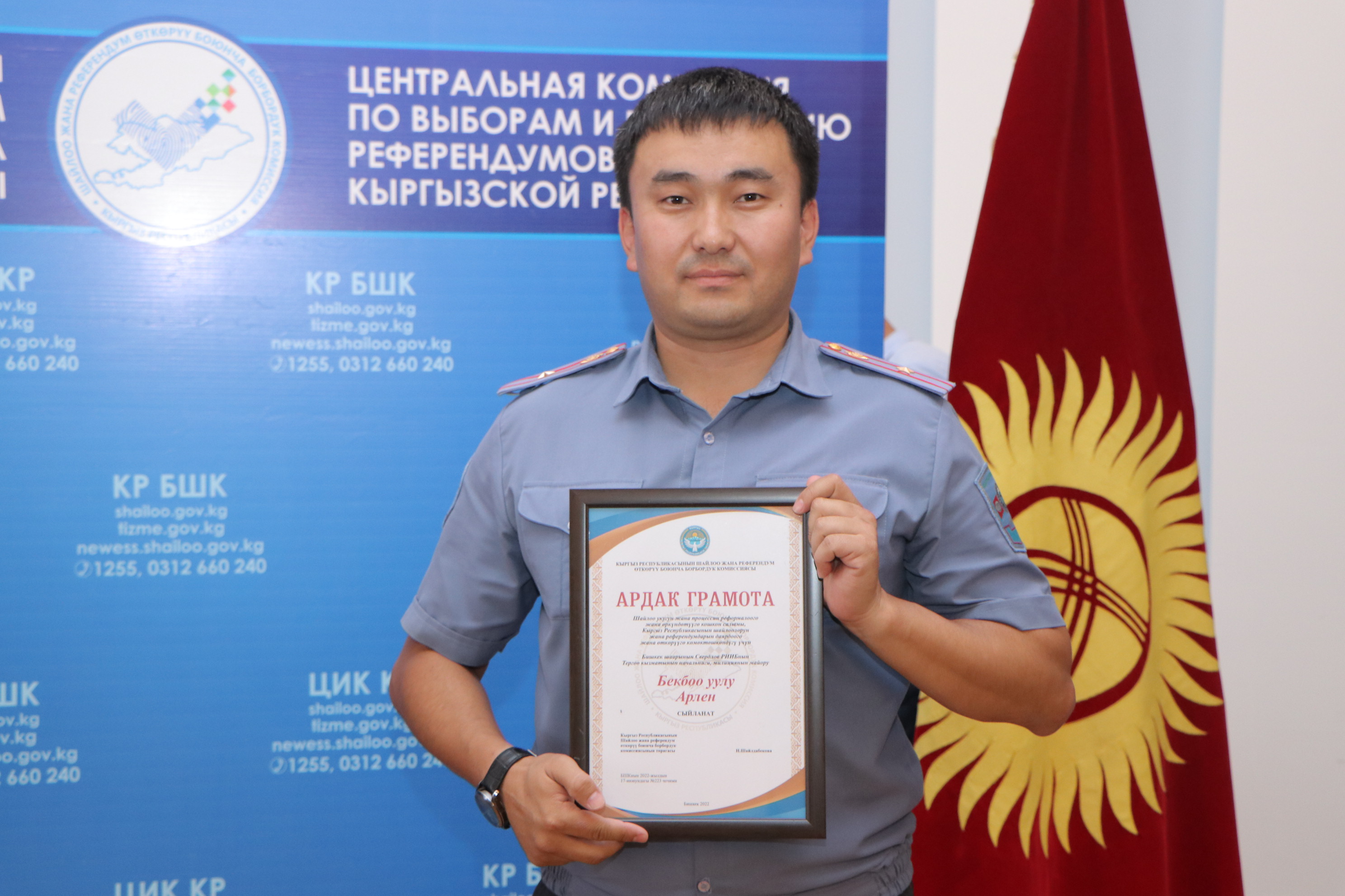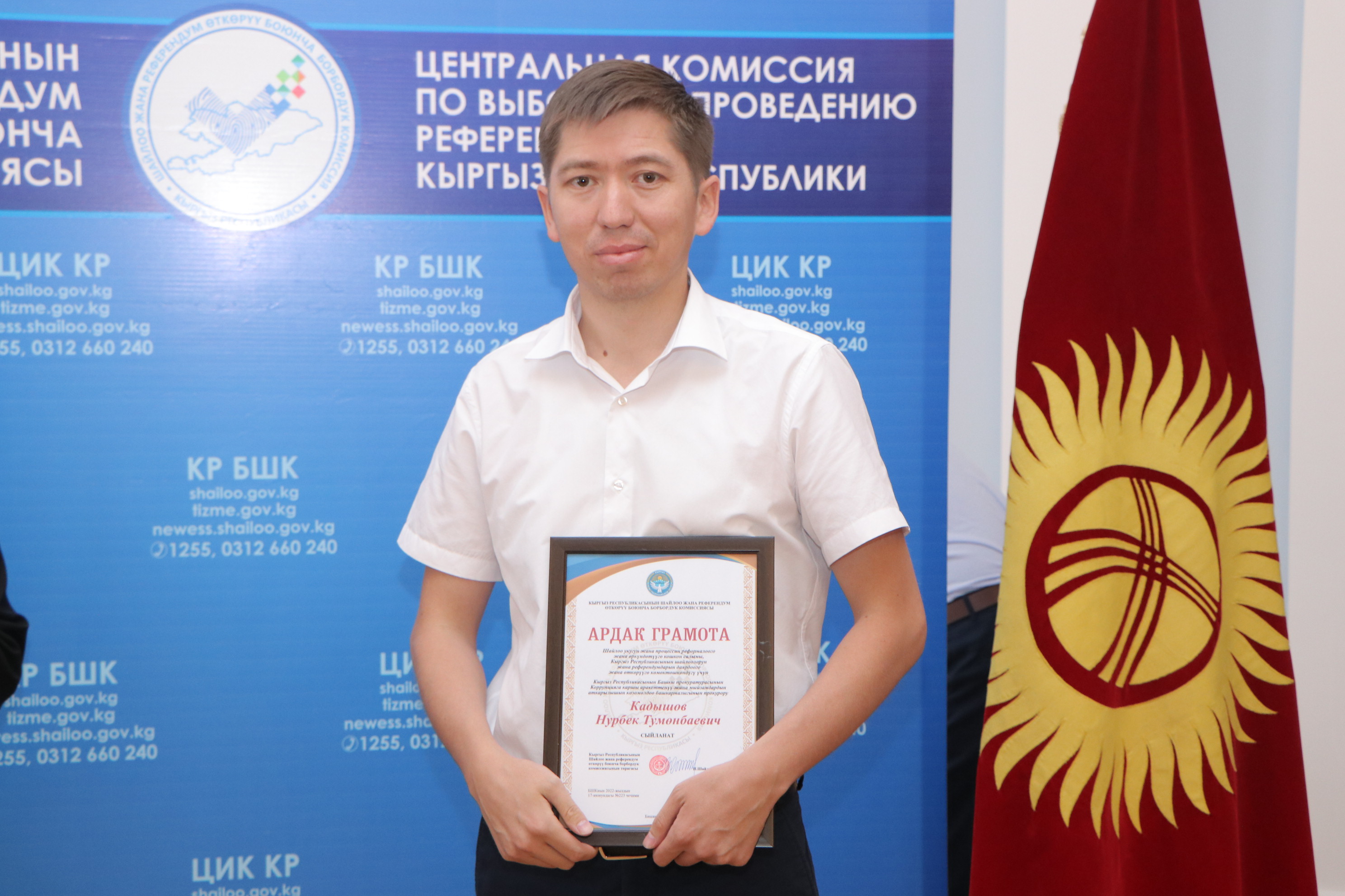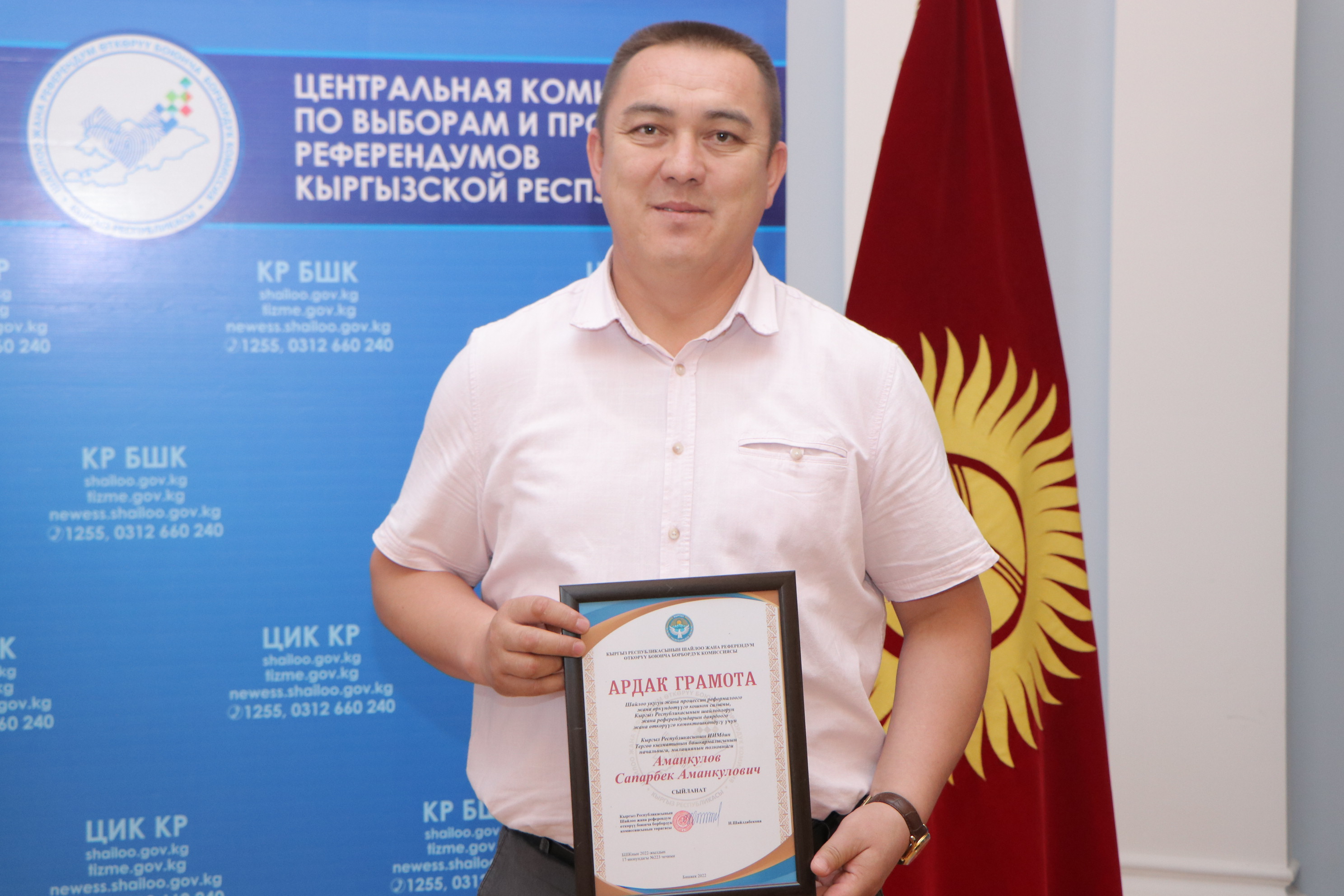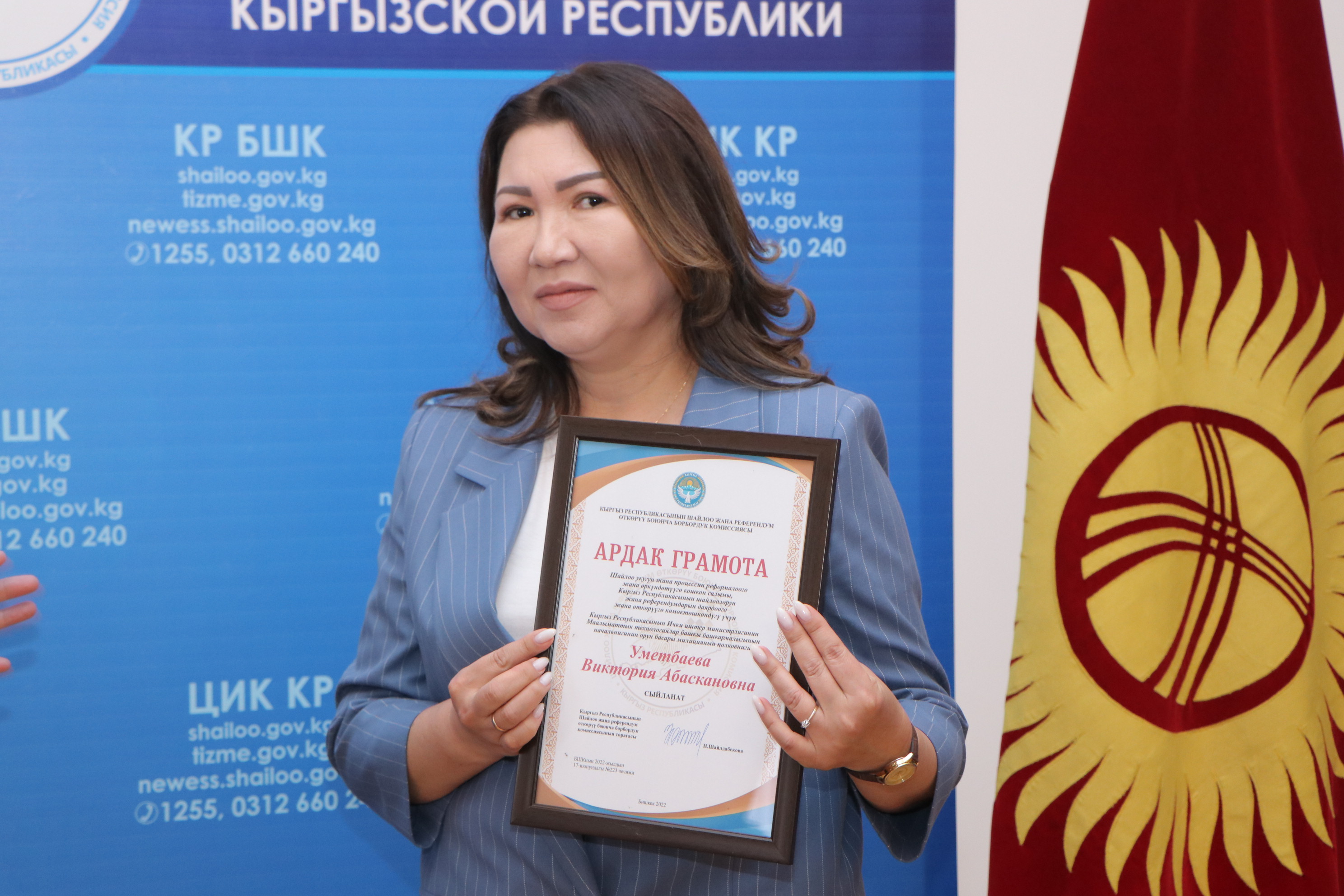 Кыргыз Республикасынын шайлоо укугун жана процессин реформалоого жана өркүндөтүүгө кошкон салымы, шайлоолорду жана референдумдарды даярдоого жана өткөрүүгө көмөктөшкөндүгү үчүн Кыргыз Республикасынын Шайлоо жана референдум өткөрүү боюнча борбордук комиссиясы Кыргыз Республикасынын Мамлекеттик жана муниципалдык кызматтын кызматкерлеринин күнүнүн урматына мамлекеттик органдардын өкүлдөрүн БШКнын Ардак грамотасы менен сыйлады.