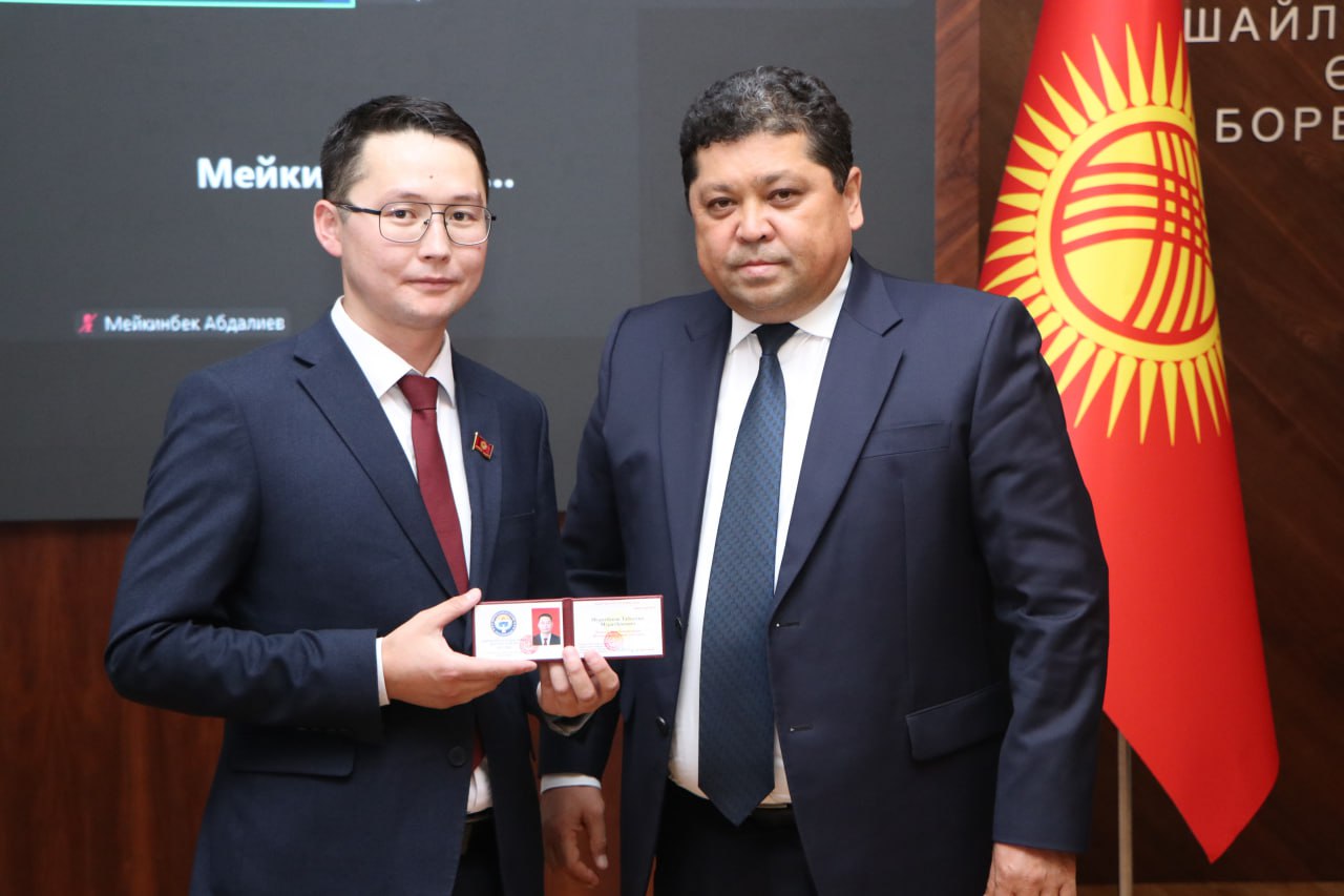 Депутатка белгиленген үлгүдөгү депутаттык күбөлүк жана төш белгиси тапшырылды.