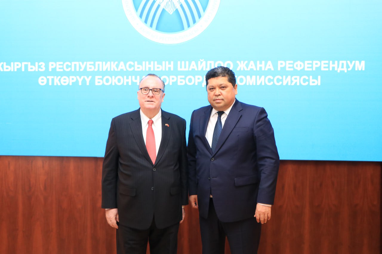Бүгүн, 22-октябрда, Кыргыз Республикасынын Борбордук шайлоо комиссиясынын төрагасы Тынчтык Шайназаров Америка Кошмо Штаттарынын Кыргыз Республикасындагы Өзгөчө жана Ыйгарым укуктуу Элчиси Лесли Вигери менен жолугушту.