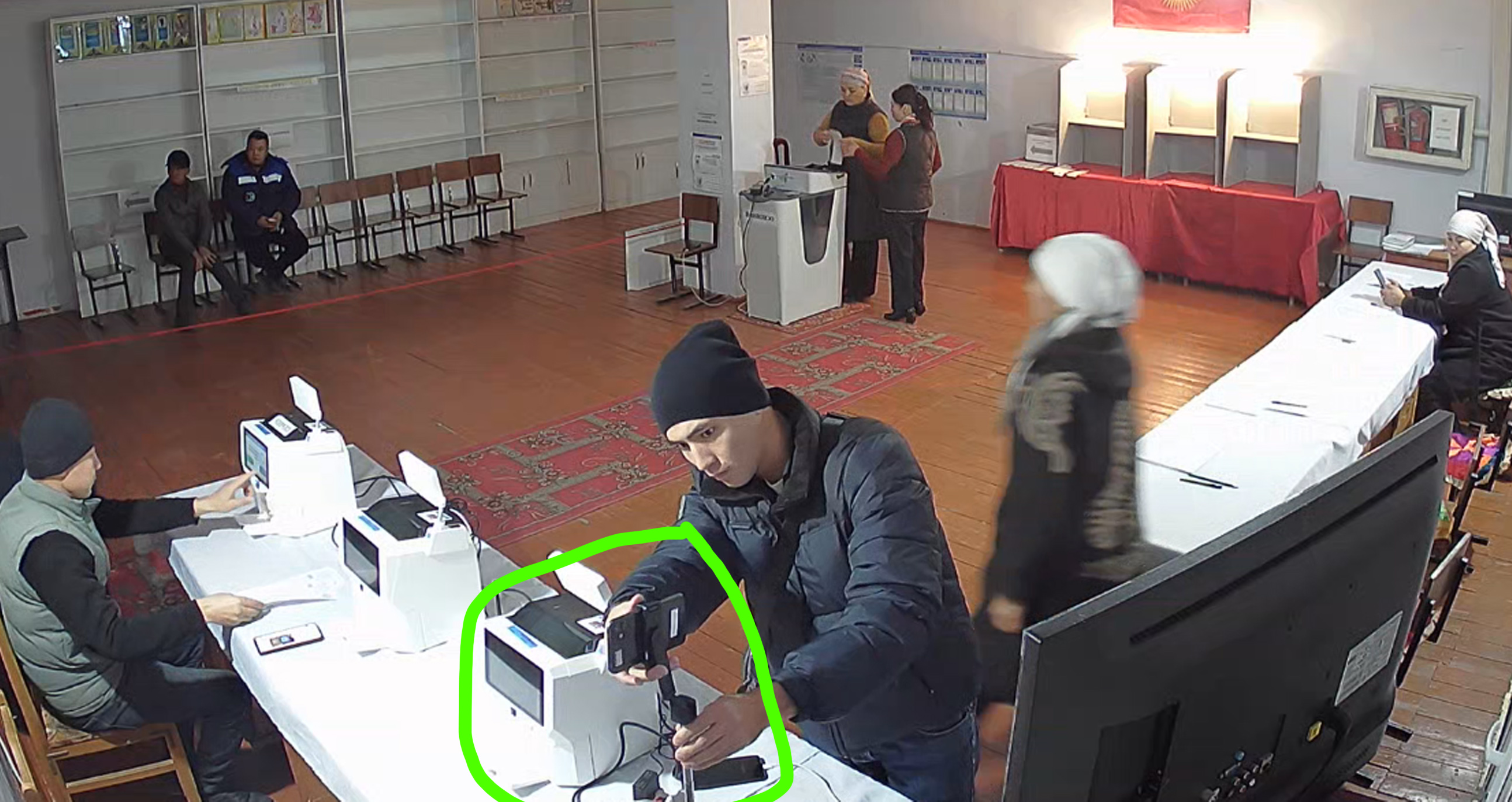 Ошентип, талапкерлердин өкүлдөрү шайлоочуларды добуш берүү участкасына кирген учурдан тартып, идентификациядан өтүп, ага бюллетень басып чыгарылып берилип, добуш берүү кабинасына кирип чыгып, бюллетенди автоматтык саноо урнасына салганга чейинки бүткүл процессти көзөмөлдөп турушкан.