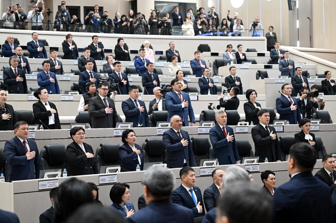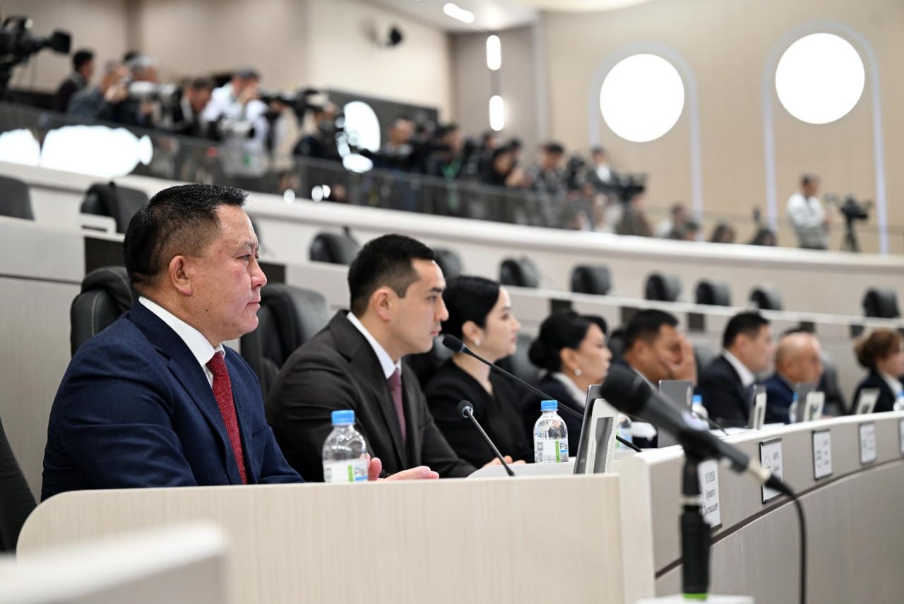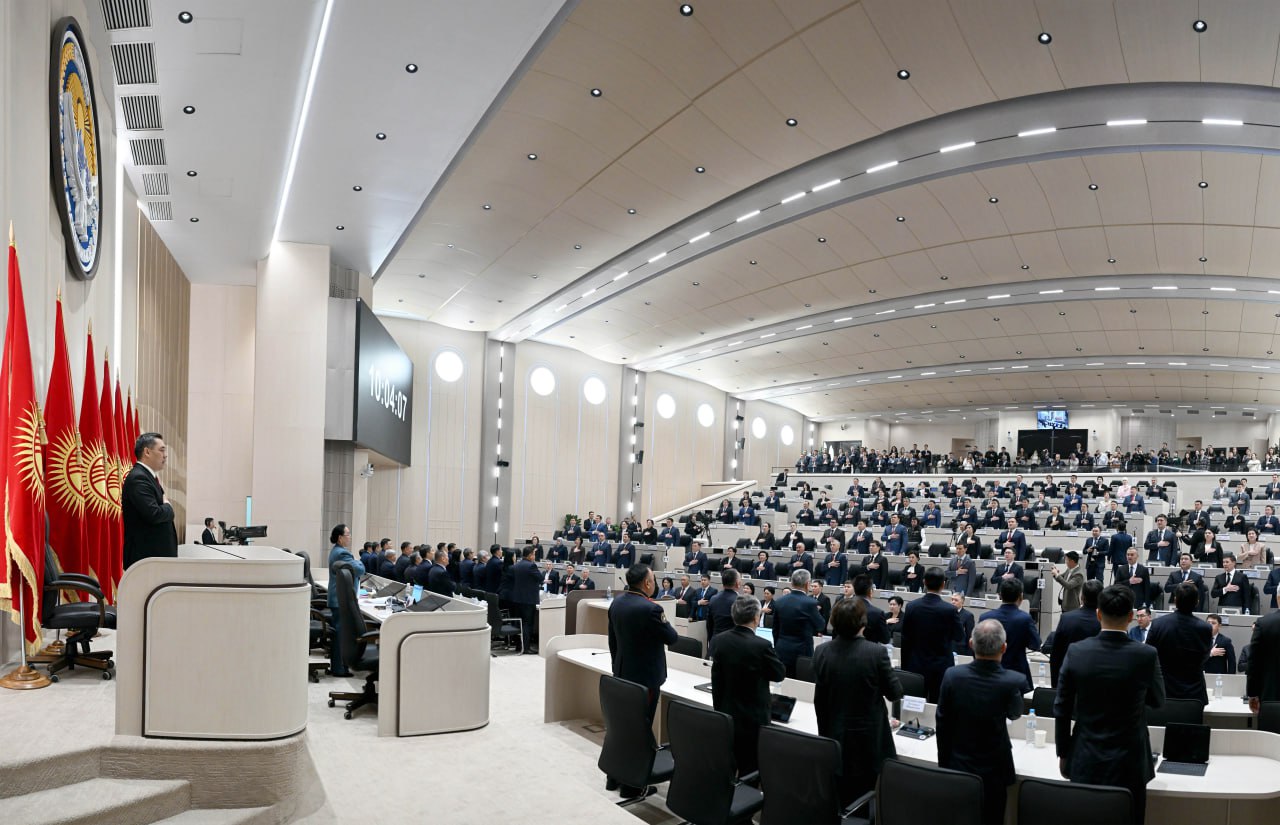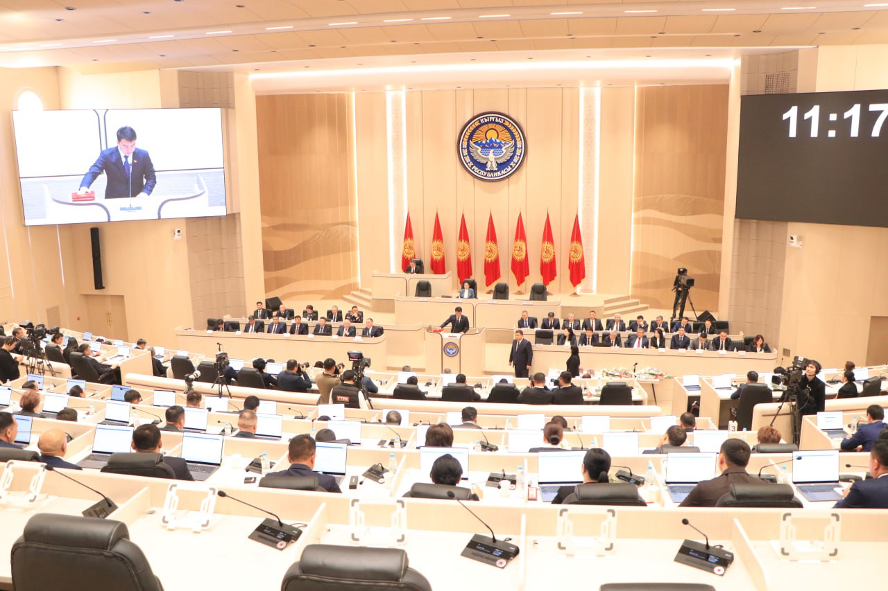 Салтанаттуу иш-чарада депутаттар Кыргыз Республикасынын Президенти Садыр Жапаровдун катышуусунда ант беришти.
