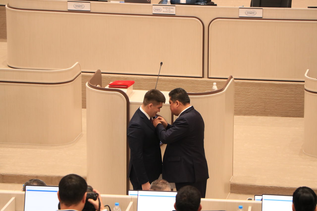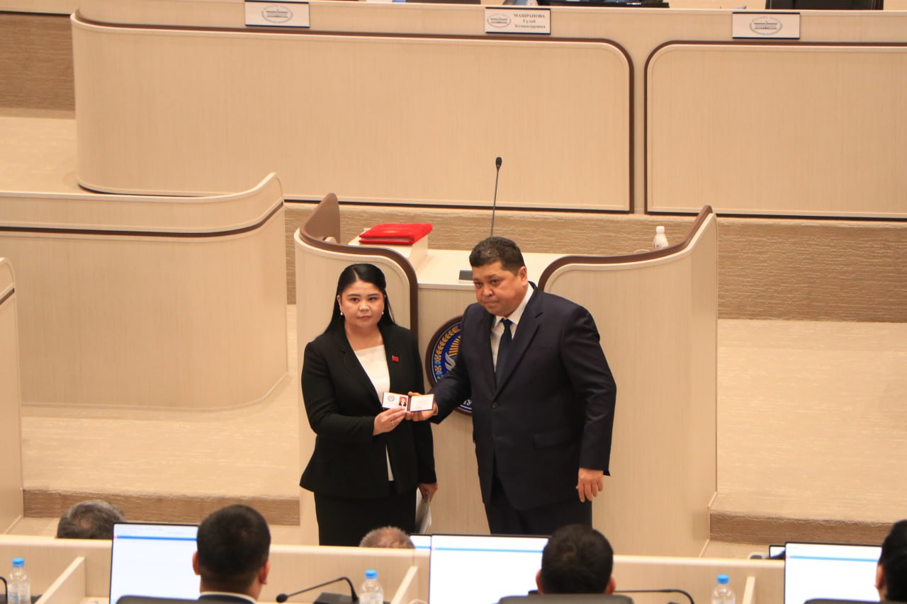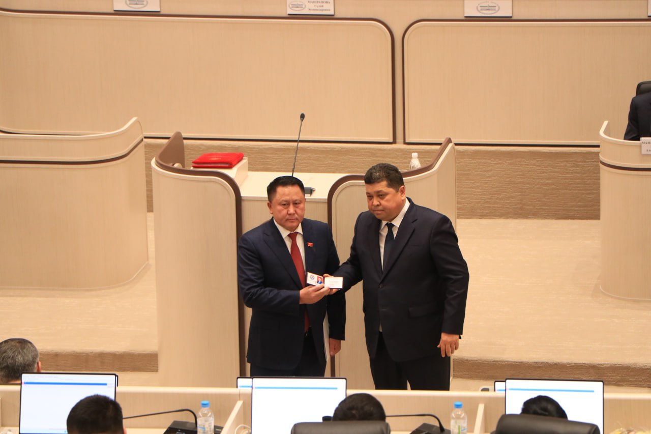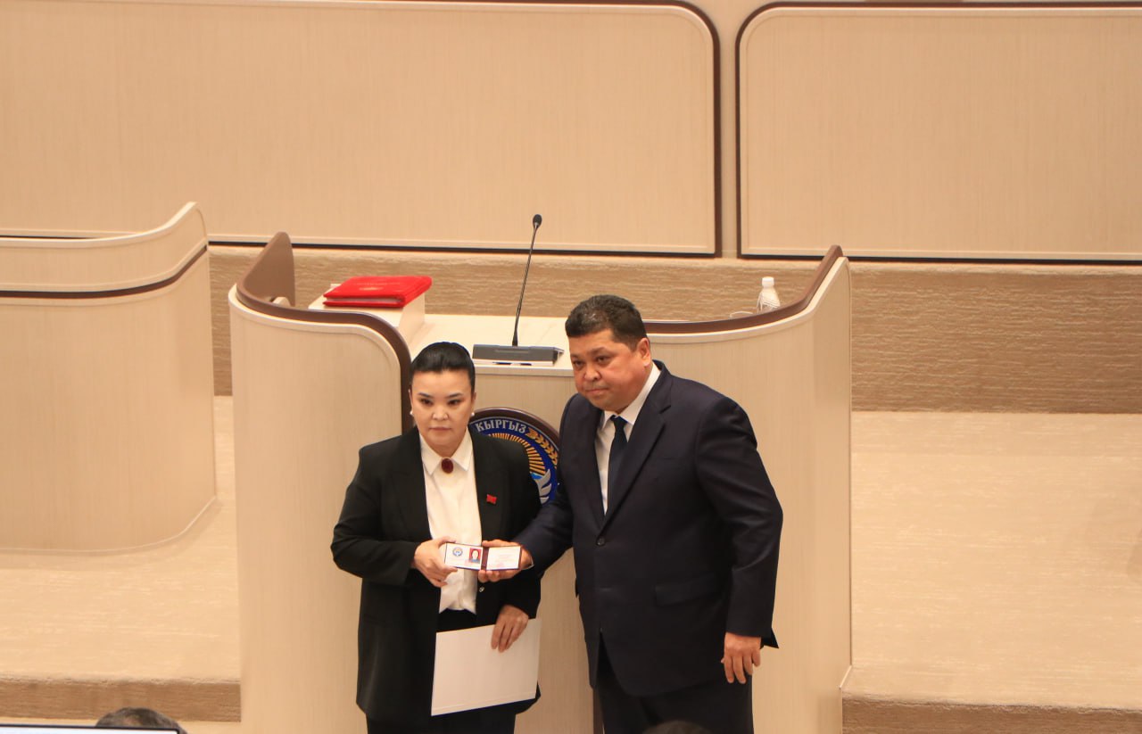 КР Жогорку Кеңешинин VIII чакырылышынын жаңы шайланган депутаттарына ырастама жана төш белги тапшырылды