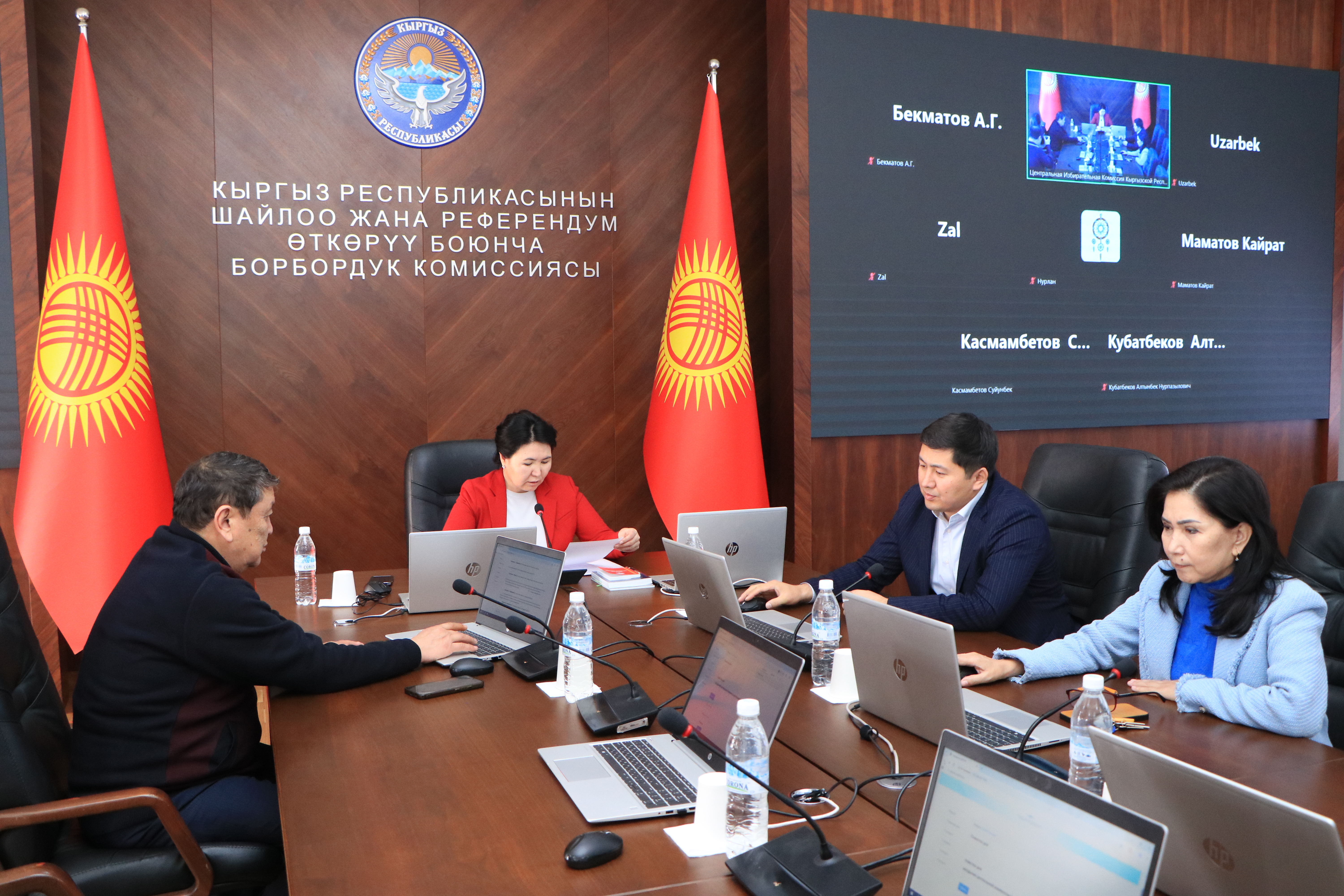 - Абдыразакова Гульнара Пазылжановнанын ыйгарым укуктуу өкүлдөрү: шайлоо маселелери боюнча М.А. Кабылова жана каржы маселелери боюнча Б.И. Божаева.