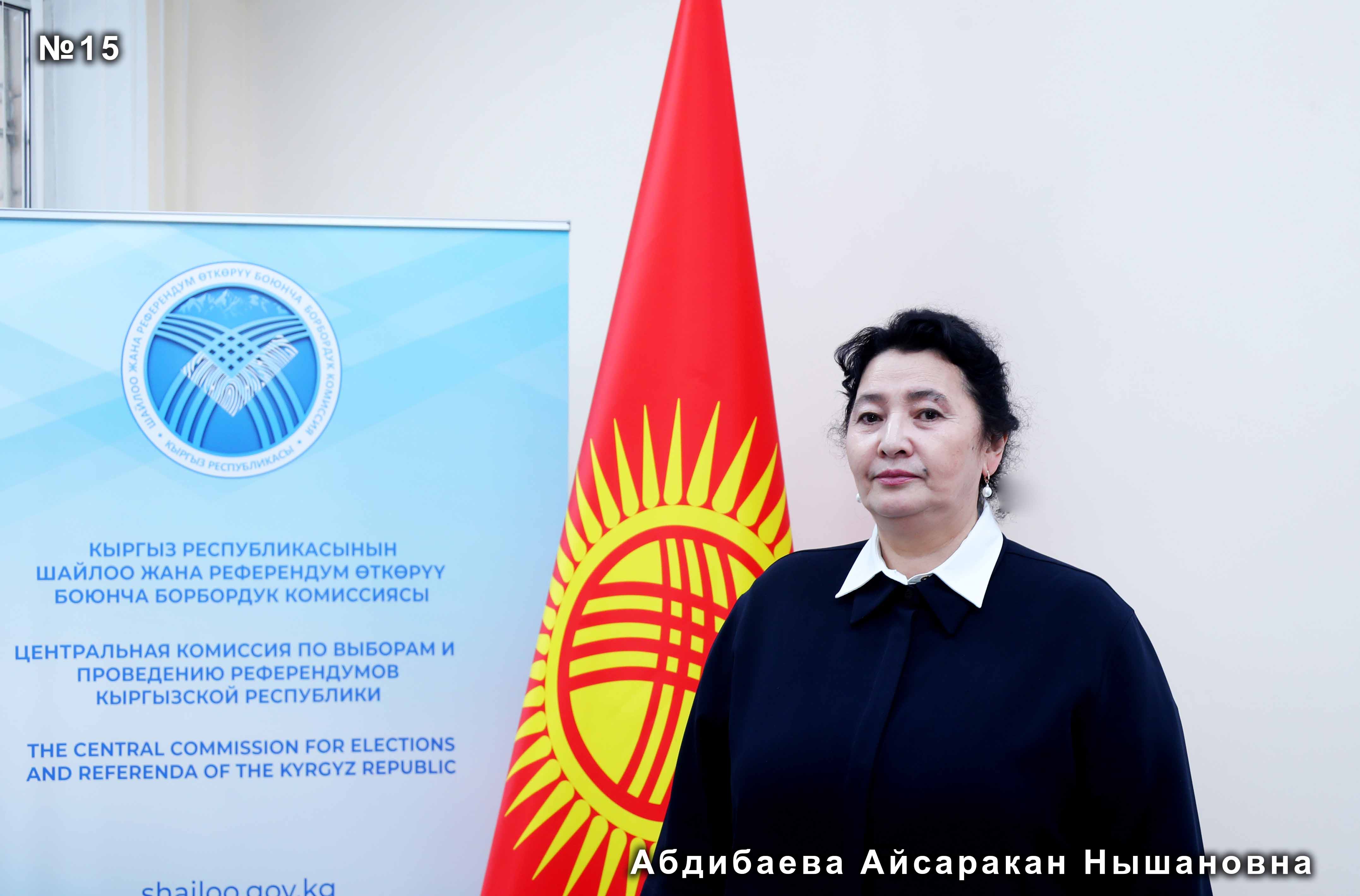 - Абдибаева Айсаракан Нышанова 13.08.1965 Жогорку Кеңештин депутаты