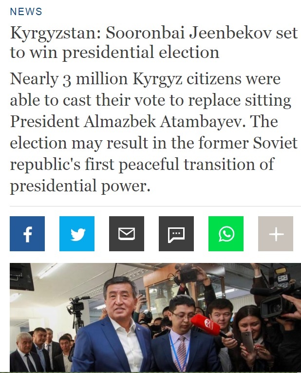 Немецкая международная общественная телерадиокомпания Deutsche Welle назвала выбора Президента Кыргызской Республики историческими