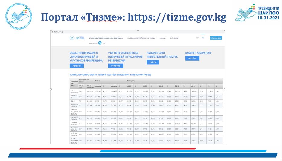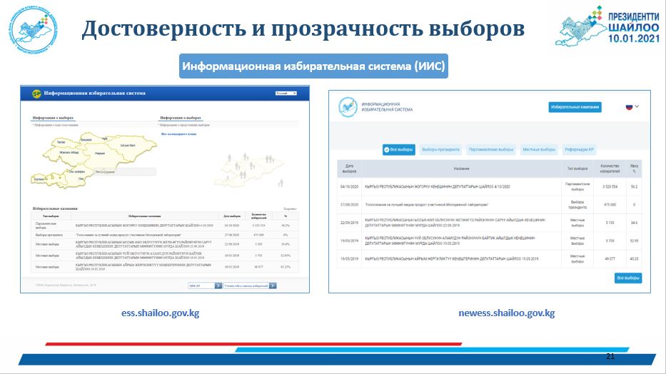 Информационная избирательная система – http://ess.shailoo.gov.kg/ https://newess.shailoo.gov.kg/ru/