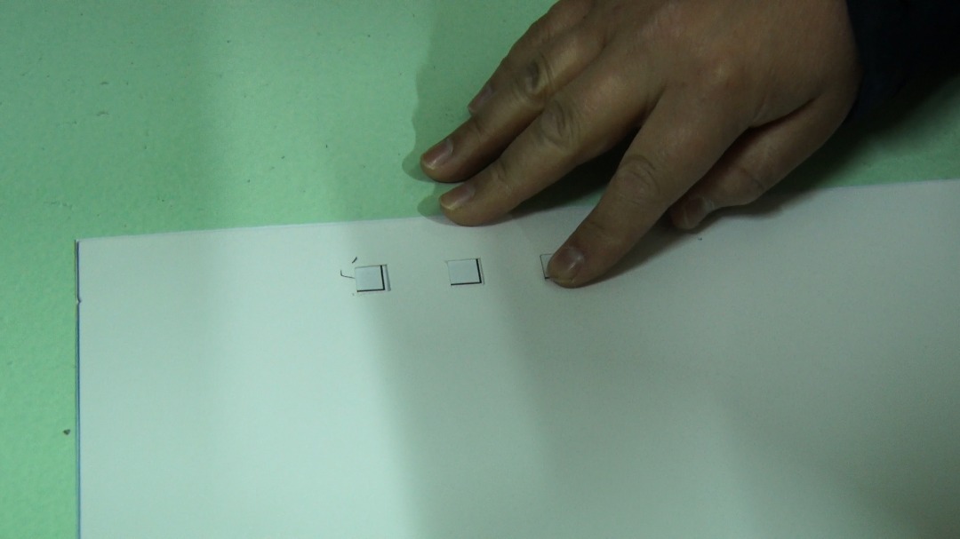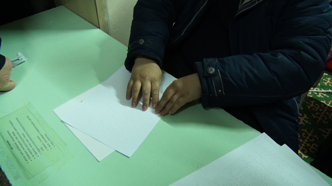 Для объективности проверки был привлечен гражданин с ограниченными возможностями здоровья по зрению. В ходе проверки представители ЦИК КР сообщили о соответствии отверстий трафарета для соответствующей отметки с пустым квадратом, помещенным в бюллетене. Для достоверности и открытости проверки все действия были проведены в присутствии наблюдателей на избирательном участке №1133.