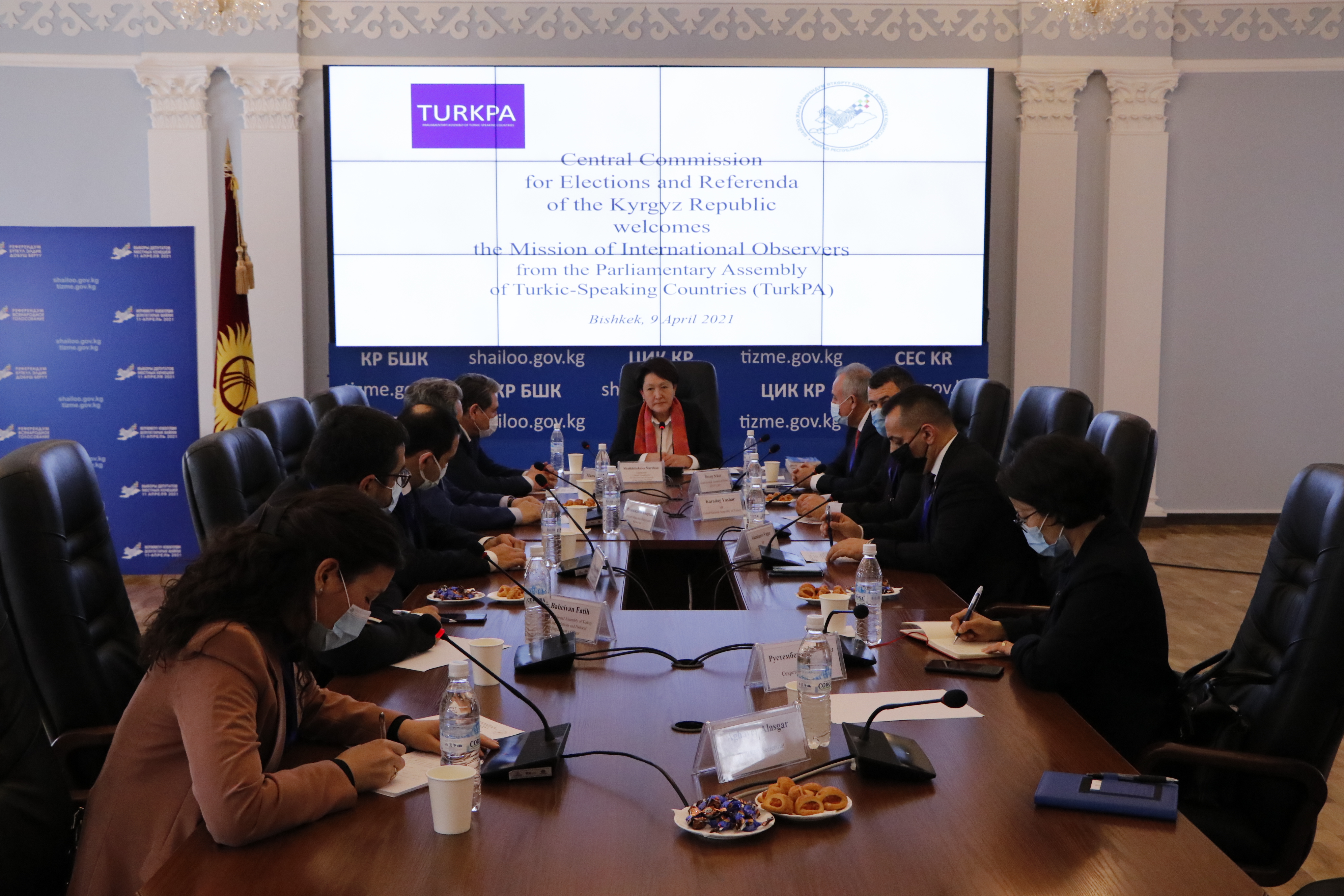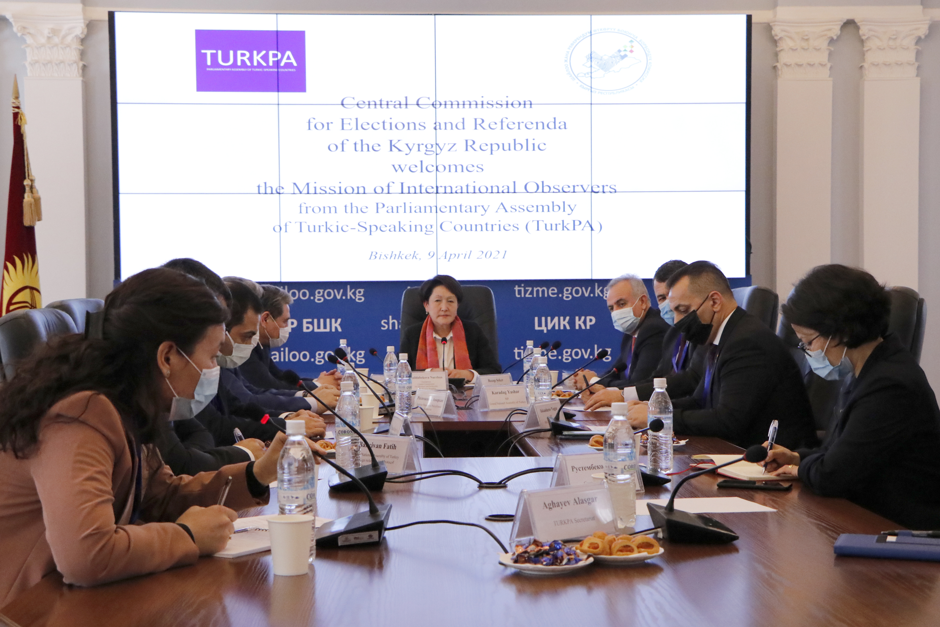 В Центральной комиссии по выборам и проведению референдумов Кыргызской Республики состялась встреча главы ведомства Н.Шайлдабековой с Миссией международных наблюдателей от Парламентской ассамблеи Тюркоязычных стран (ТюркПА) во главе с депутатом Национального собрания Турции Шекером Реджепом.