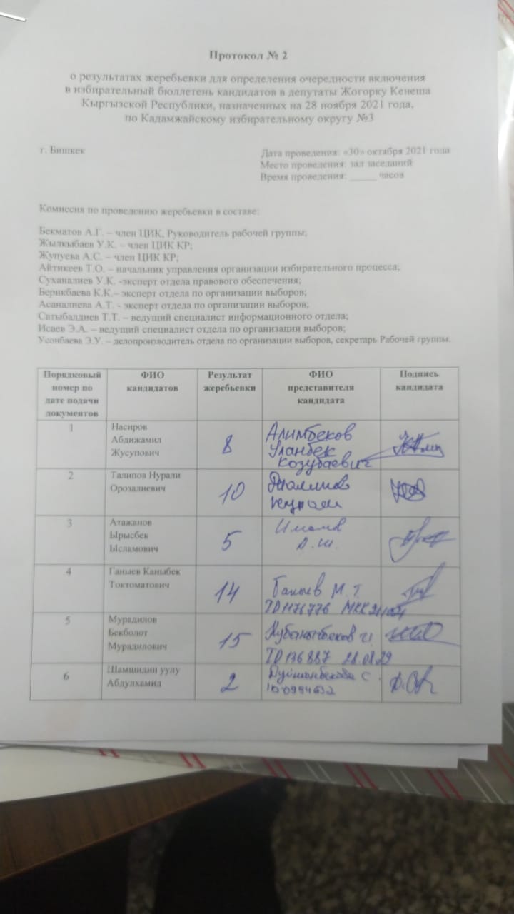 Кадамжайский избирательный округ №3: Итоги жеребьевки по определению мест в бюллетене