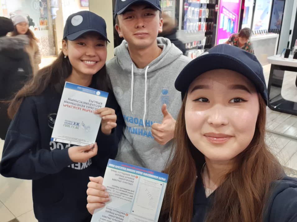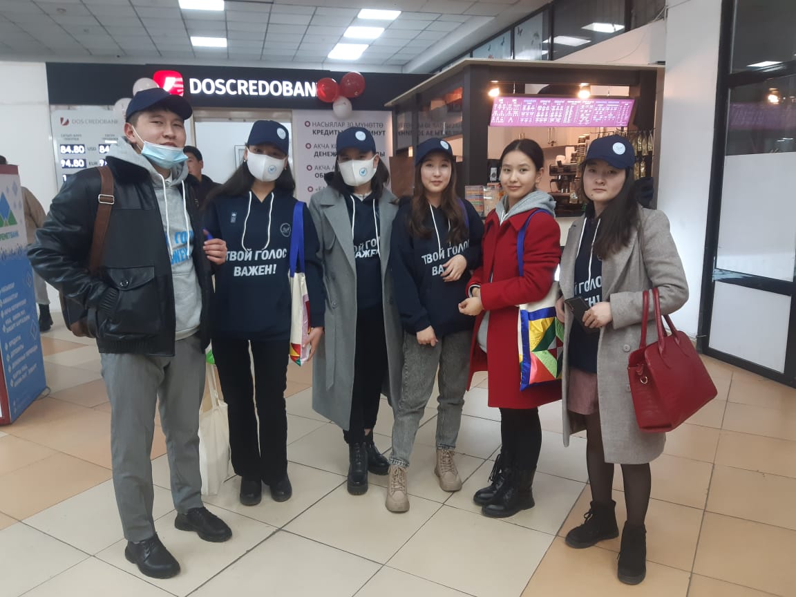 Волонтерами стали молодые избиратели – студенты Академии государственного управления при Президенте Кыргызской Республики, Кыргызской Государственной медицинской академии им.И.Ахунбаева, Кыргызского Государственного юридического университета, Бишкекского Государственного университета им.К.Карасаева, Кыргызского экономического университета им.М.Рыскулбекова.