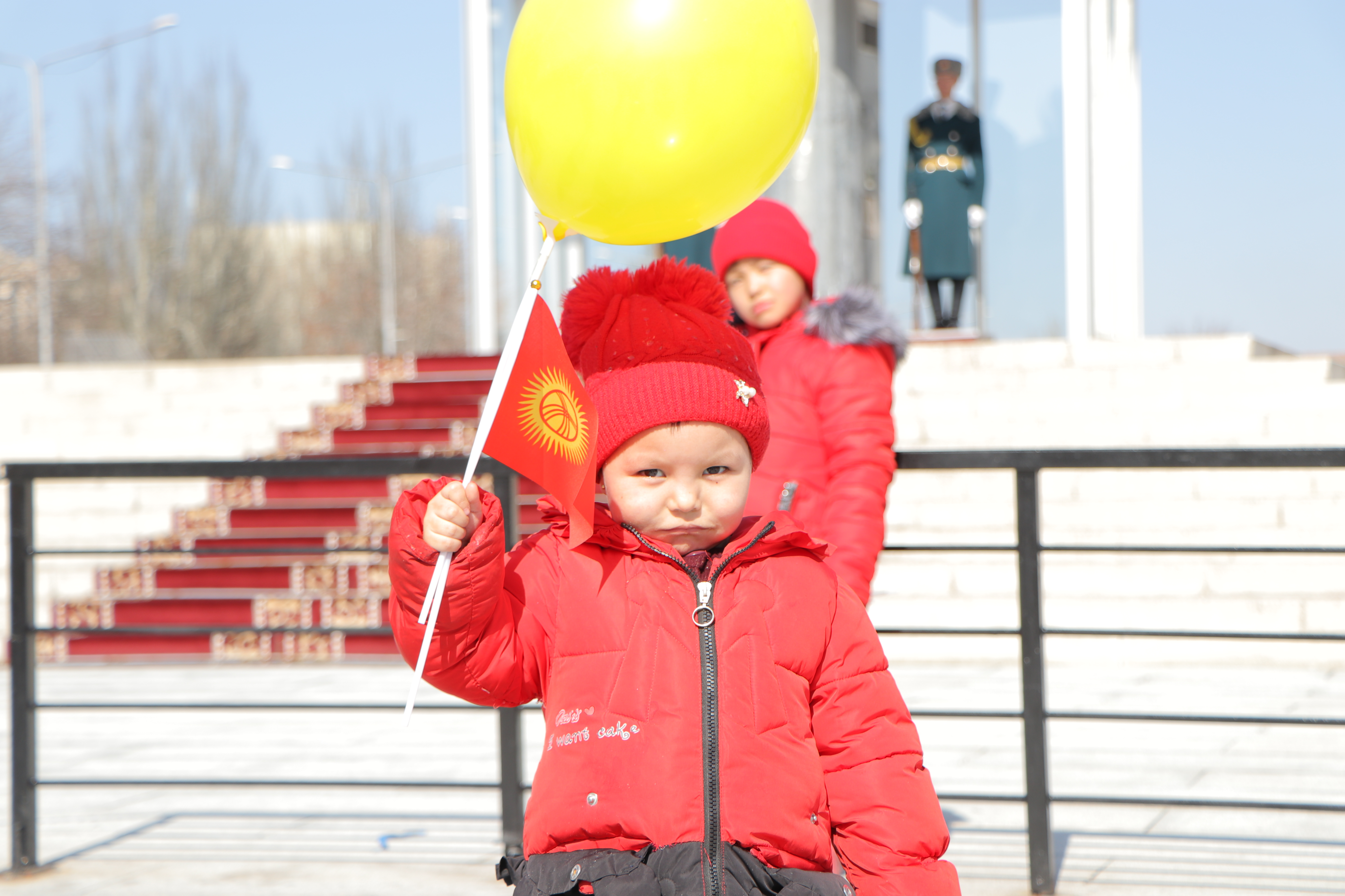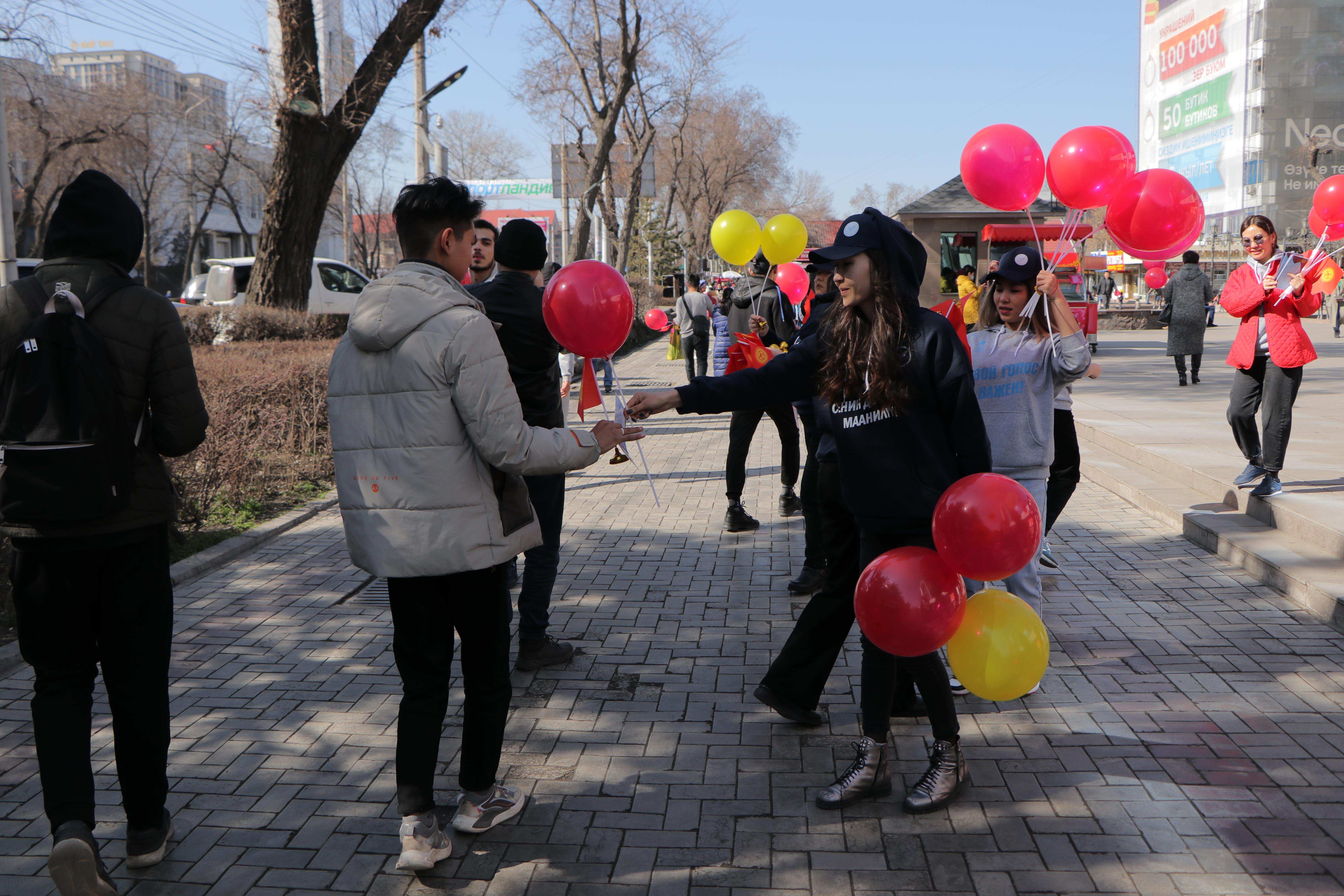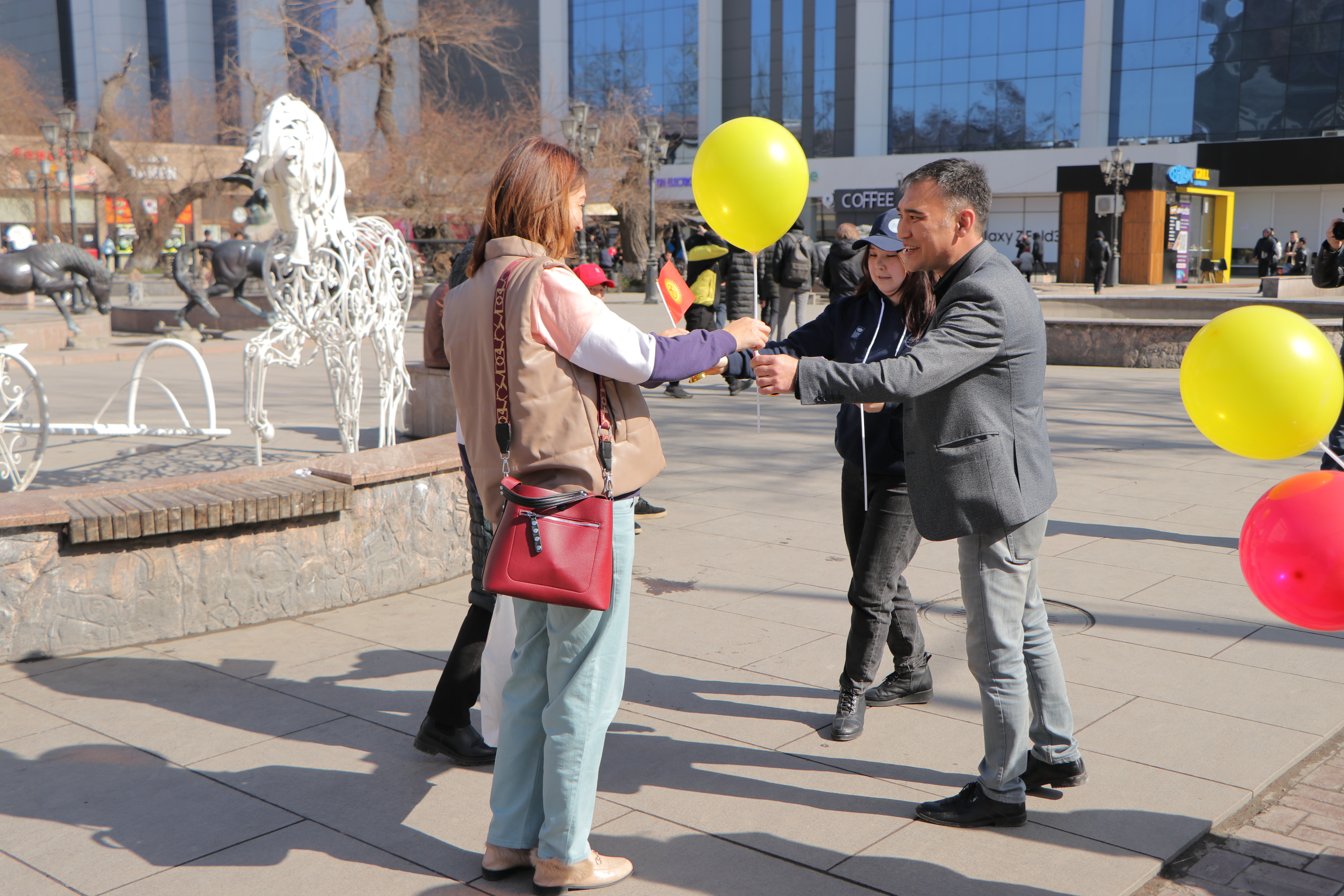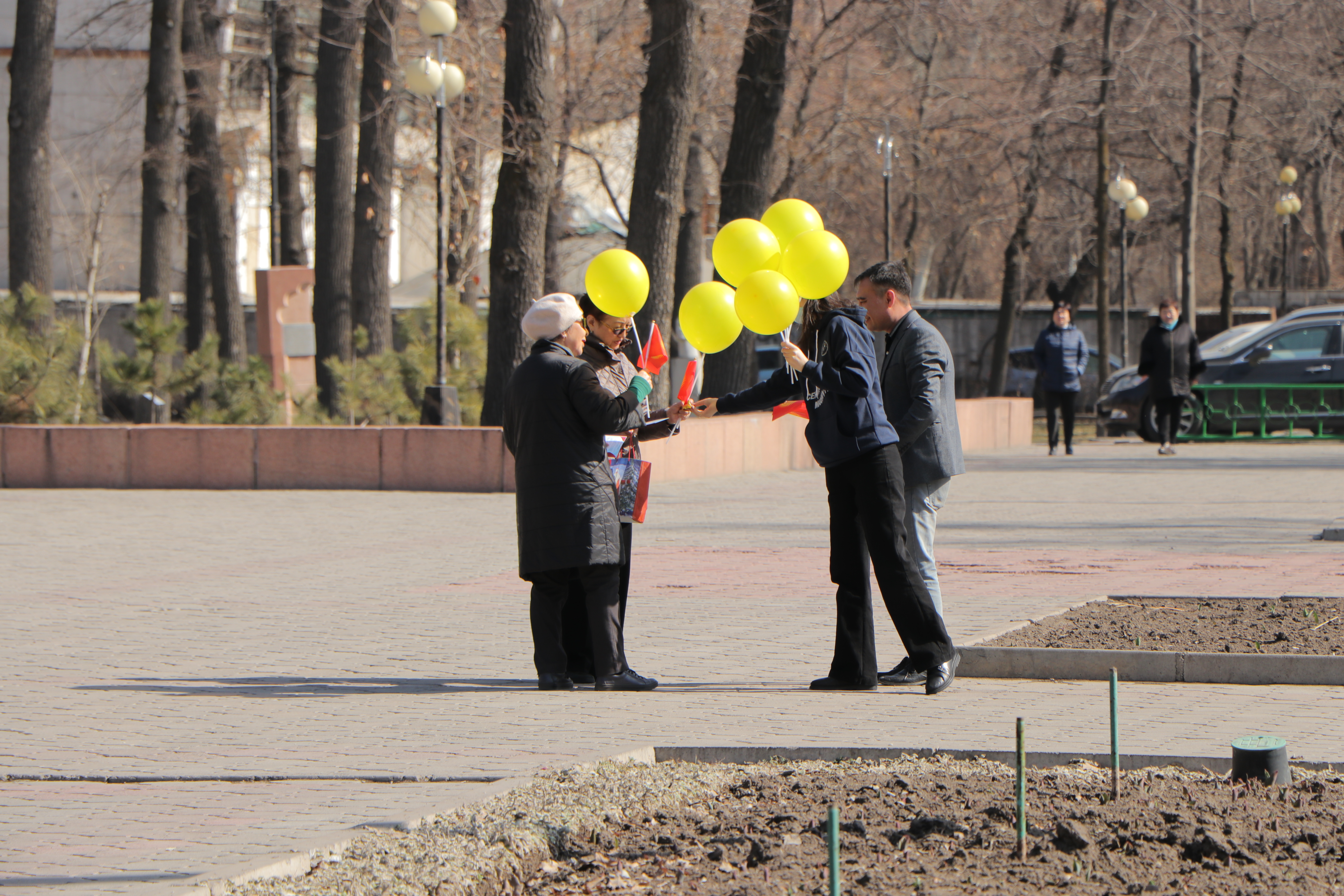 Также сотрудники аппарата ЦИК КР организовали флешмоб. На оживлённых улицах города Бишкек и на центральной площади Ала-Тоо горожанам и гостям столицы раздавали красно-желтые шары, которые передавали цветовую гамму флага, поздравительные открытки с краткой историей создания государственной символики, а также сам символ сегодняшнего праздника – флаг Кыргызской Республики.