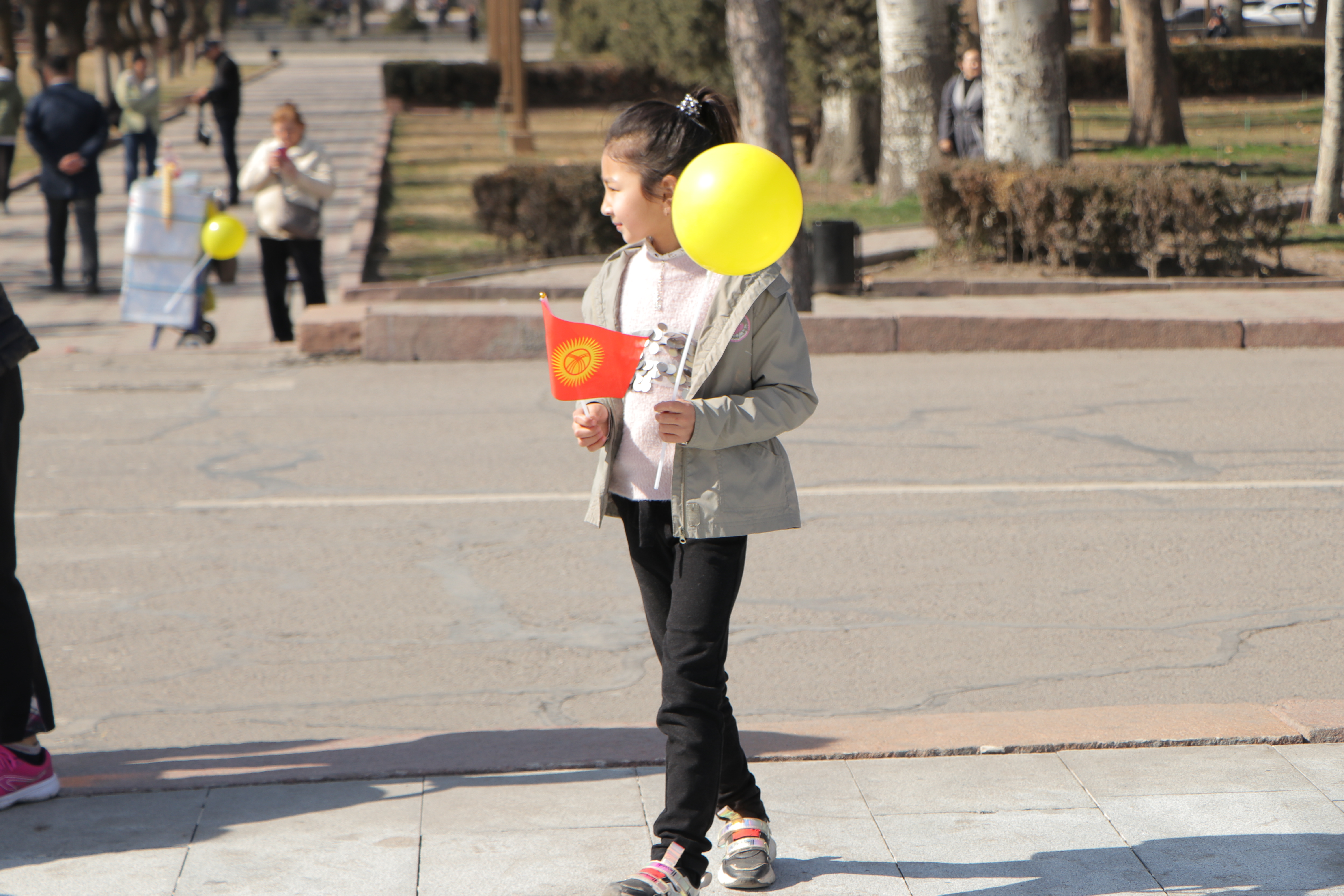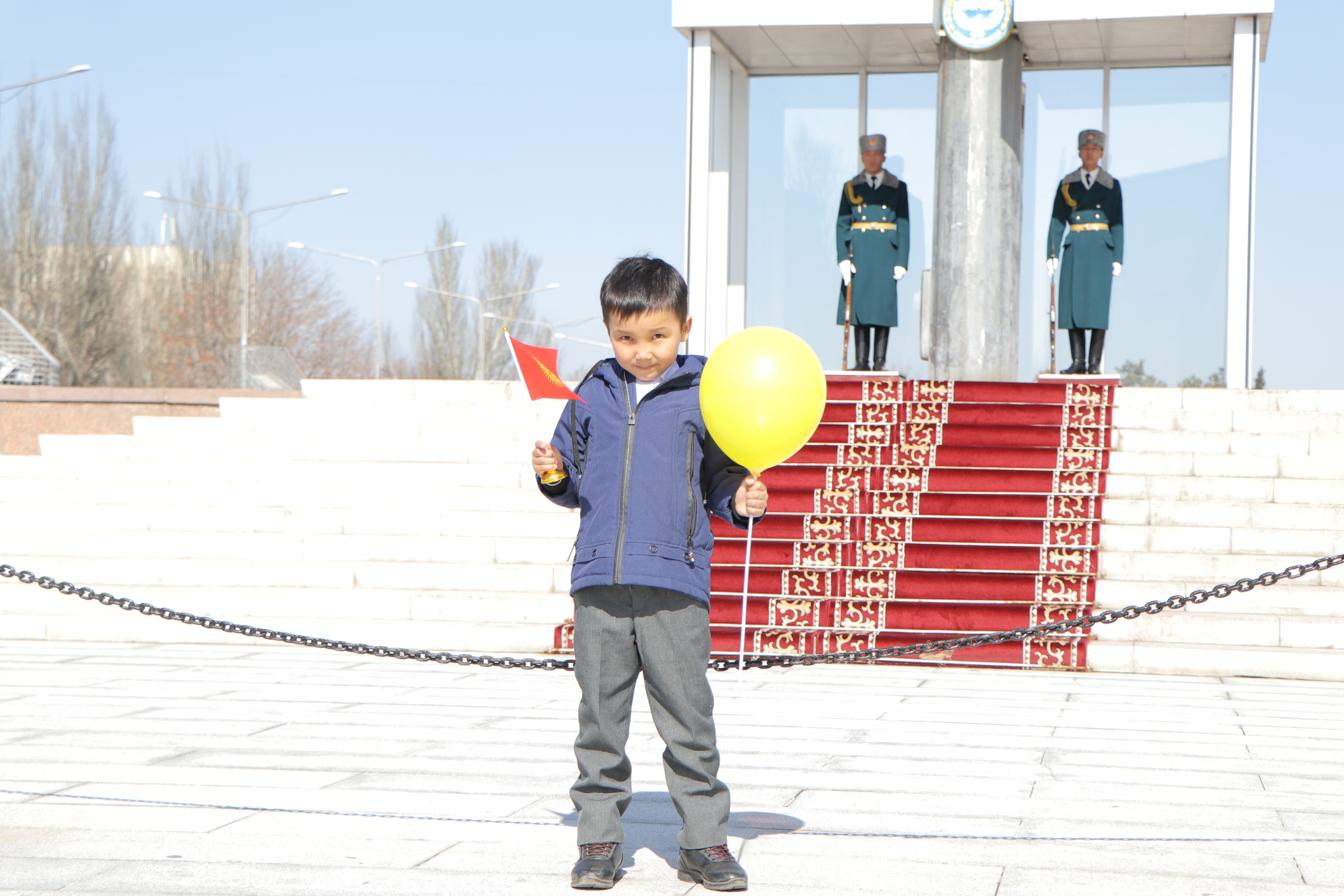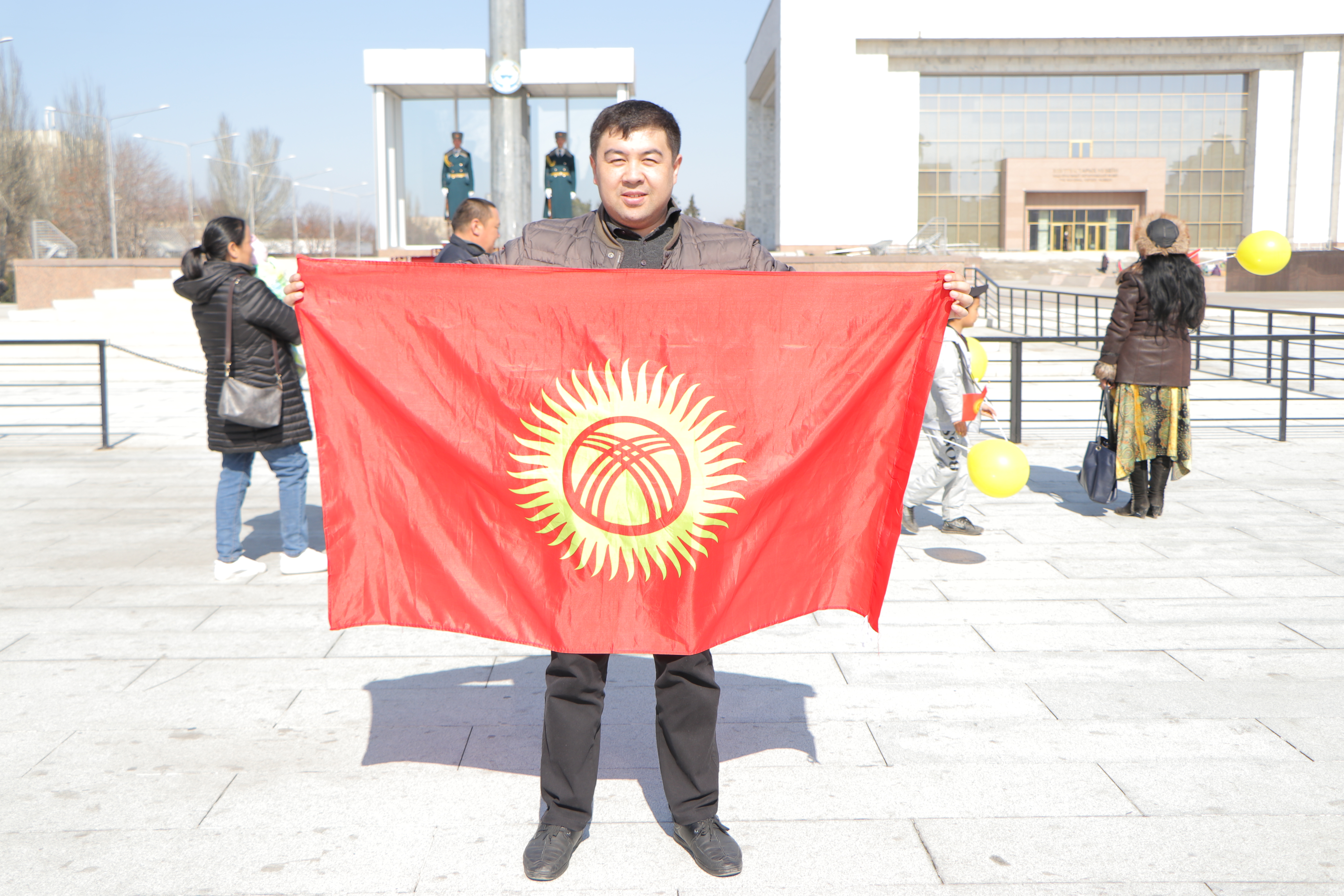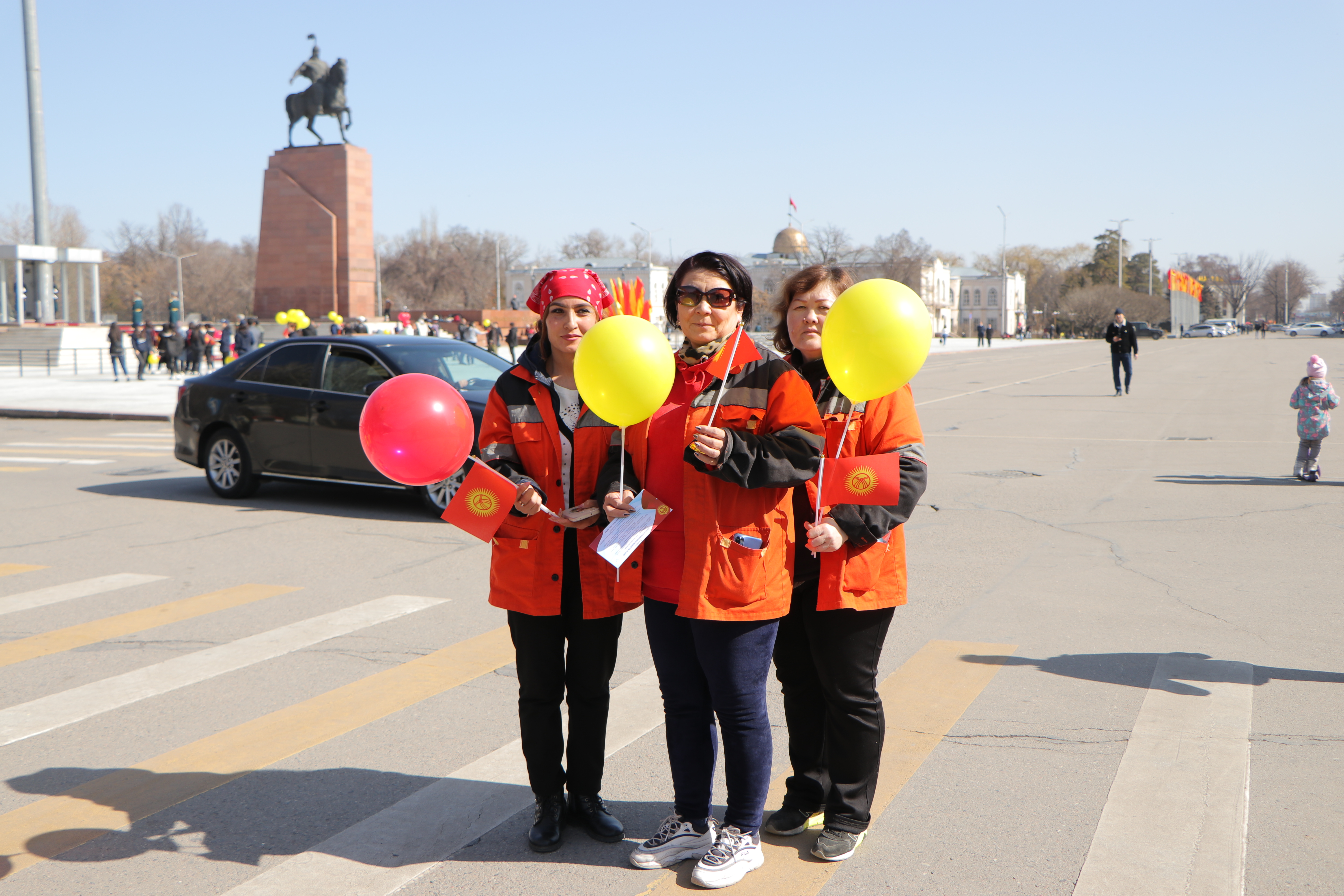 Также сотрудники аппарата ЦИК КР организовали флешмоб. На оживлённых улицах города Бишкек и на центральной площади Ала-Тоо горожанам и гостям столицы раздавали красно-желтые шары, которые передавали цветовую гамму флага, поздравительные открытки с краткой историей создания государственной символики, а также сам символ сегодняшнего праздника – флаг Кыргызской Республики.