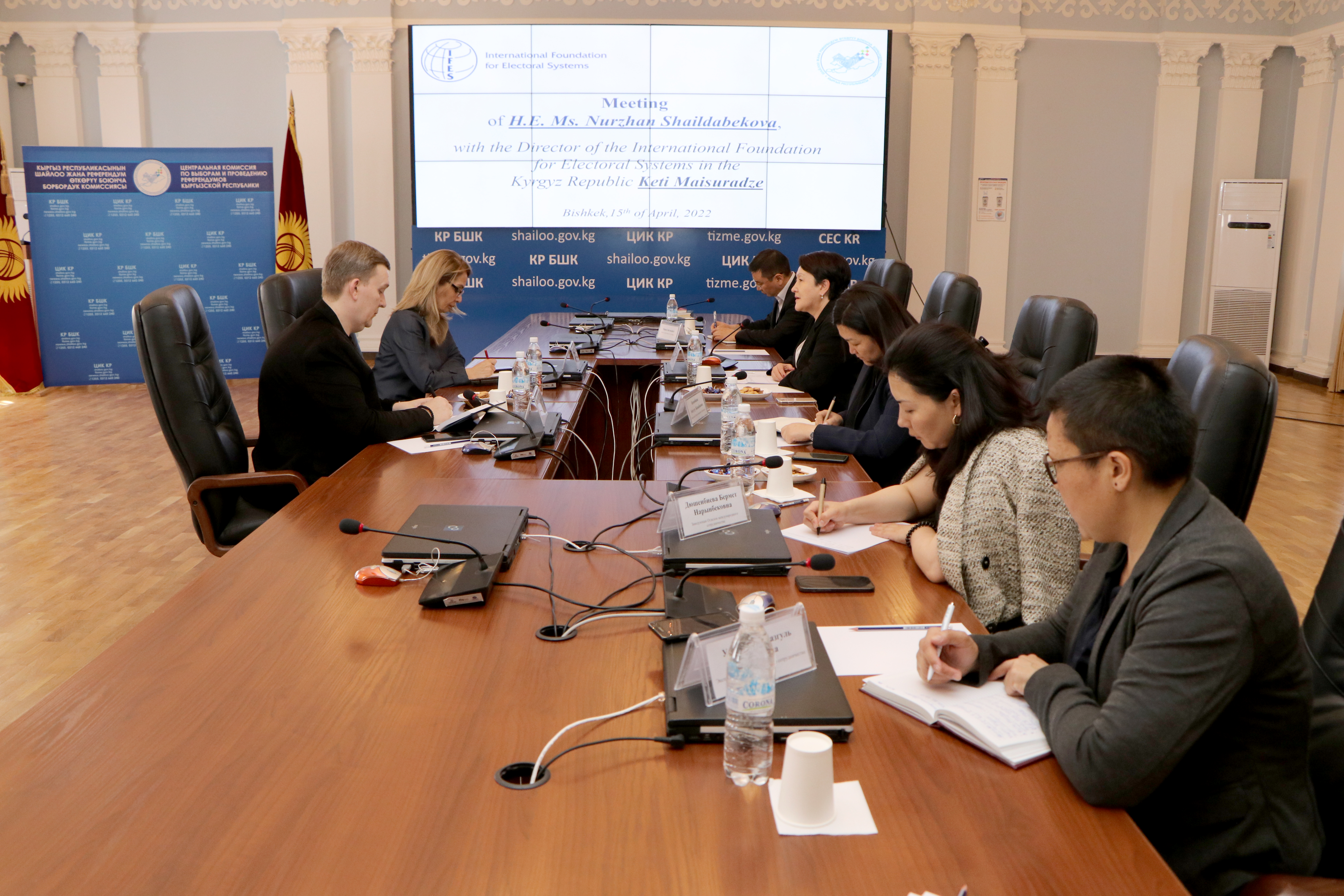 Во встрече приняли участие старший программный менеджер IFES в КР А. Орехов, директор Центра гражданского образования и избирательных технологий (ЦГО) М. Сарымсаков, координатор ЦГО А. Букамбаева и аппарат ЦИК.