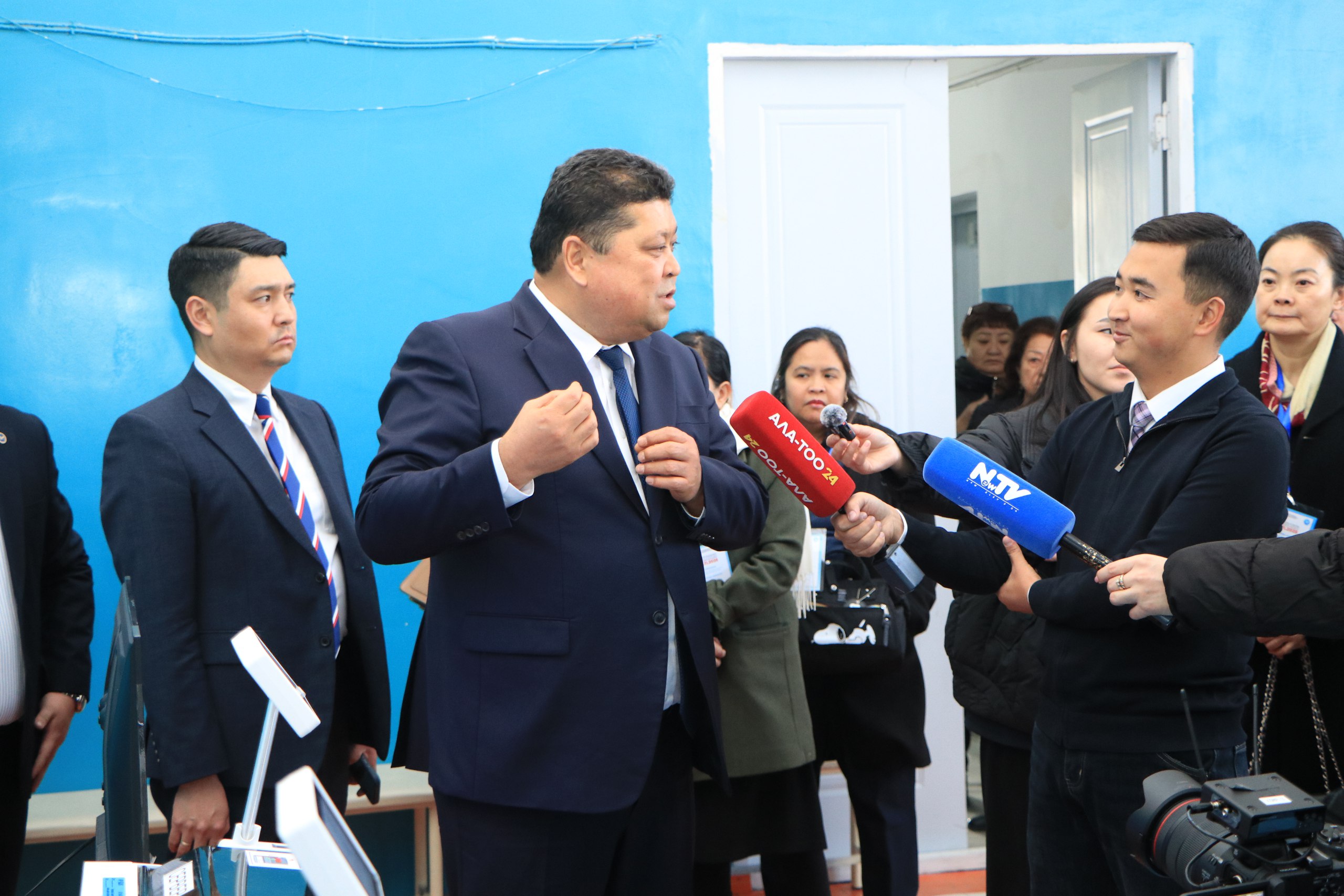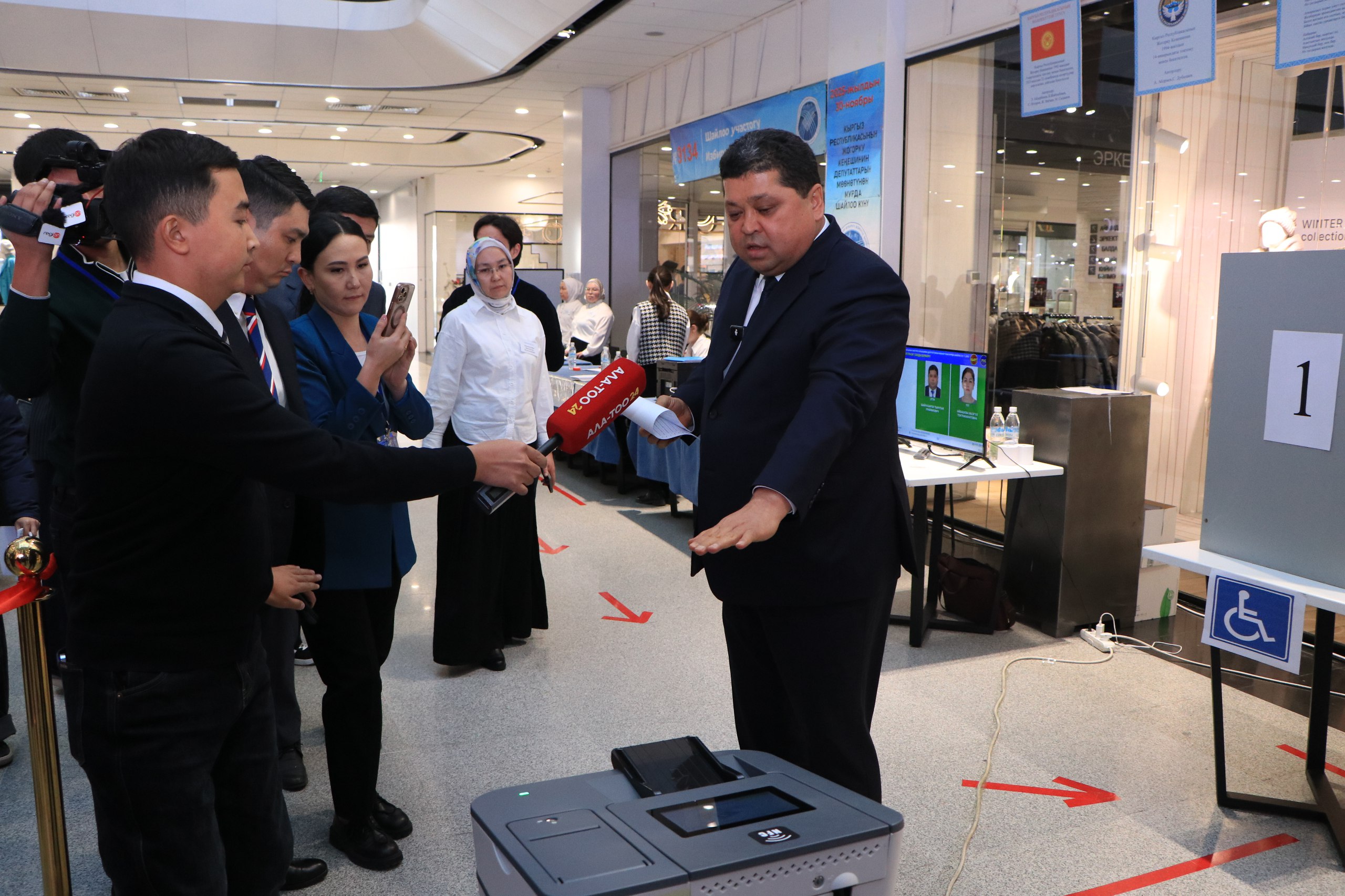 Перед голосованием председатель ЦИК продемонстрировал процедуру голосования на собственном примере от начала до конца. Как отмечалось, избиратель может проголосовать, предъявив один из трёх документов — международный паспорт, внутренний ID-паспорт или через приложение «Түндүк».