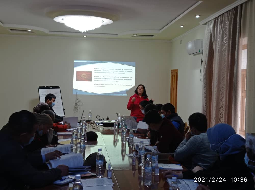 Алгачкы тренингдер Талас жана Токмок шаарларындагы шаардык кеңештерде болуп өттү. Катышуучулар жергиликтүү кеңештерге шайлоолорго катышуунун мыйзамдуу негиздери жана 448 жергиликтүү кеңештерде өтө турган учурдагы шайлоонун өзгөчөлүктөрү менен таанышышты.