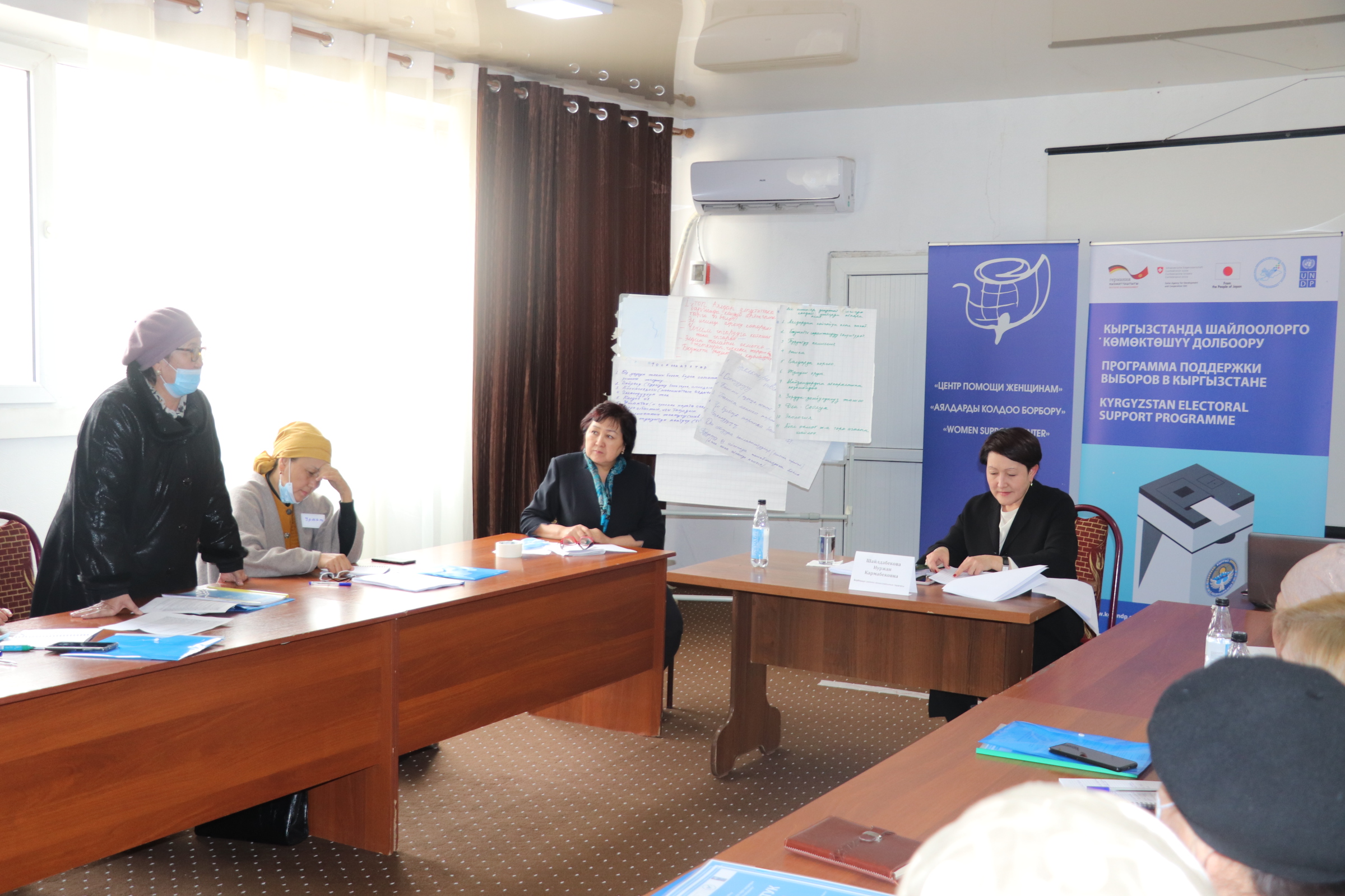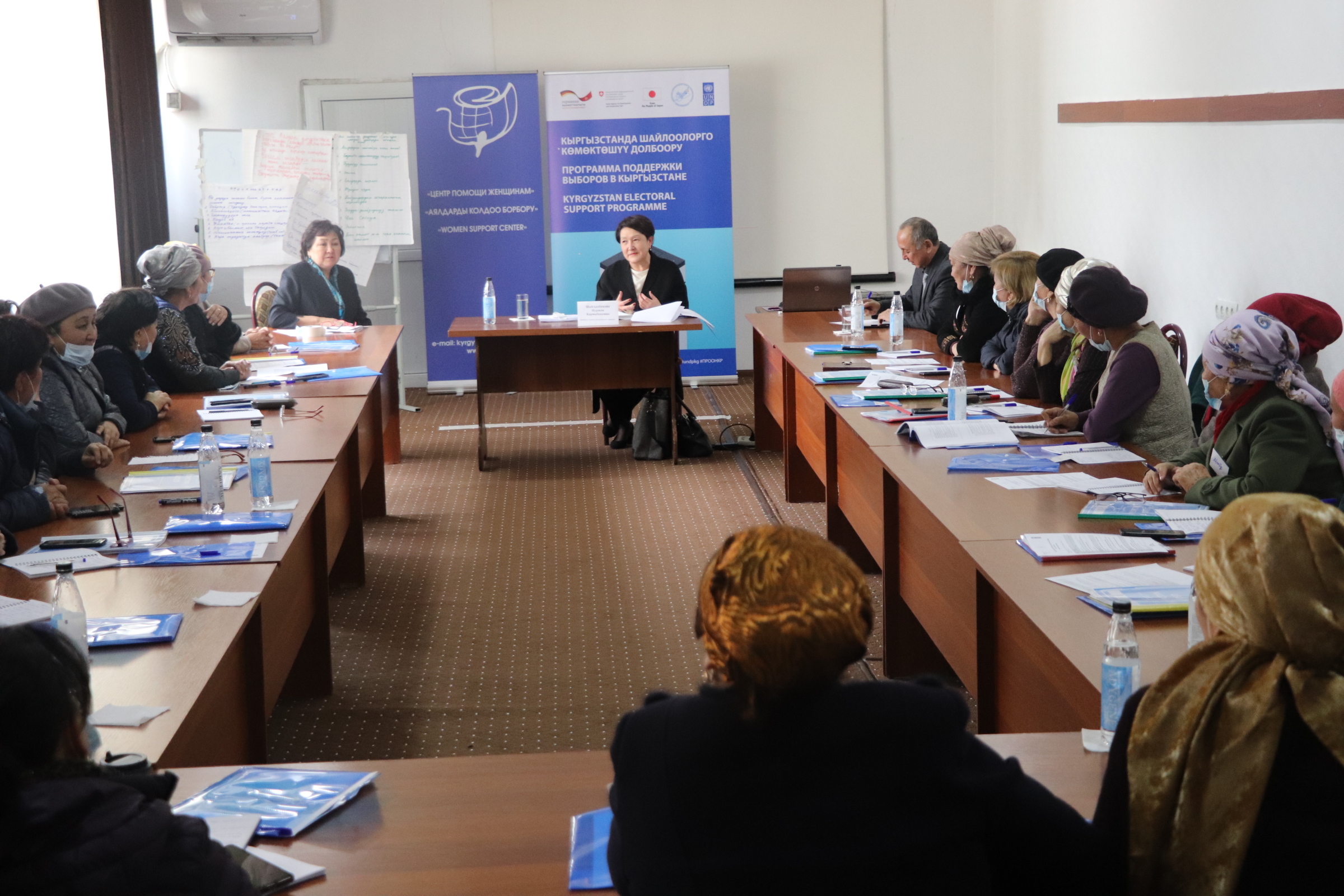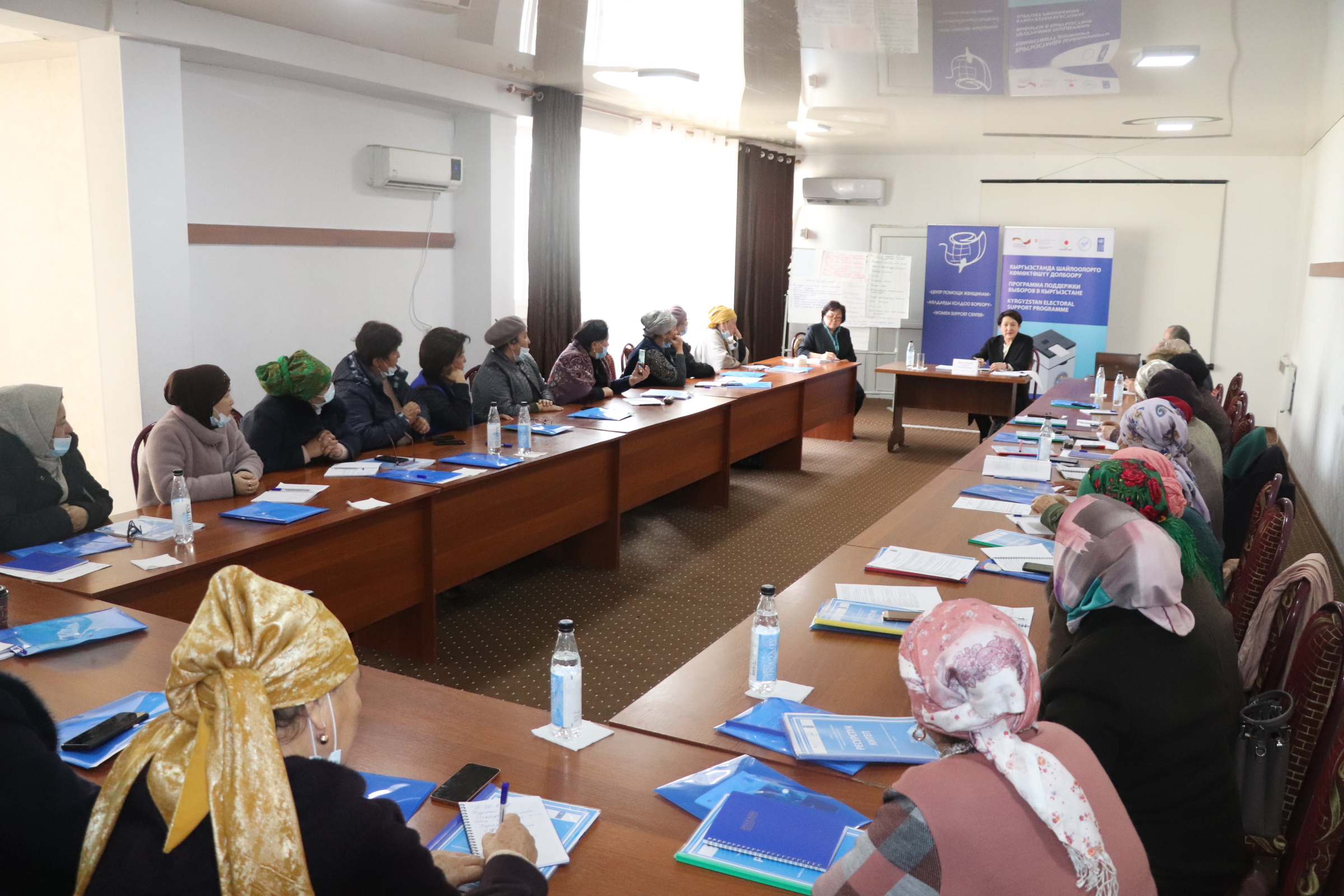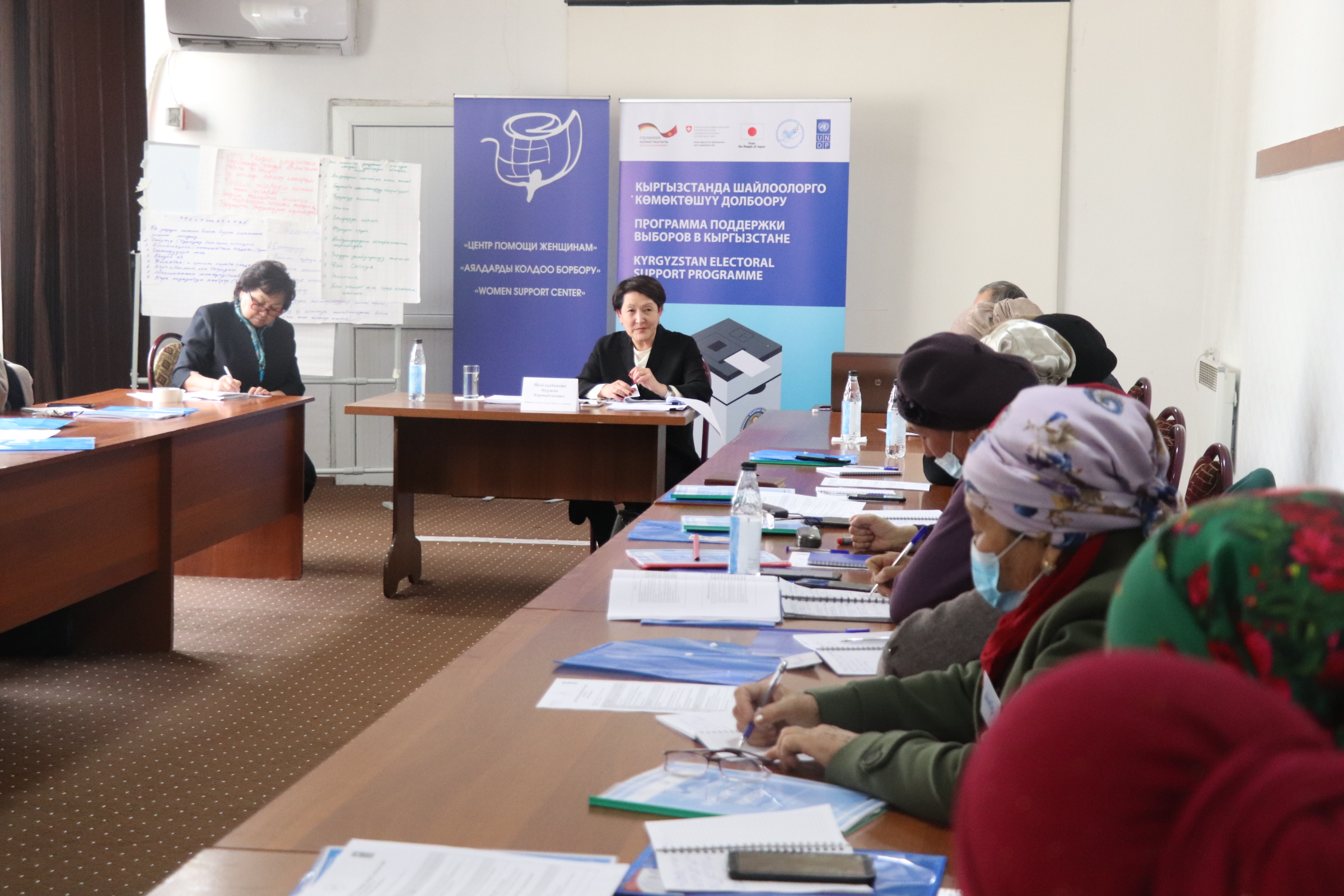 Тренингдердин алкагында катышуучулар аялдардын чечимдерди кабыл алууга катышуусунун маанилүүлүгүн, шайлоо мезгилинде аларды алдыга жылдыруунун жолдорун, жергиликтүү кеңештерге аялдар үчүн 30 %дык квота боюнча жаңы мыйзамды ишке ашыруу, жергиликтүү активисттерге дем берүүнү талкуулашат.