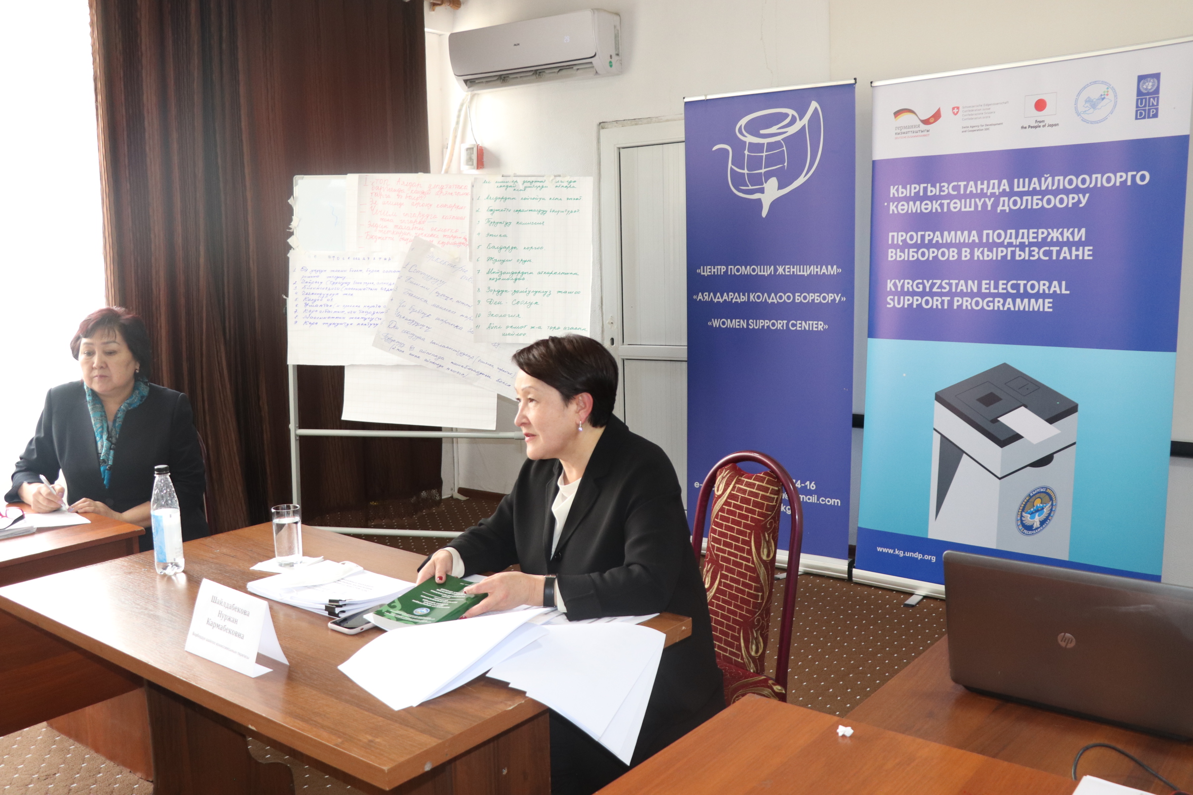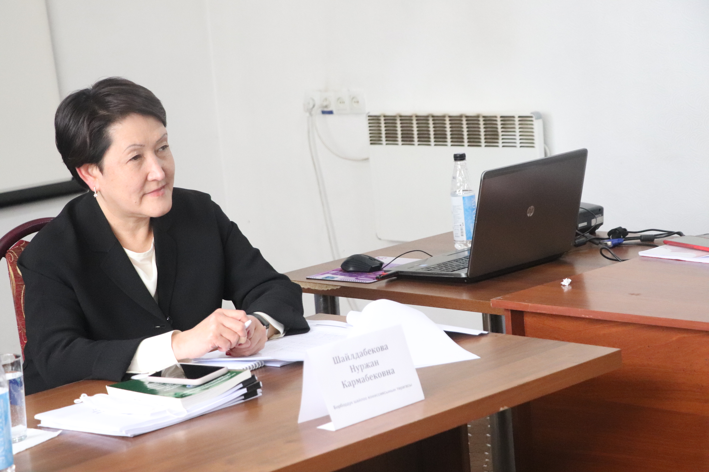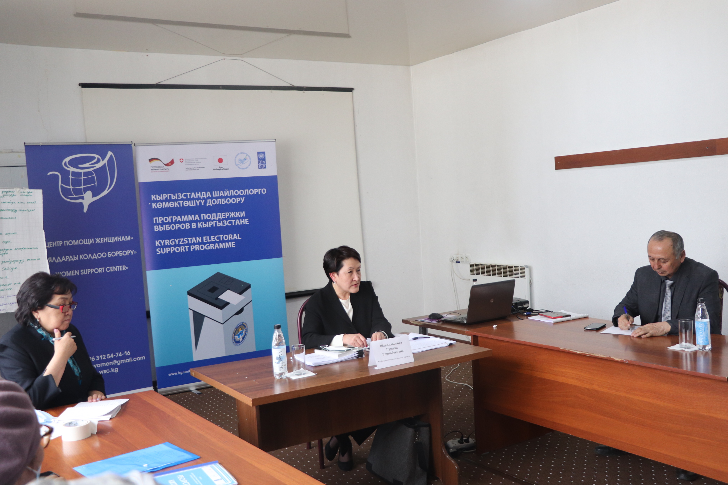 КР БШК төрайымы Н. Шалдабекова катышуучуларга шайлоо процесси жөнүндө маалымат берди.