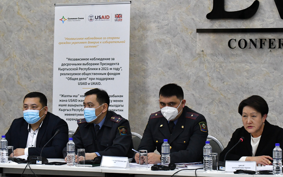 2021-жылдын 3-мартында Шайлоо жана референдум өткөрүү боюнча борбордук шайлоо комиссиясынын төрайымы Н. Шайлдабекованын, мөөнөтүнөн мурдагы президенттик шайлоого байкоо жүргүзгөн бейөкмөт коомдук уюмдардын өкүлдөрүнүн, мамлекеттик органдардын өкүлдөрүнүн жана ЖМК катышуусунда "Кыргыз Республикасынын Президентин кезексиз шайлоого байкоо жүргүзүүнүн натыйжалары" аталган тегерек столу болуп өттү. Тегерек столдо Кыргыз Республикасынын Жогорку Кеңешине, Кыргыз Республикасынын Өкмөтүнө, Кыргыз Республикасынын БШКсына шайлоо мыйзамдарын мындан ары өркүндөтүүгө, жарандардын активдүү жана пассивдүү шайлоо укуктарын ишке ашырууну камсыз кылууга, каржылоонун ачык-айкындуулугуна, шайлоо фонддорунун, шайлоо укуктарынын бузулушуна натыйжалуу каршы туруу жана шайлоо комиссияларынын потенциалын жогорулатууга багытталган сунуштар талкууланды. Кыргыз Республикасынын БШК төрайымы Н. Шайлдабекова мониторингдин натыйжалары каталар боюнча тийиштүү иштерди жүргүзүүгө жана андан ары өркүндөтүүнү талап кылган суроолорго жоопторду бергендигин белгиледи. «Шайлоонун натыйжалары боюнча тегерек стол адаттагыдай эле шайлоо жараянын жакшыртуу жана өркүндөтүү, жарандардын шайлоо укуктарын камсыз кылуу боюнча пикир алуу максатында өткөрүлөт. Өткөн шайлоо өнөктүгүндө шайлоо процесстеринин көптөгөн нюанстарына жана өзгөчөлүктөрүнө байланыштуу, мониторингидин мазмуну жана сапаты жакшыргандыгын белгилегим келет. Өзгөчө 2018-2020-жылдарга шайлоо мыйзамдарын өркүндөтүү стратегиясын ишке ашырууга акыркы мыйзамдык өзгөртүүлөр киргизилгенден кийин, бул процесс жакшырды. Шайлоо процессинин бир катар конкреттүү маселелери боюнча БШК менен коомдук байкоочулардын ортосунда түшүнүккө жетишилди. Сапаттуу байкоо жүргүзүү абдан маанилүү, анткени компетентсиз мониторинг жана бир жактуу жыйынтыктарды жарыялоо шайлоо процессинин катышуучуларынын ортосунда чыр-чатактардын келип чыгышына себеп болушу мүмкүн ”. Анын пикиринде, жалпыга маалымдоо каражаттарынын ролу коомдук пикирдин калыптанышына, ошондой эле шайлоочуга ишенимдүү маалымат жеткирүүгө таасир этет. Бул үчүн алар компетенттүү жана ишенимдүү булакты айырмалай билиши керек жана шайлоочуга туура, такталган маалыматты жеткириши керек. «Белгилей кетүүчү нерсе, бардык эл аралык байкоочулар, анын ичинде ЕККУ / ДИАУБ миссиясы жана ЕККУ ПА биргелешкен алдын-ала отчетунда Кыргыз Республикасынын Президентин кезексиз шайлоо жогорку деңгээлде өткөндүгүн моюнга алышты. Шайлоо тутуму өркүндөлүү процессинде, шайлоо жараянынын ишенимдүүлүгү жана ачык-айкындуулугунда чоң жетишкендиктер бар, жарандар өзүлөрүнүн катышуусун аныктап турган эркин шайлоолордун мүмкүнчүлүктөрү бар. Биз бардык сунуштар боюнча тынымсыз иштеп жатабыз, өркүндөтүүнү талап кылган маселелерди эске алып, аларды менен иштешүүгө даярбыз.