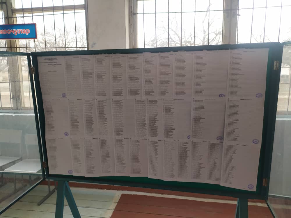 2273 шайлоо участкаларында Кыргыз Республикасынын жергиликтүү кеңештеринин депутаттарын шайлоого шайлоочулардын тизмеси жайгаштырылган