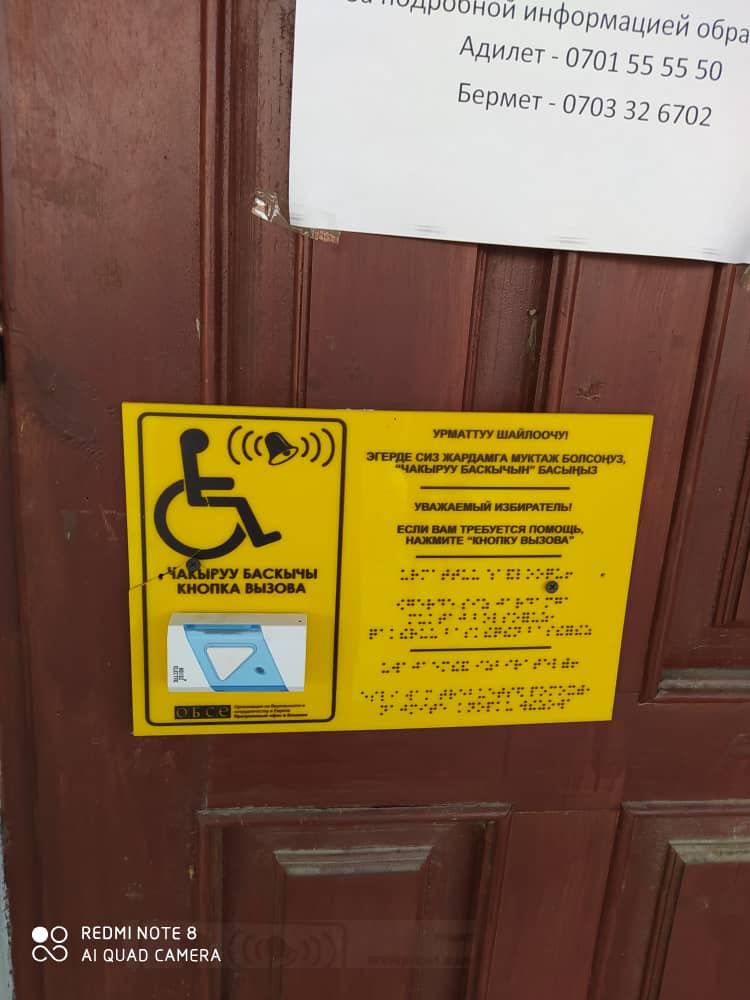 Ошондой эле, шайлоонун инклюзивдүүлүгүн кеңейтүү үчүн, столдор, кабиналар жана урналар, ошондой эле шайлоо участкаларындагы маалымат стенддери майыптар коляскасын колдонгон же көзкарандысыз кыймылдашы кыйынчылыкка туш болгон шайлоочуларга алардын жеткиликтүүлүгүн камсыз кылган шартта жайгашкан (бийиктиги, туурасы, тереңдиги жана жайгашкан жери боюнча).