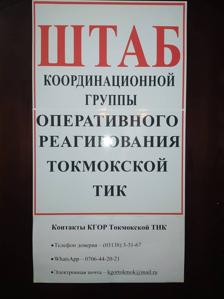 Токмок АШКнын ЫЧКТ штабынын дареги: Токмо кш., Ленин көчөсү, №385, 1-кабат.