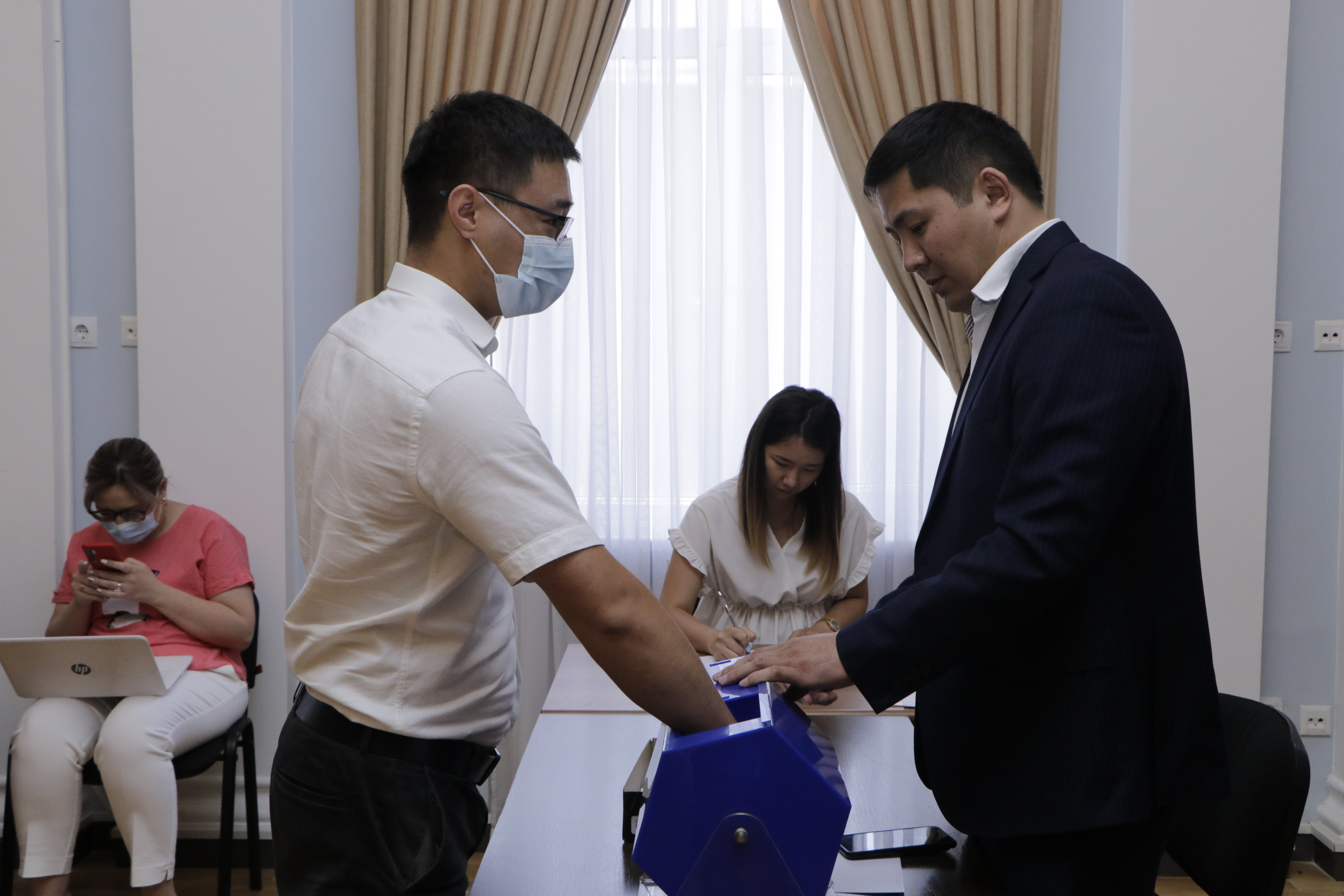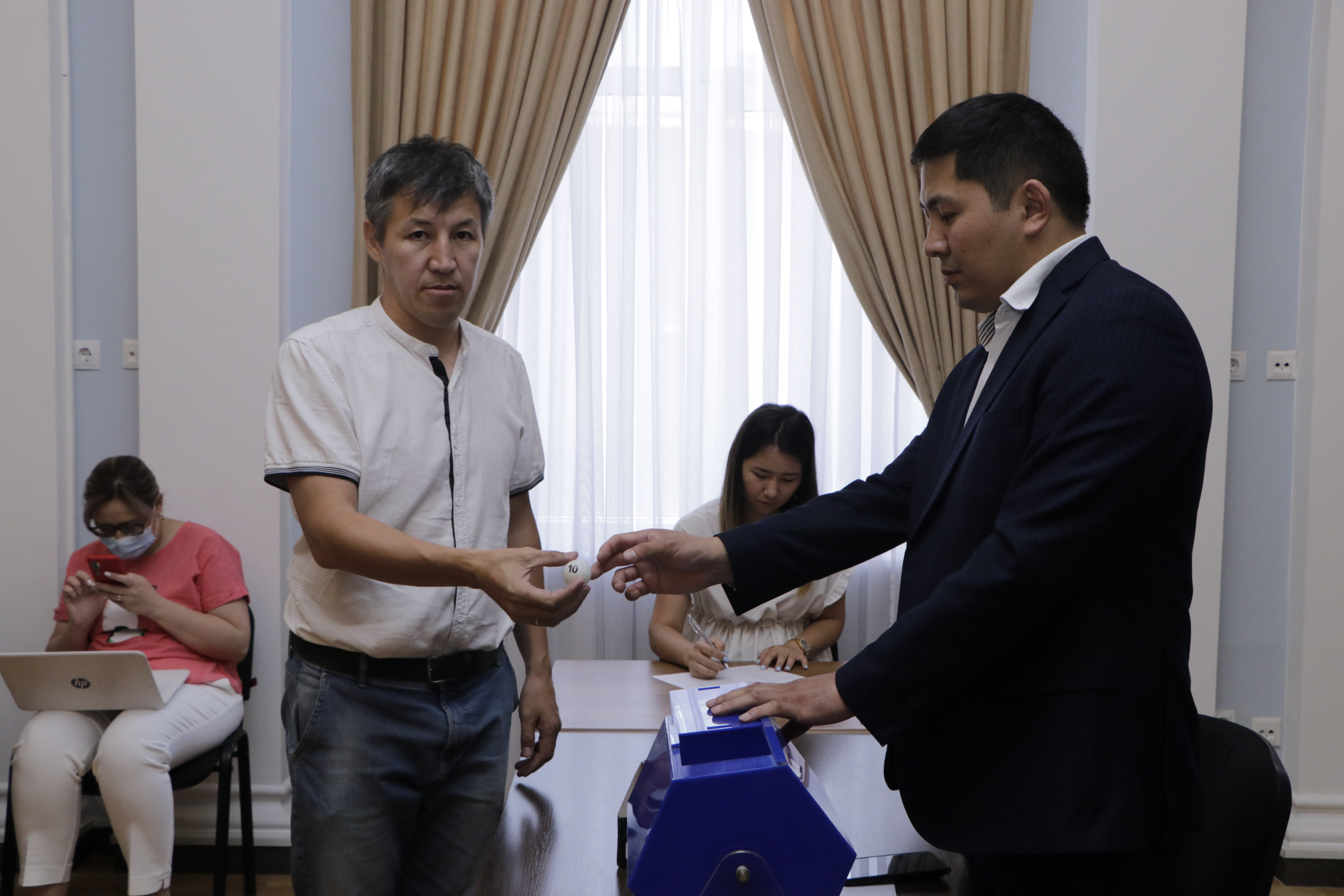 Бүгүн – 2021-жылдын 21-июнунда Бишкек аймактык шайлоо комиссиясы Бишкек шаардык кеңешинин депутаттарын кайталап шайлоого катталган саясий партиялардын ортосунда катталган саясий партияларды шайлоо бюллетенине киргизүүнүн кезектүүлүгүн аныктоо боюнча чүчүкулак өткөрдү.