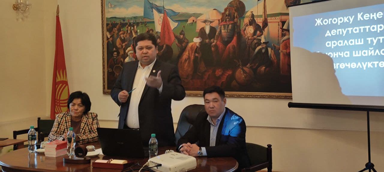 КР БШК мүчөсү, Чет өлкөлөрдө жашаган жарандардын шайлоо укуктарын камсыз кылуу боюнча Жумушчу топтун жетекчиси Анар Дубанбаева жолугушуунун катышуучуларына Жогорку Кеңештин депутаттарын аралаш тутум боюнча шайлоонун өзгөчөлүктөрү жөнүндө айтып берди.