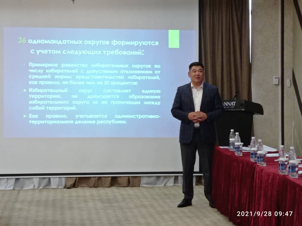 Катышуучуларга бирдиктүү шайлоо округу жана бир мандаттуу шайлоо округу боюнча саясий партиялардан жана өзүн-өзү көрсөтүү тартибинде талапкерлерди көрсөтүү тартиби тууралуу маалымат берилди. Өзгөчө көңүл талапкерлердин статусуна бурулду. «Кыргыз Республикасынын Президентин жана Кыргыз Республикасынын Жогорку Кеңешинин депутаттарын шайлоо жөнүндө» жаңы конституциялык Мыйзамга ылайык, талапкер иштеген, кызмат өтөгөн мамлекеттик органдардын, жергиликтүү өз алдынча башкаруу органдарынын, ишканалардын, мекемелердин, уюмдардын жетекчилери, аскер бөлүктөрүнүн командирлери жана органдардын тиешелүү кызмат адамдары талапкер арыз, рапорт менен кайрылган учурдан тартып 3 календардык күндүн ичинде, менчигинин түрүнө карабастан эмгек акысынын орточо өлчөмүн мекеменин, ишкананын, уюмдун эсебинен сактоо менен анын кызматтык ыйгарым укуктарын аткаруусун токтотуп турууга милдеттүү. Талапкерлер же болбосо алардын ыйгарым укуктуу өкүлдөрү, саясий партиялардын ыйгарым укуктуу өкүлдөрү талапкер, талапкерлердин тизмеси көрсөтүлгөн күндөн тартып 5 календардык күндөн кечиктирбестен тиешелүү буйруктардын (тескемелердин) күбөлөндүрүлгөн көчүрмөсүн Борбордук шайлоо комиссиясына берет.