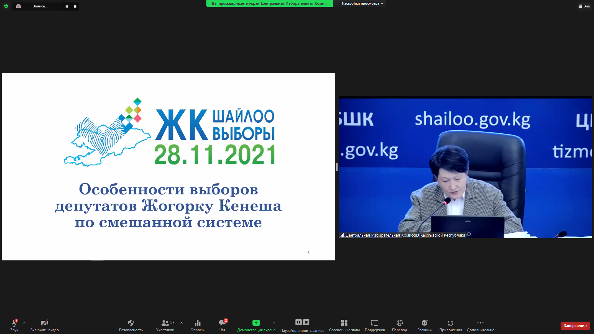 Жолугушууда Н.Шайлдабекова академиянын угуучуларын 2021-жылдын 28-ноябрына дайындалган Кыргыз Республикасынын Жогорку Кеңешинин депутаттарын шайлоонун өзгөчөлүктөрү менен тааныштырды. КР БШК төрагасы өз сөзүндө эми Жогорку Кеңештин депутаттарын шайлоо аралаш шайлоо тутуму менен өтөөрүн, ага ылайык 36 депутат мажоритардык тутум боюнча, ал эми 54 депутат пропорционалдык тутуму боюнча шайланат. Парламент депутататтары мурда партиялардын жабык тизмелери боюнча шайланса, азыр шайлоочу бюллетень алып, партия эле үчүн эмес, партиядагы айрым бир талапкер үчүн дагы добуш берүү мүмкүнчүлүгү бар.