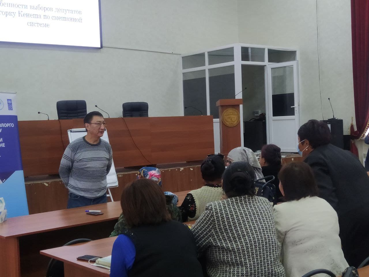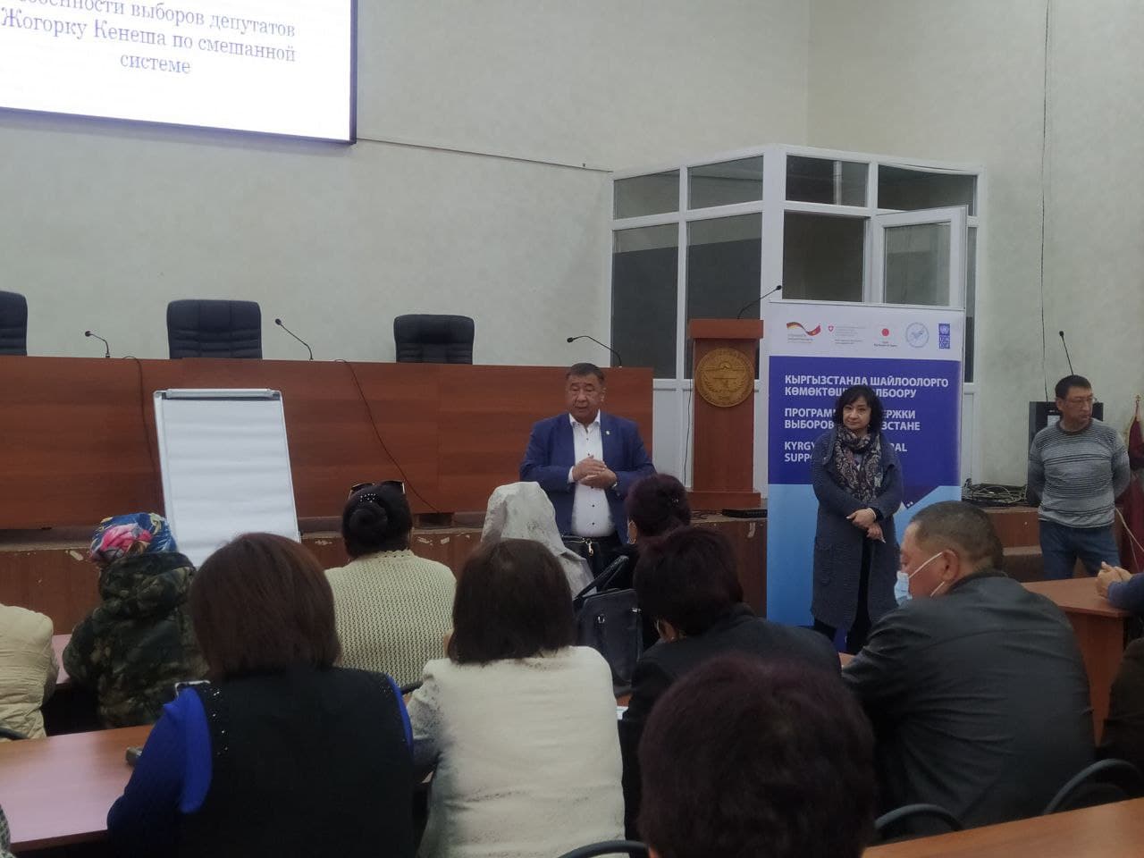 КР БШК мүчөсү Искандер Гайпкулов катышуучуларга аралаш шайлоо тутумунун өзгөчөлүктөрү, бирдиктүү жана бир мандаттуу шайлоо округдарынан талапкерлерди көрсөтүү тартиби, шайлоо округдарын түзү принциптери, схемалары жана чек аралары тууралуу маалымат берди. Жогорку Кеӊешке депутаттыкка талапкерлерди көрсөтүү жана каттоо процедурасын карап чыгууда инклюзивдик компонентке басым жасалды. Ден соолугунун мүмкүнчүлүктөрү чектелүү талапкер көрсөтүлгөн учурда жана буга байланыштуу ушул конституциялык Мыйзамда каралган өзүн-өзү көрсөтүү жөнүндө арызды өз алдынча жазууга, башка документтерди толтурууга мүмкүнчүлүгү жок болгон учурда, бул адам башка адамдын жардамынан пайдаланууга укуктуу. Мында каттоо документтерин толтурууга жардам берип жаткан адамдын ыйгарым укуктары нотариалдык жактан күбөлөндүрүлүүгө тийиш.