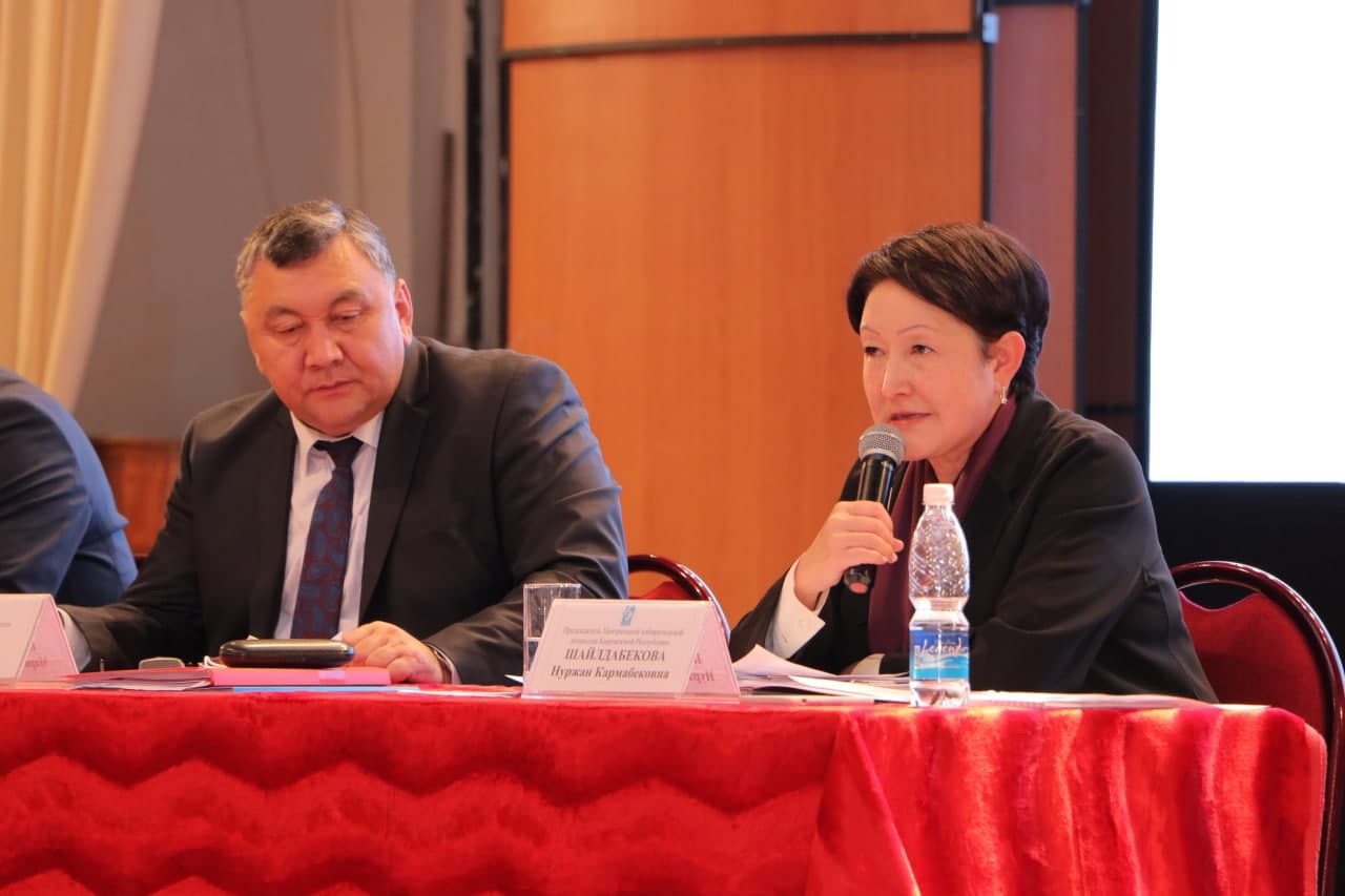 Штабдын тең төрагасы Н. Шайлдабекова Жогорку Кеңештин депутаттарын шайлоонун жол-жобосунун өзгөчөлүктөрү тууралуу маалымат берди.