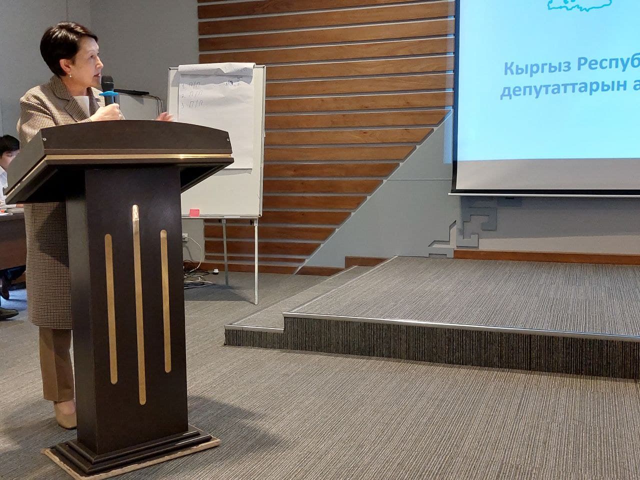 КР БШКнын төрагасы Н.Шайлдабекова катышуучуларга алдыдагы шайлоонун өзгөчөлүктөрүн, шайлоо процессинин ар бир этабындагы милдеттерди жана жоопкерчиликтерди, шайлоо мыйзамына киргизилген өзгөрүүлөрдү түшүндүрдү.