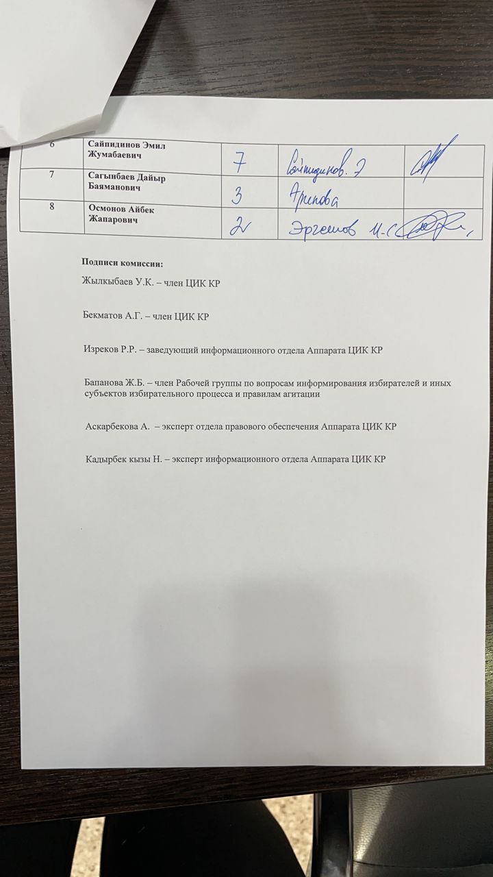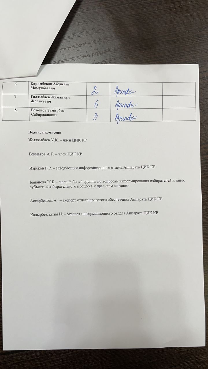 Анын жыйынтыгы боюнча дебаттарга жана жеке сөз сүйлөөгө катышуу үчүн позициялар төмөндөгүдөй аныкталды: