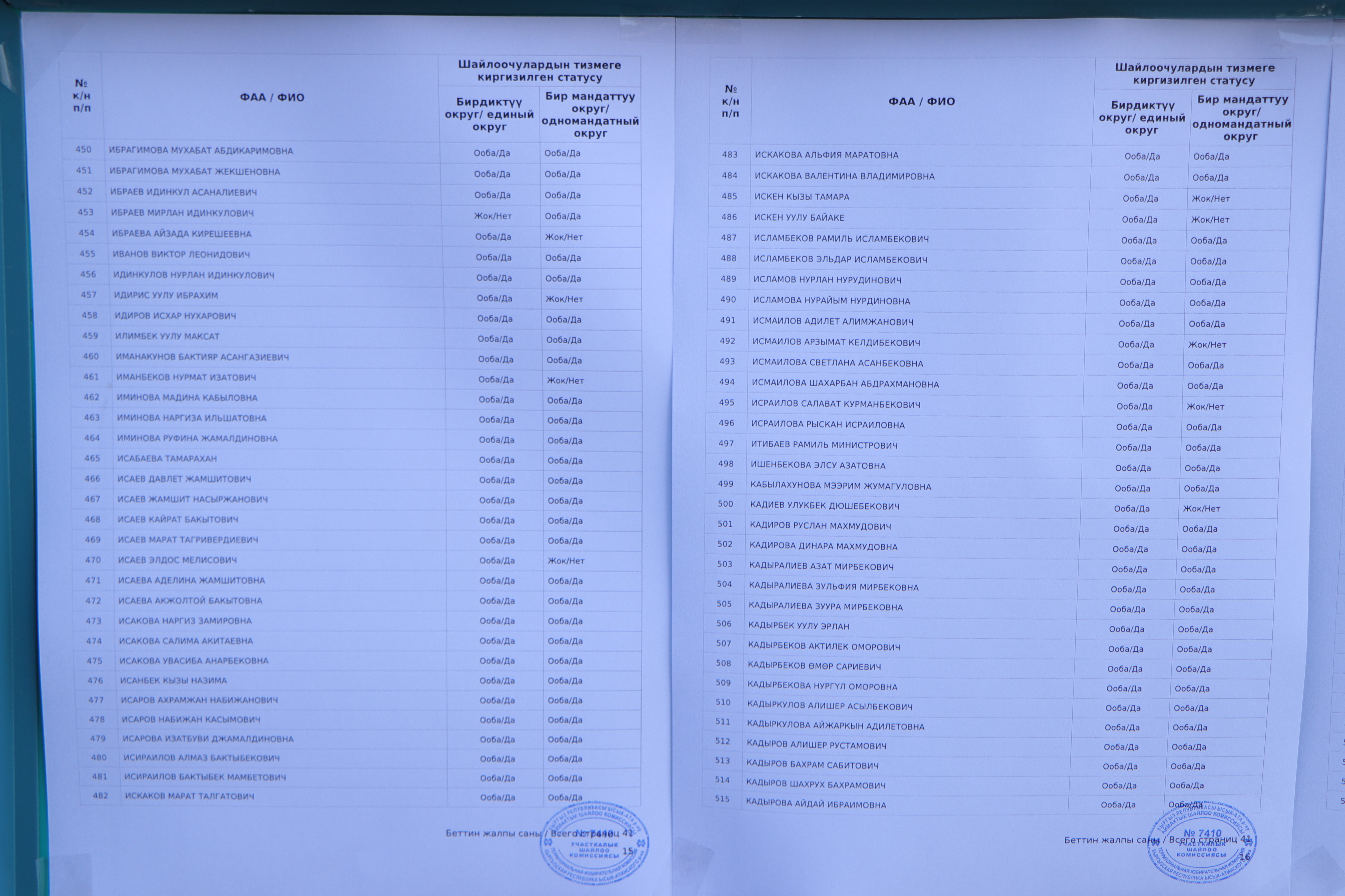 Байкоочулар өз көзү менен көрүп, кагаз түрүндөгү жана электрондук тизмени салыштыра алышты.