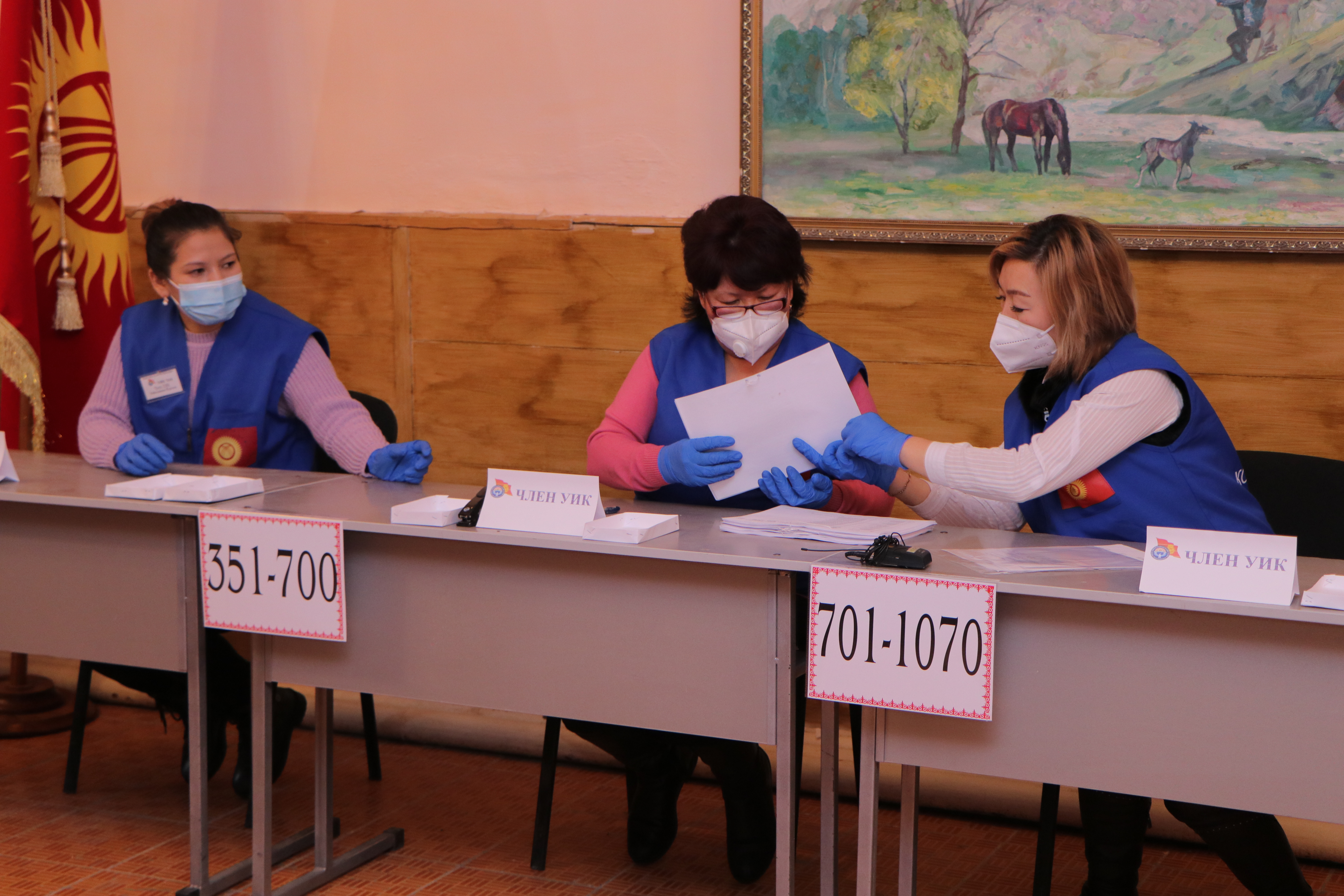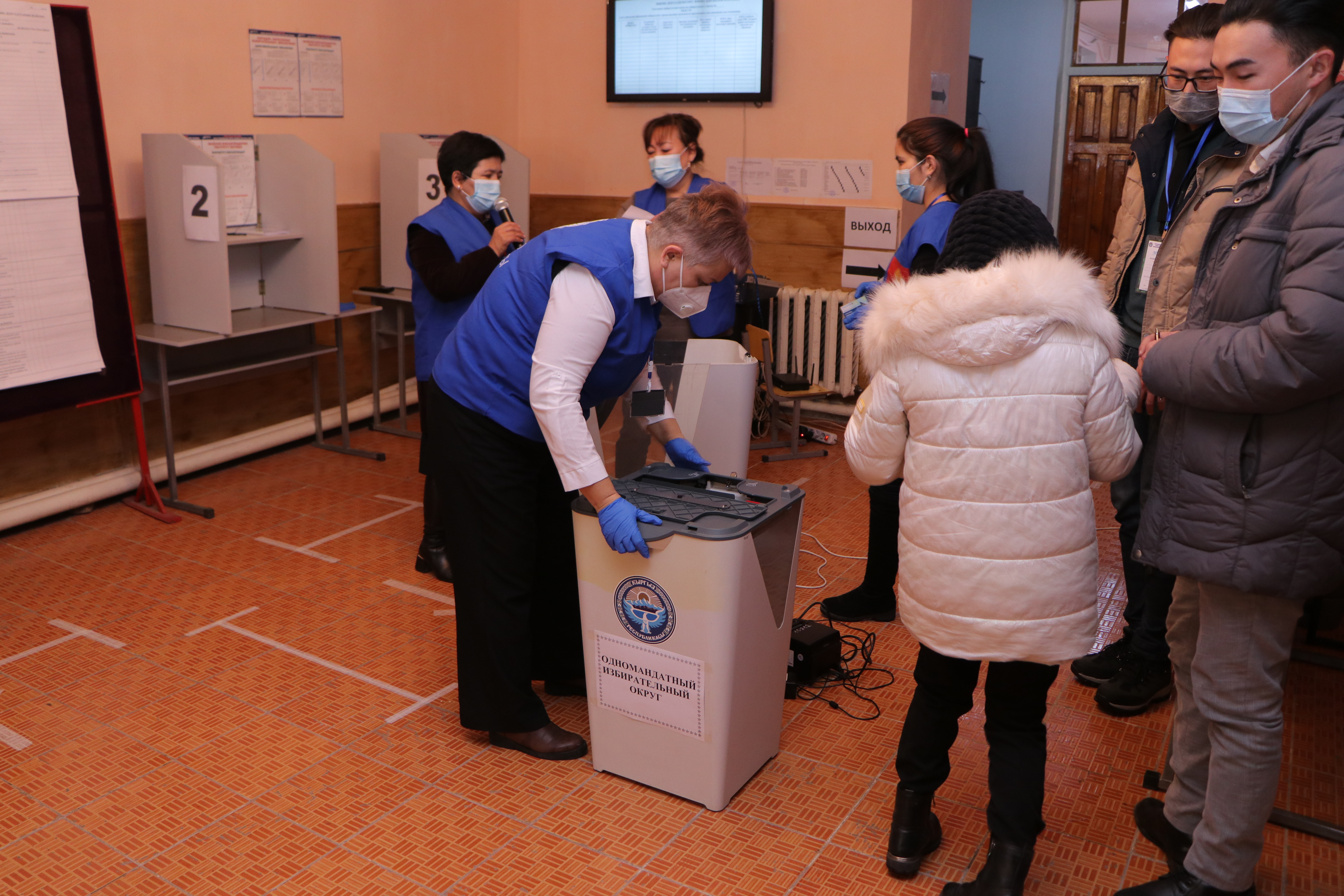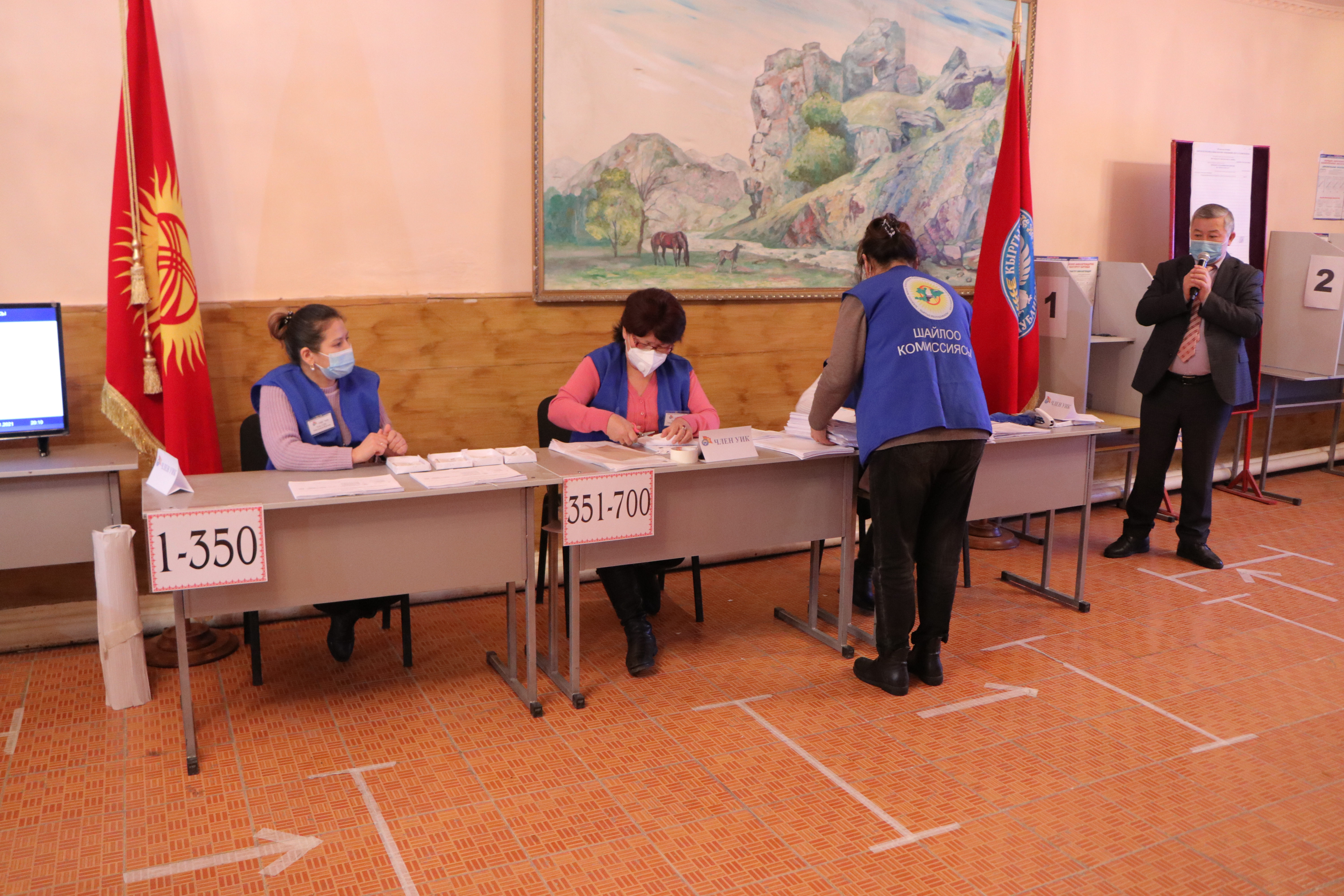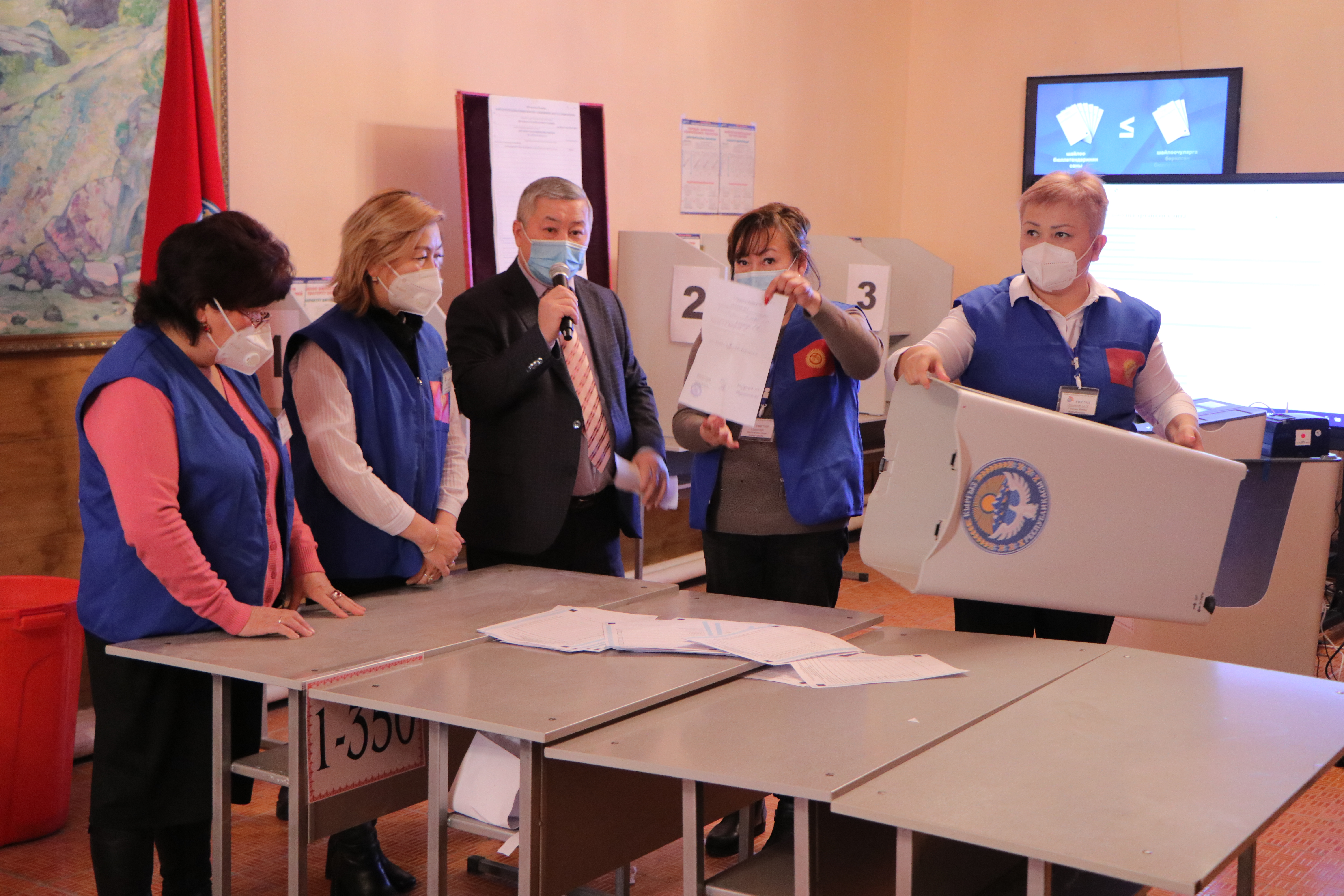 Мындан соӊ аталган участоктогу шайлоочулардын тизмеси, шайлоо бюллетендери, участкалык шайлоо комиссиясынын мөөрү, добуш берүүчү жайдан тышкары добуш берүүнүн жыйынтыгы боюнча документтер жана шайлоочулардын электрондук тизмеси түшүрүлгөн жабдуу салынган УШКнын мөөрү басылып чапталган сейфи ачылды. УШК төрагасы аталган участок боюнча шайлоочулардын тизмесине кирген шайлоочулардын санын жарыялады.