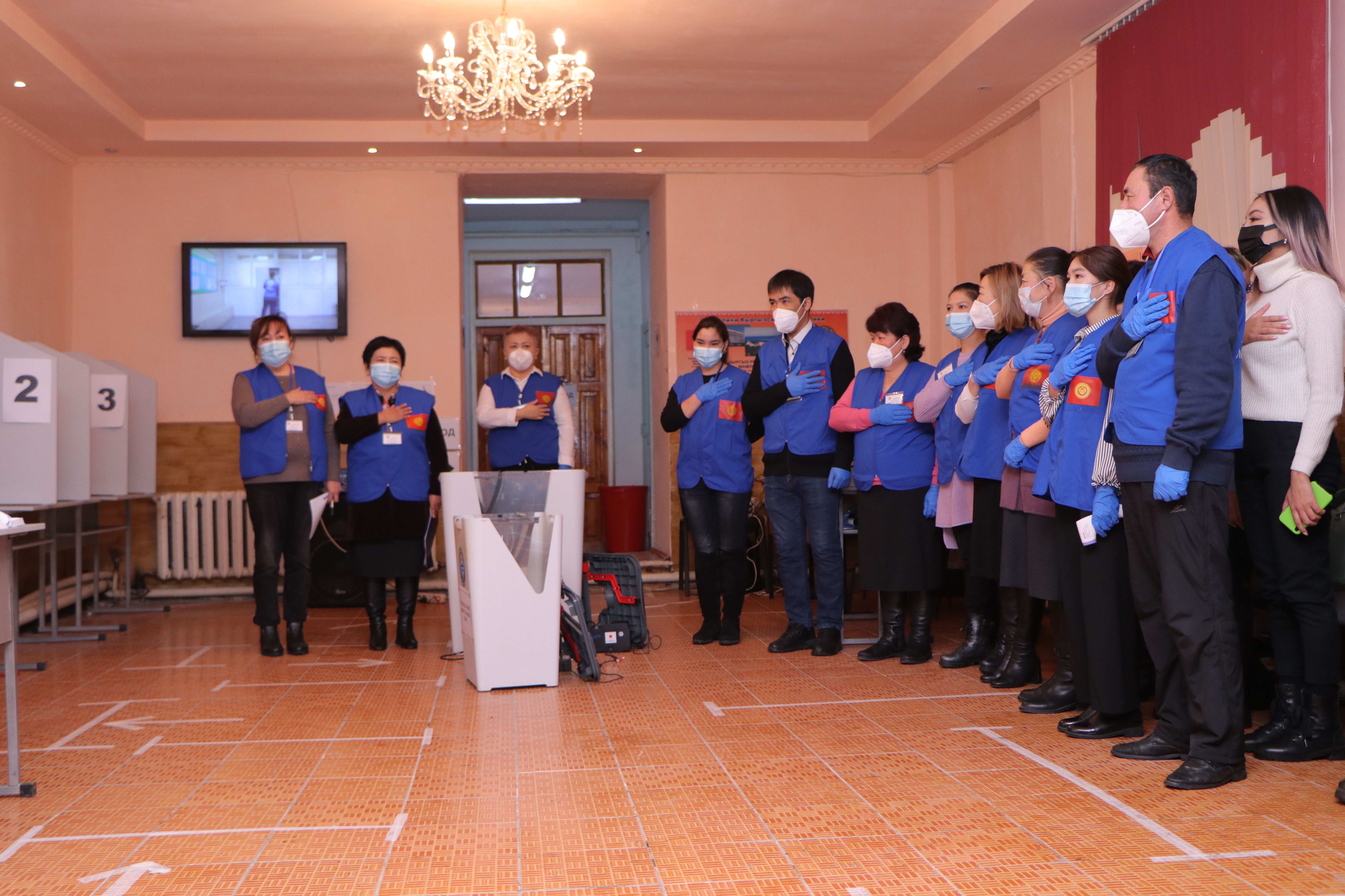 Бардык карап тургандарга добуш берүү үчүн бош үкөктөр (АЭУ) көрсөтүлдү, алар КР БШК мөөрү басылып пломбаланган. Ошондой эле текшерүүчү барактар да даярдалды, мында участоктун номери, бюллетень салган убактысы, УШК мүчөлөрүнүн аты-жөнү, катышкан талапкерлер, талапкерлердин жана партиялардын өкүлдөрү көрсөтүлгөн. Аталган адамдар текшерүүчү барактарга кол коюп, барактар УШК мөөрү менен тастыкталып, АЭУга салынат.