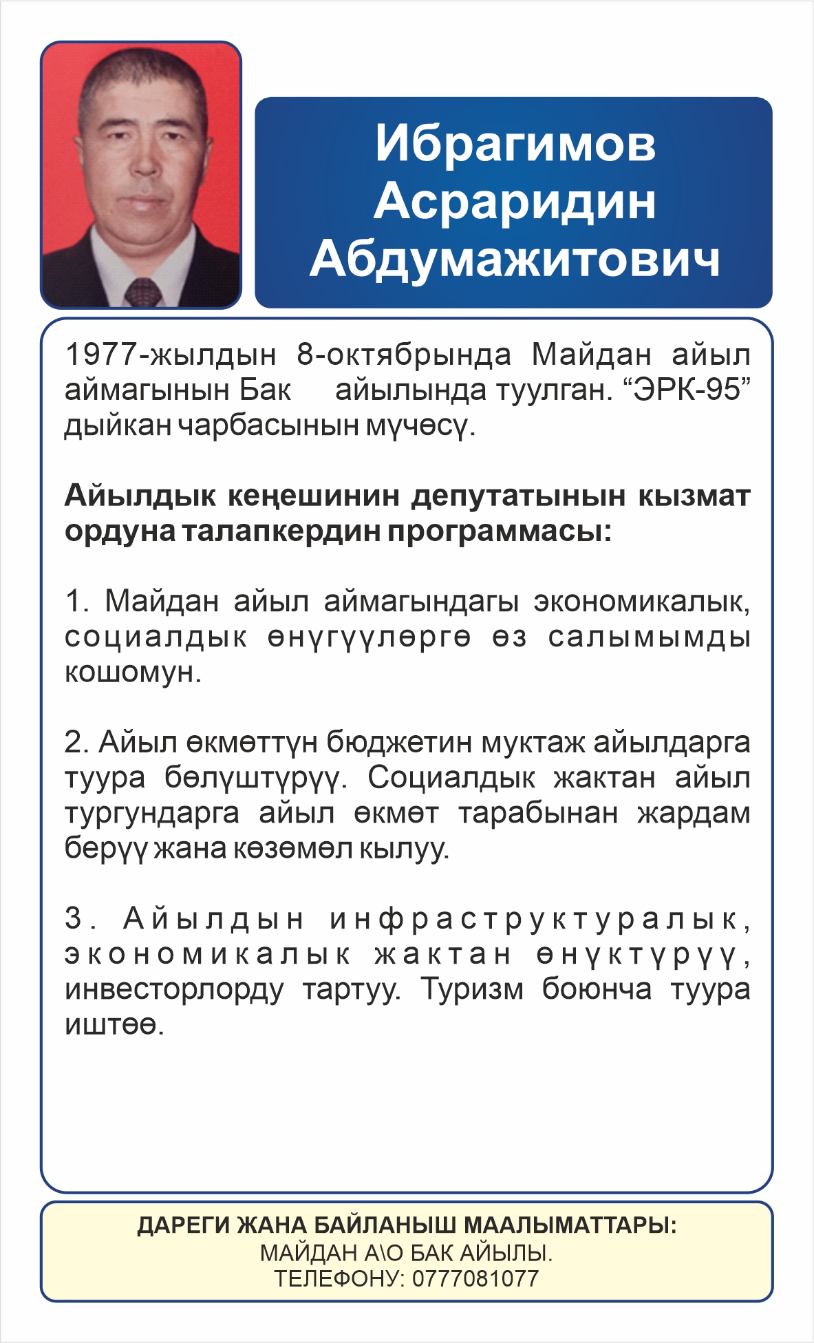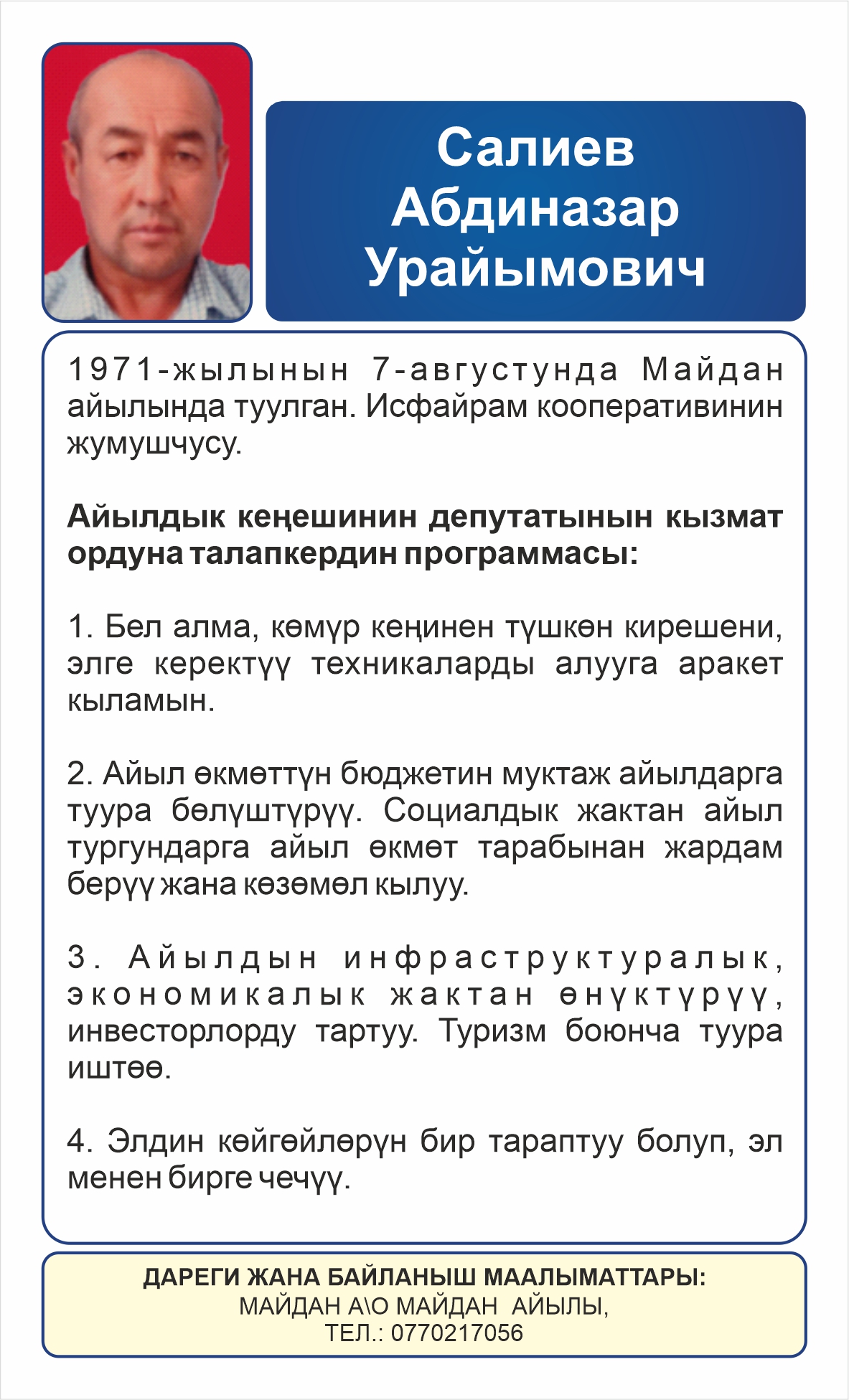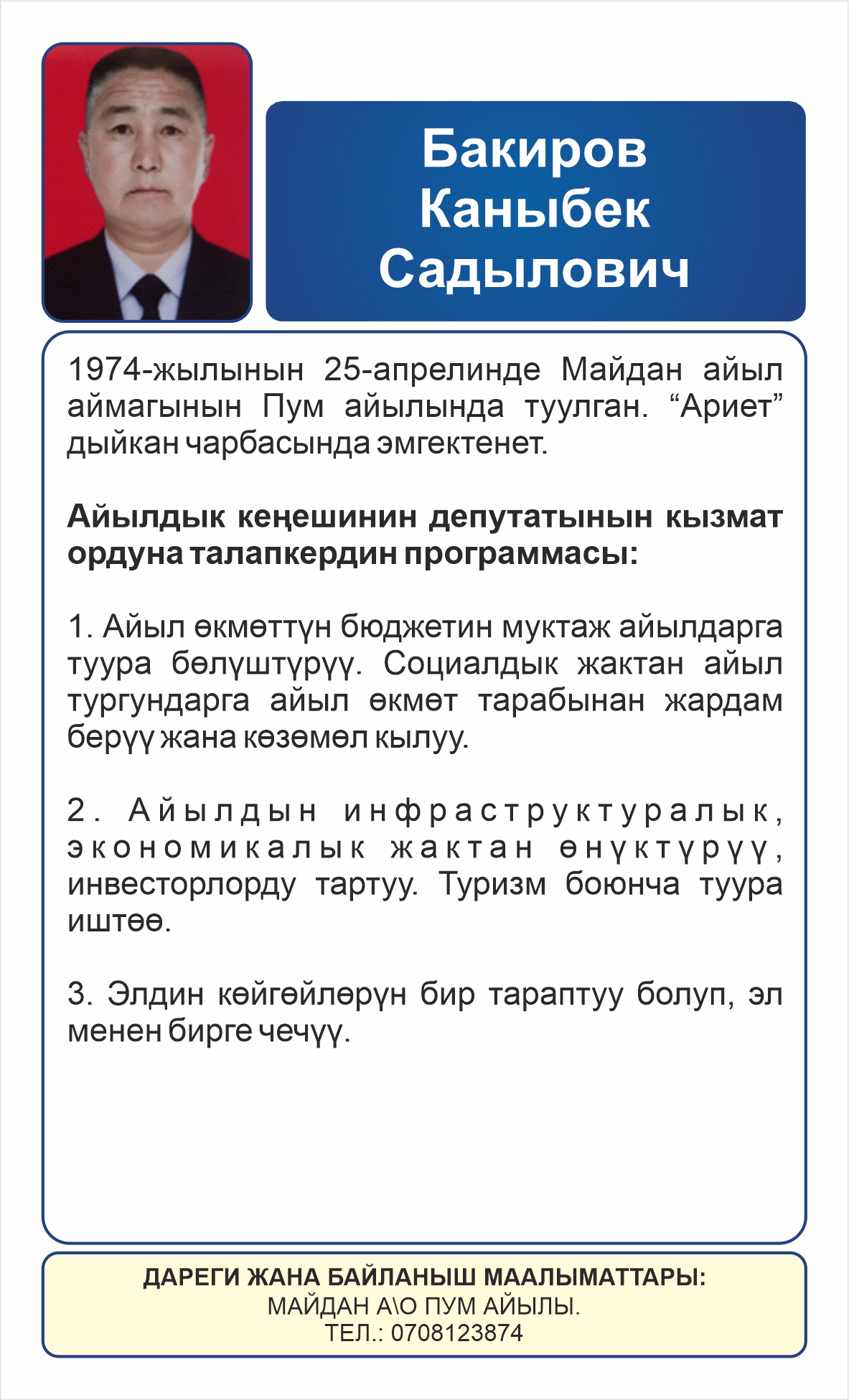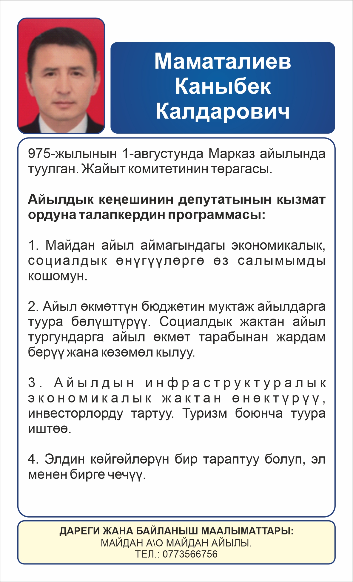 КР БШК: “Талапкер” маалыматтык ресурсунда Майдан айылдык кеңешинин депутаттыгына шайлоого ат салышып жаткан талапкерлер тууралуу маалымат жарыяланды