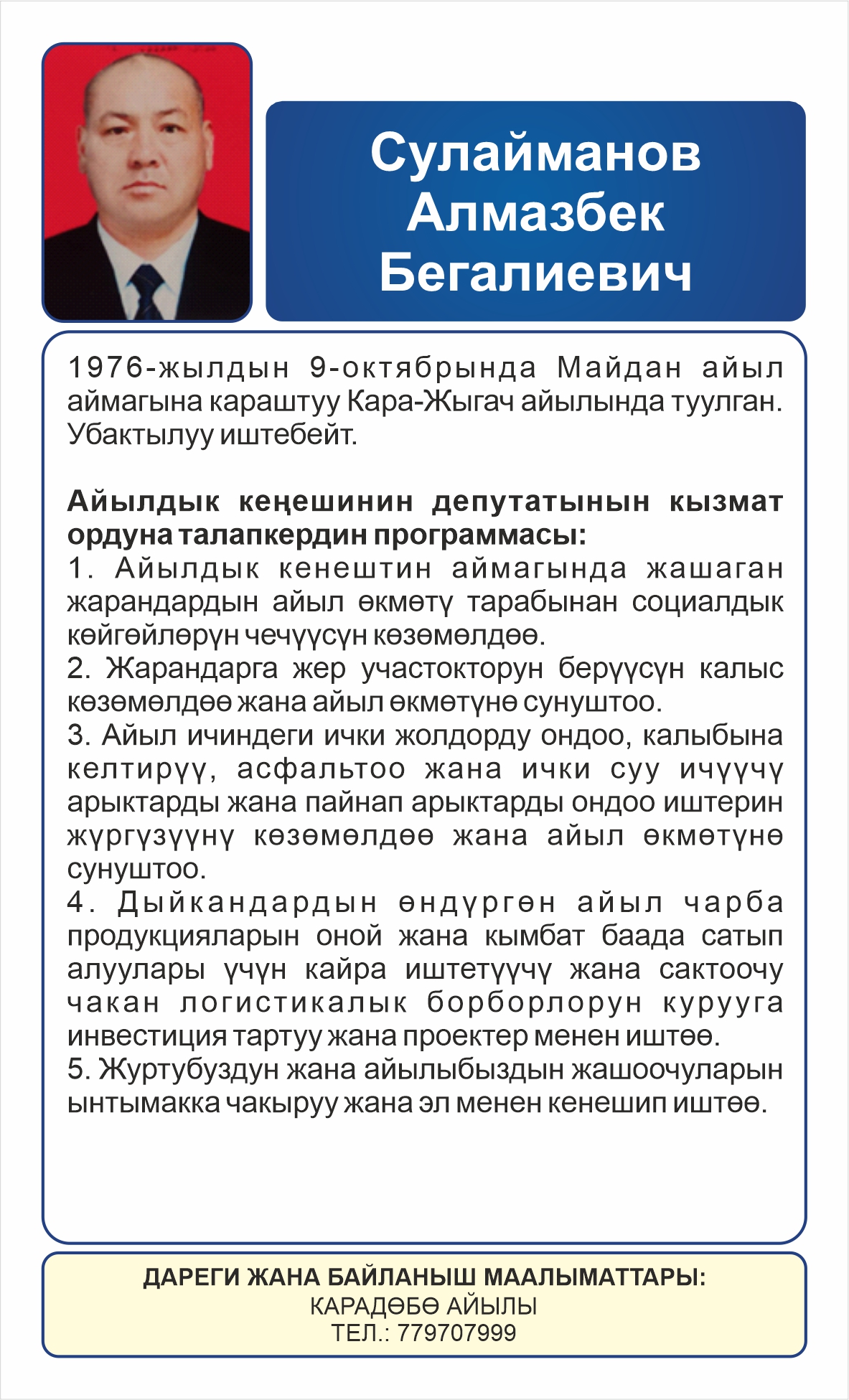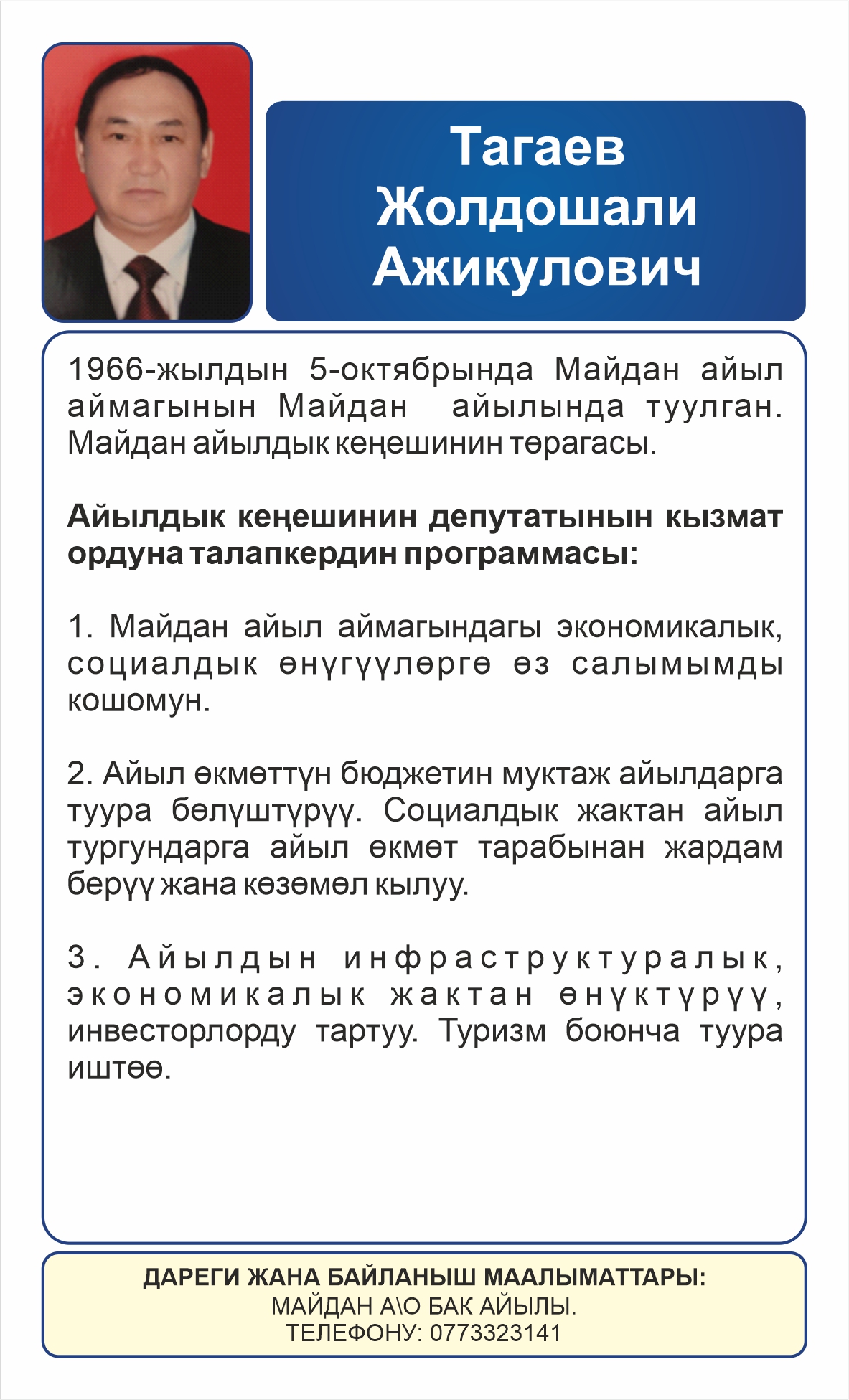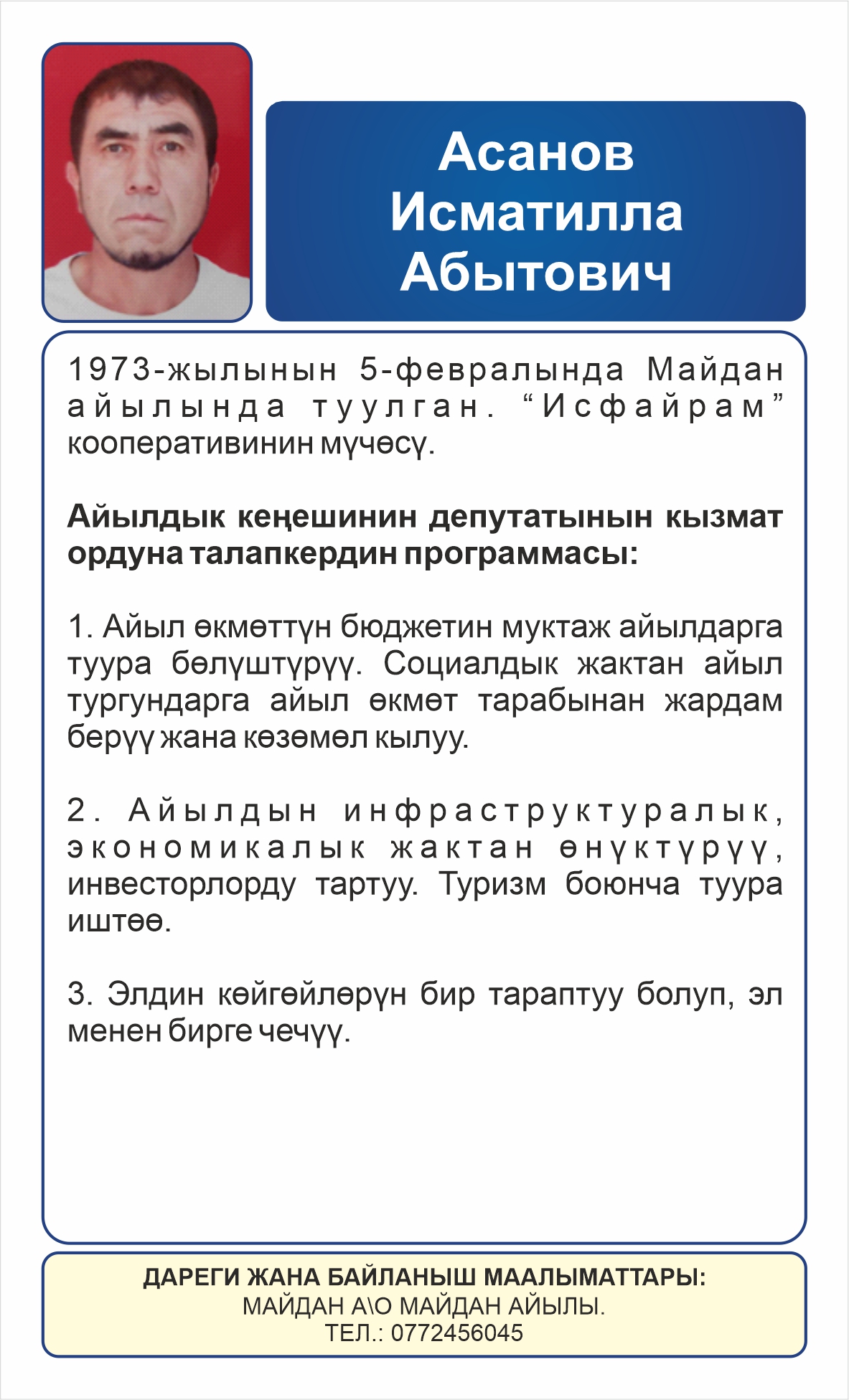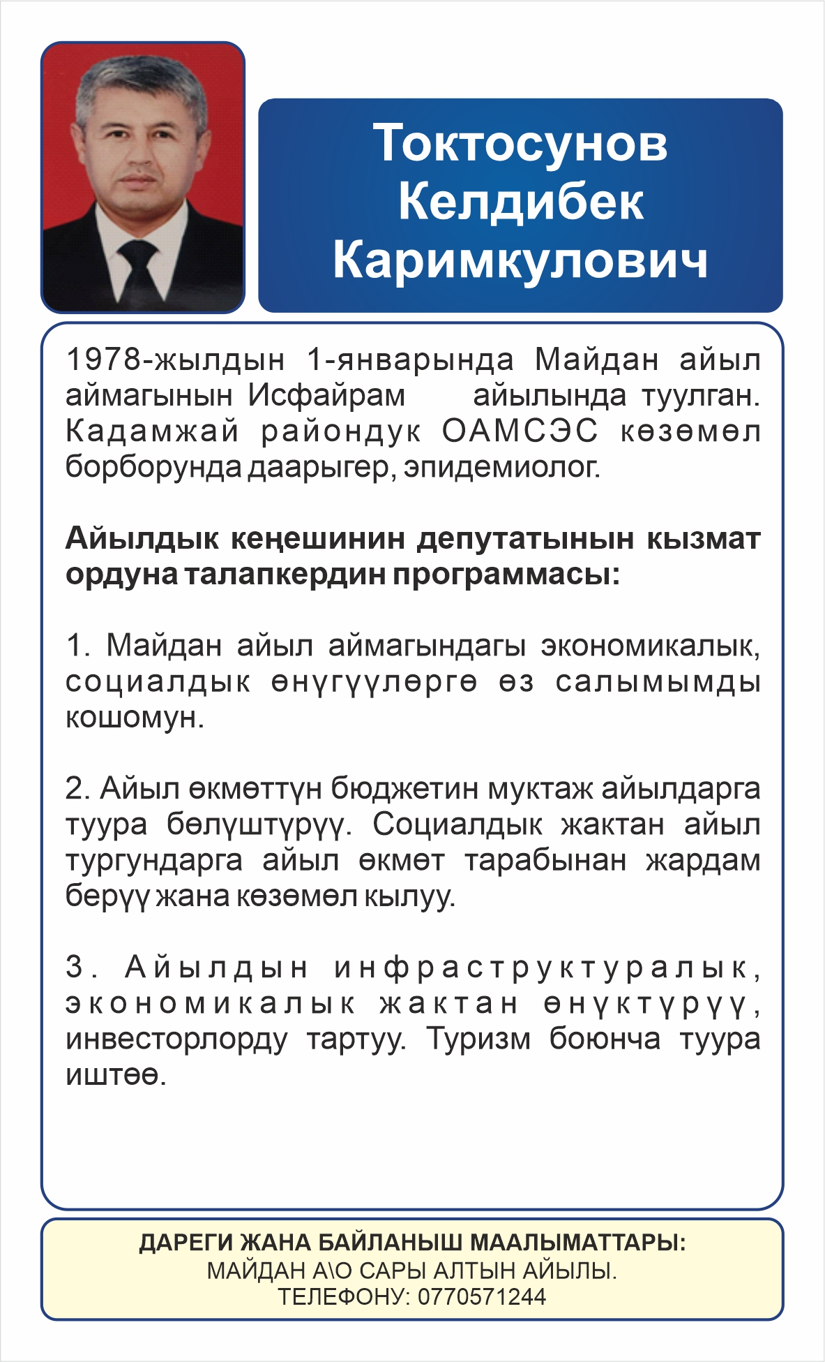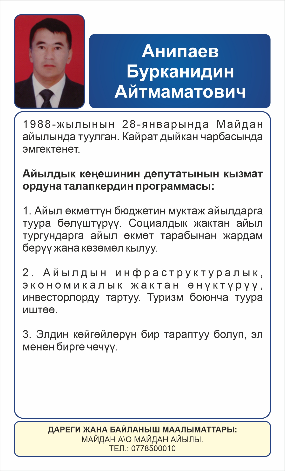 КР БШК: “Талапкер” маалыматтык ресурсунда Майдан айылдык кеңешинин депутаттыгына шайлоого ат салышып жаткан талапкерлер тууралуу маалымат жарыяланды