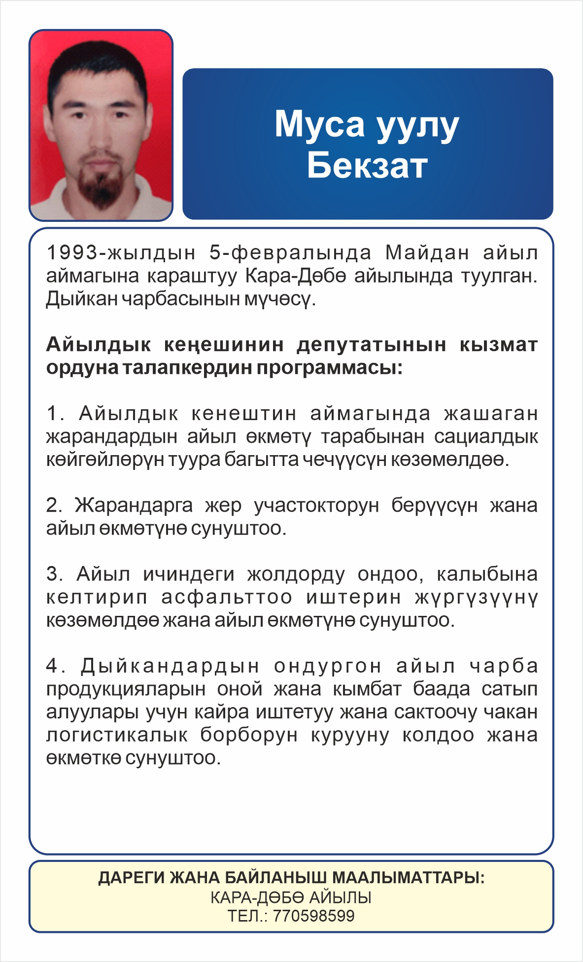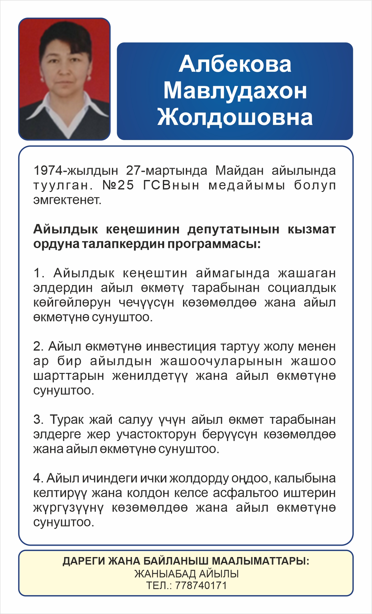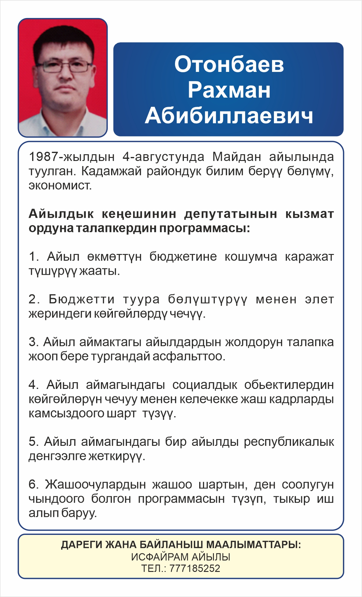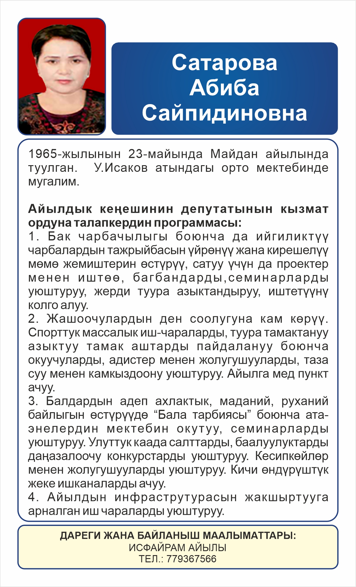 КР БШК: “Талапкер” маалыматтык ресурсунда Майдан айылдык кеңешинин депутаттыгына шайлоого ат салышып жаткан талапкерлер тууралуу маалымат жарыяланды