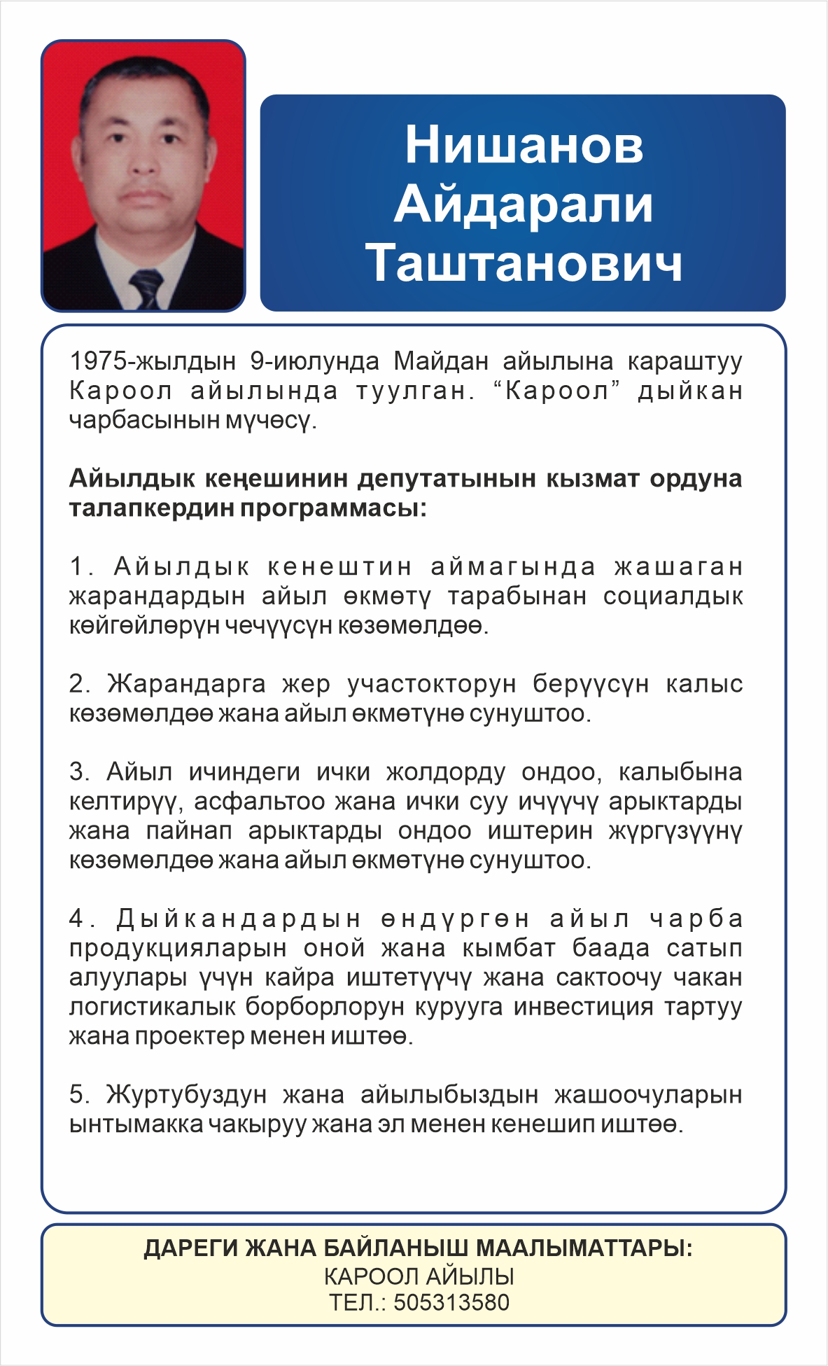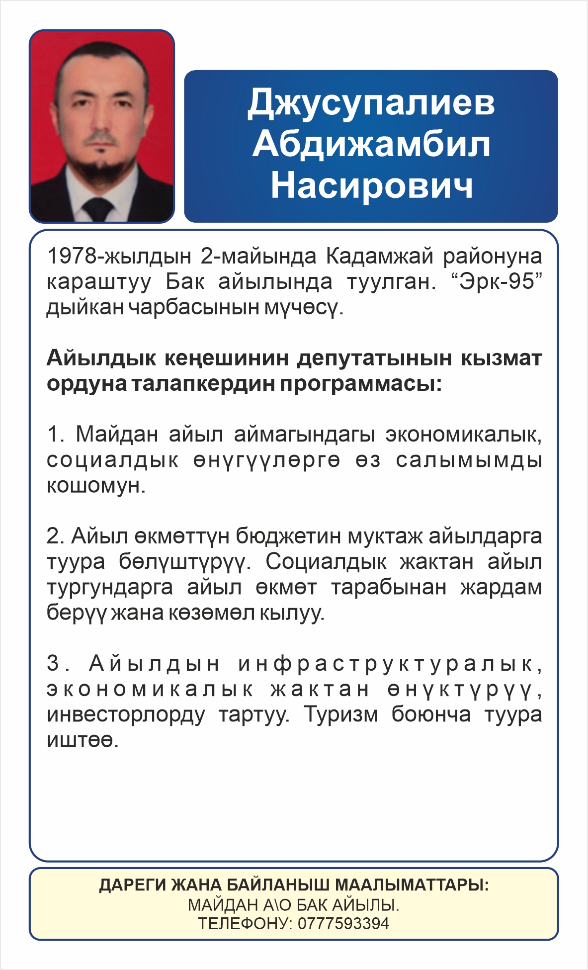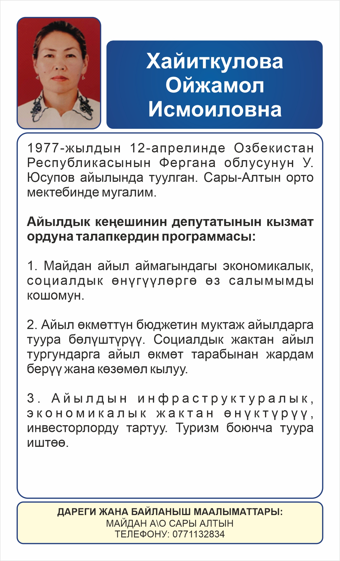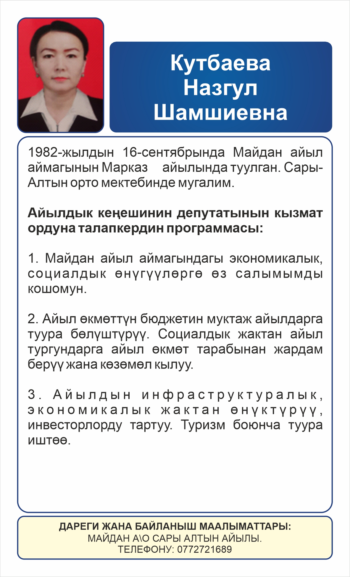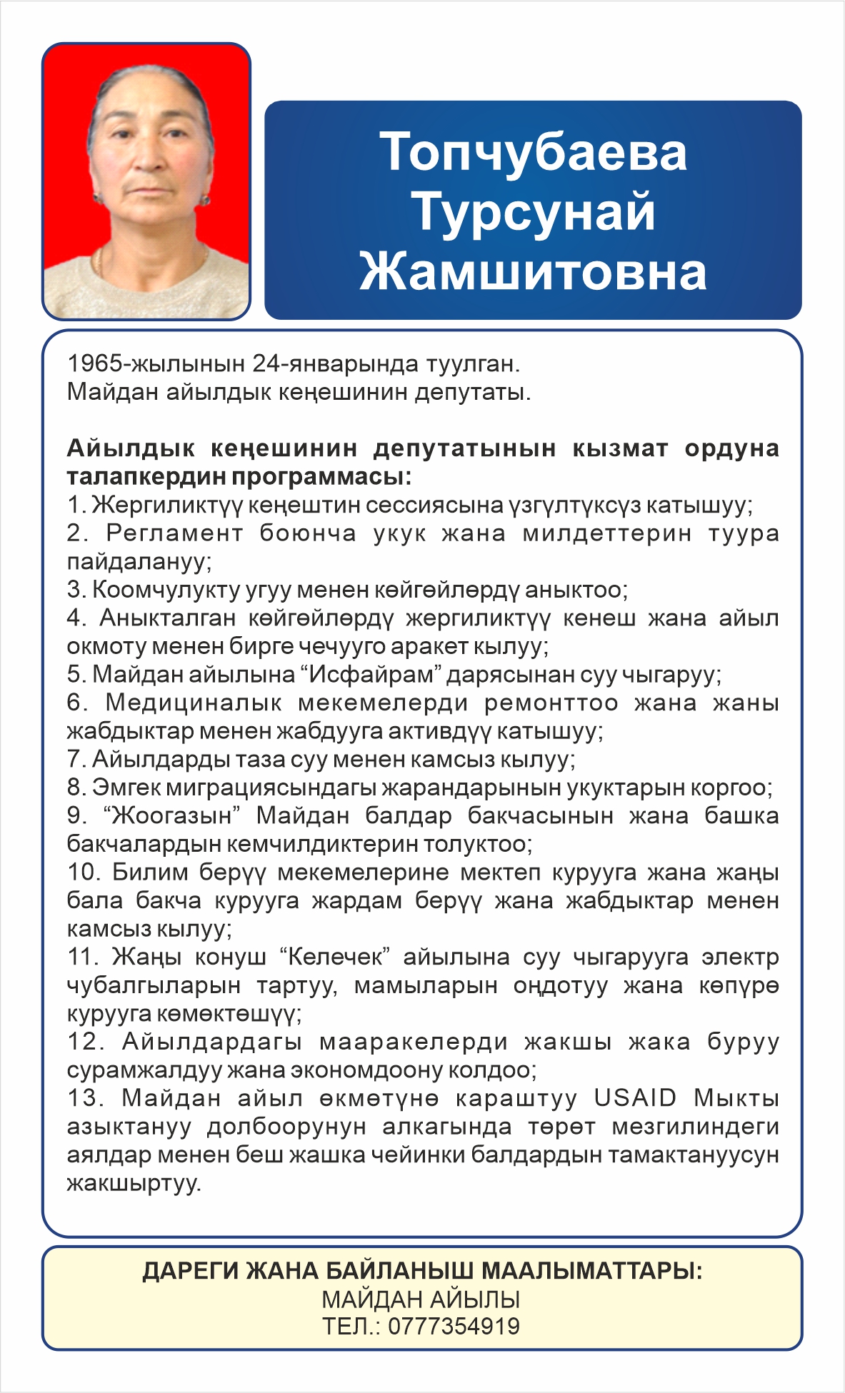 КР БШК: “Талапкер” маалыматтык ресурсунда Майдан айылдык кеңешинин депутаттыгына шайлоого ат салышып жаткан талапкерлер тууралуу маалымат жарыяланды